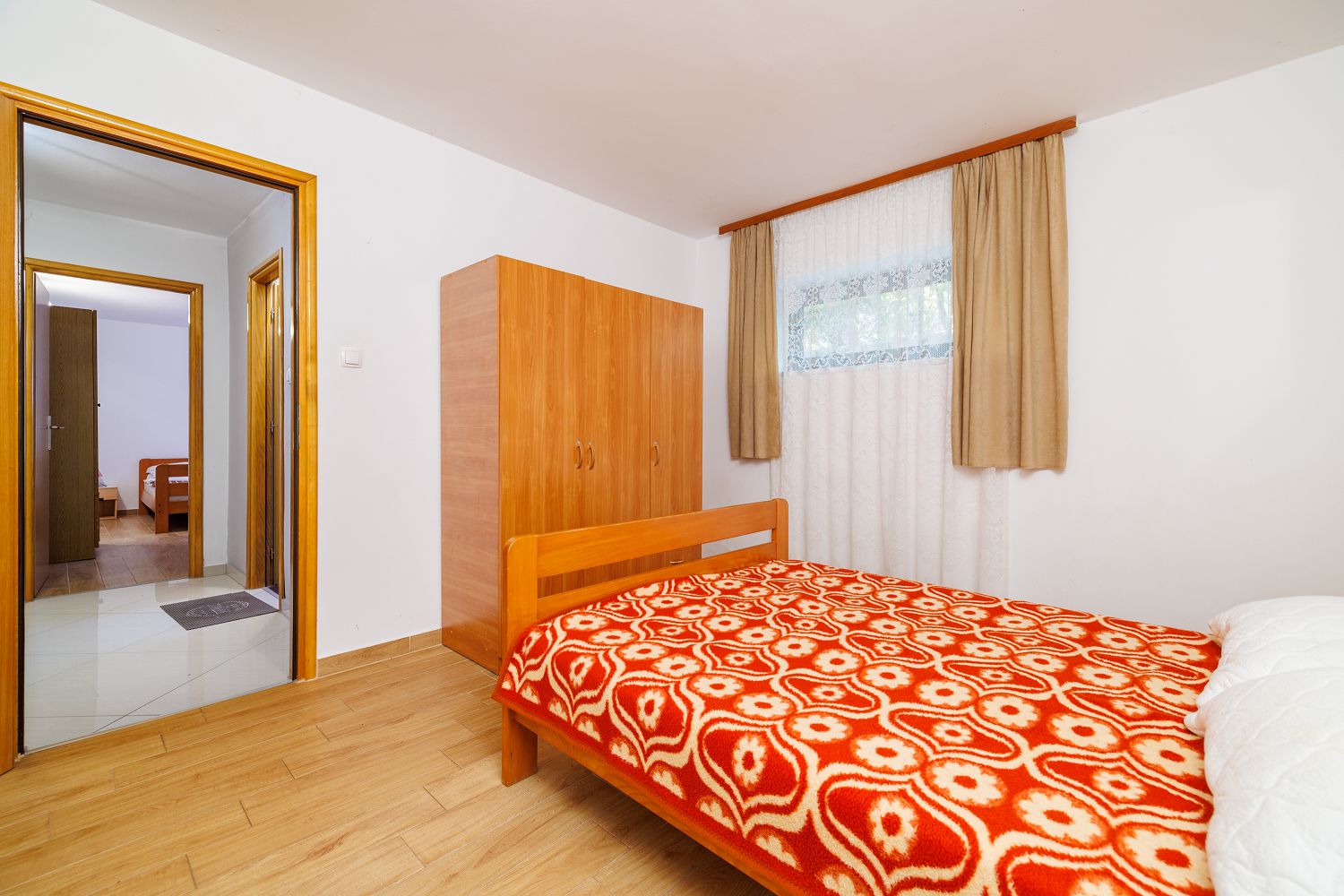 Dieses Apartment verfügt über drei Schlafzimmer und einem Badezimmer. Insgesamt können hier bis zu 6 Personen ihren Urlaub verbringen. Es hat eine voll ausgesttatete Küche und eine private Terrasse. Ein Parkplatz und Grill ist auch vorhanden!