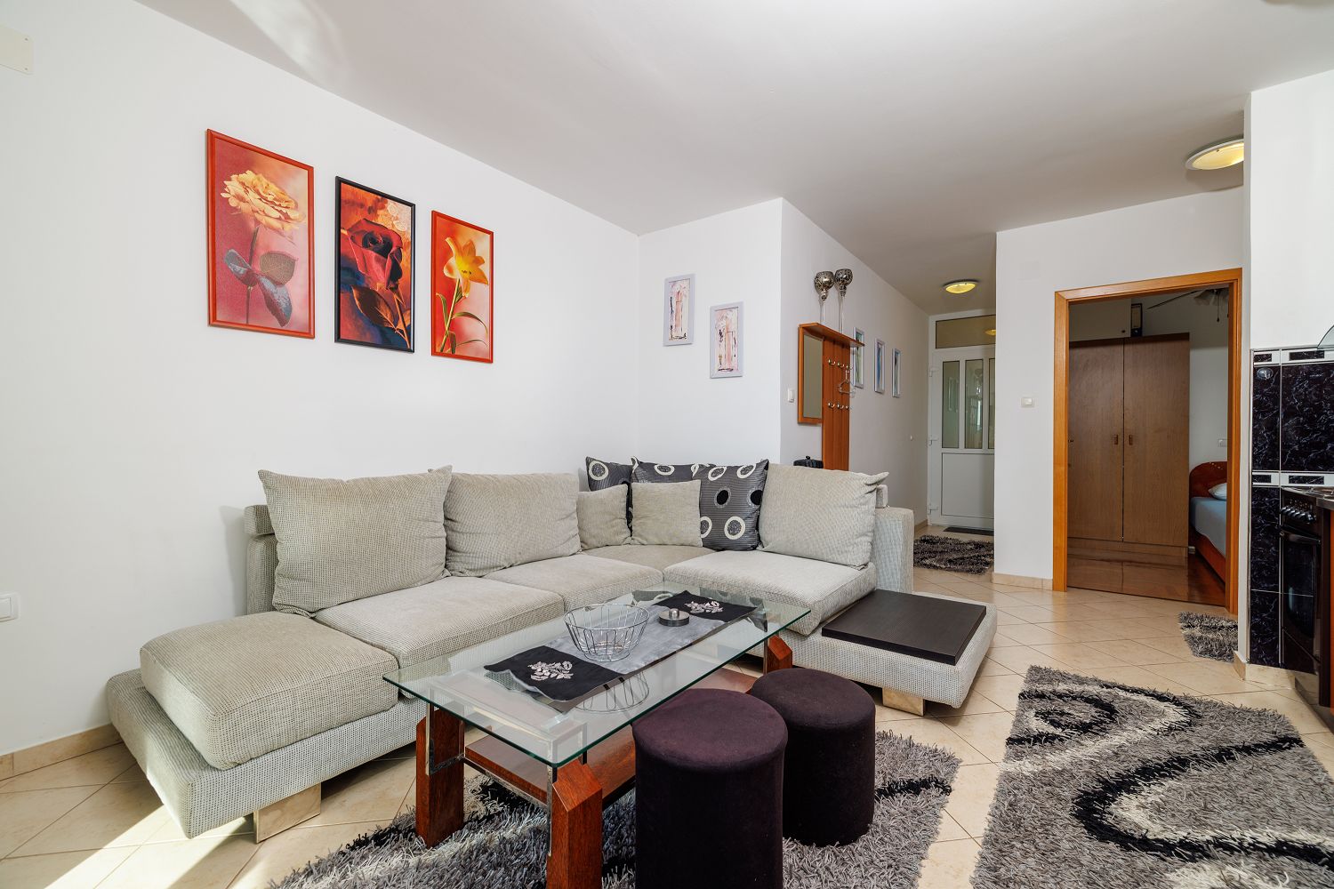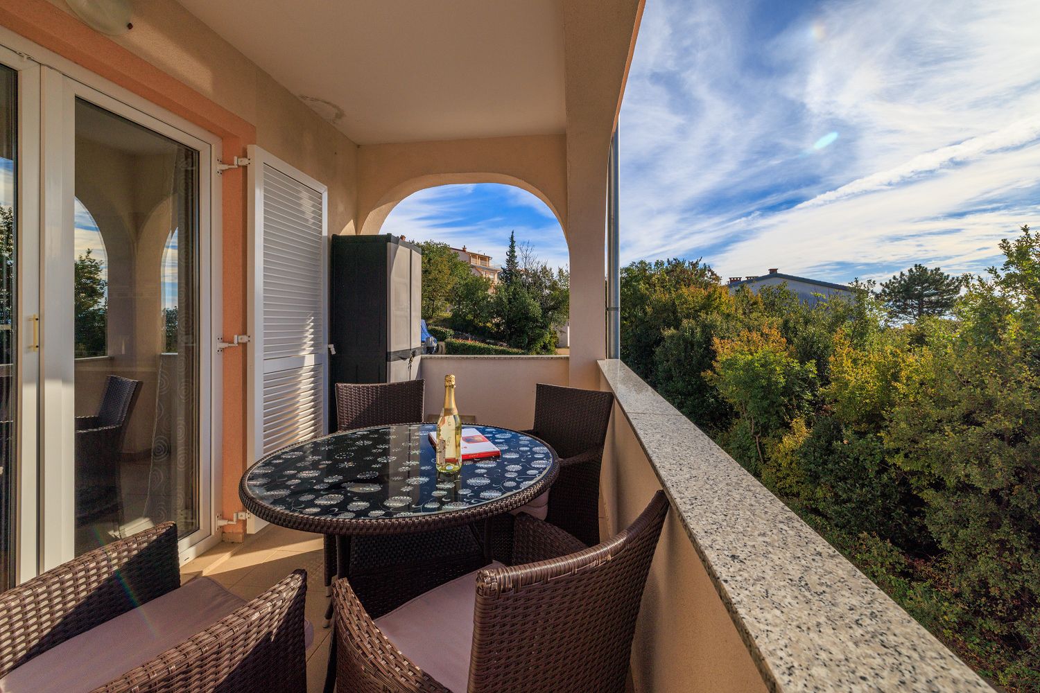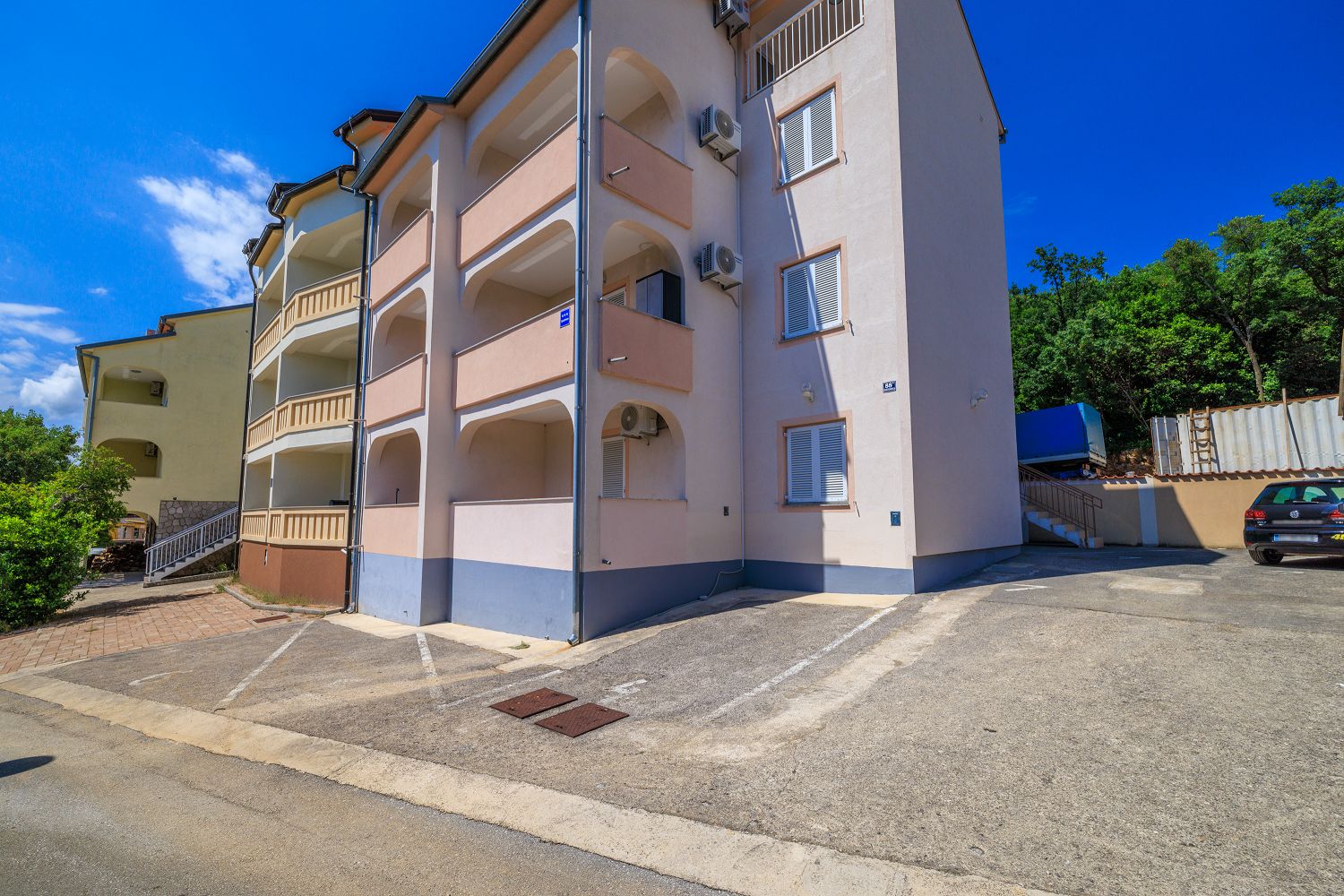 Diese wunderschöne, lichtdurchflutete Ferienwohnung besticht durch ihre zentrale Lage und ihren modernen Komfort. Beim Betreten erwartet Sie ein großzügiger Eingangsbereich, der nahtlos in den offenen Wohn- und Essbereich mit Küche übergeht. Die elegante Einbauküche ist mit allen nötigen Geräten ausgestattet und bietet genügend Platz für kulinarische Entfaltung. Ein besonderes Highlight ist der großzügige Balkon, der zum Entspannen einlädt und einen wunderbaren Blick auf die Adria bietet. Die Schlafzimmer sind ruhig gelegen und bieten ausreichend Stauraum. Das Badezimmer ist modern ausgestattet und verfügt über eine Dusche und eine Waschmaschine. Besonders hervorzuheben ist die perfekte Anbindung. Die Wohnung liegt nur wenige Gehminuten von Einkaufsmöglichkeiten und Restaurants entfernt. Auch Strände sind in unmittelbarer Nähe, sodass sich hier urbanes Leben und Entspannung ideal verbinden lassen.