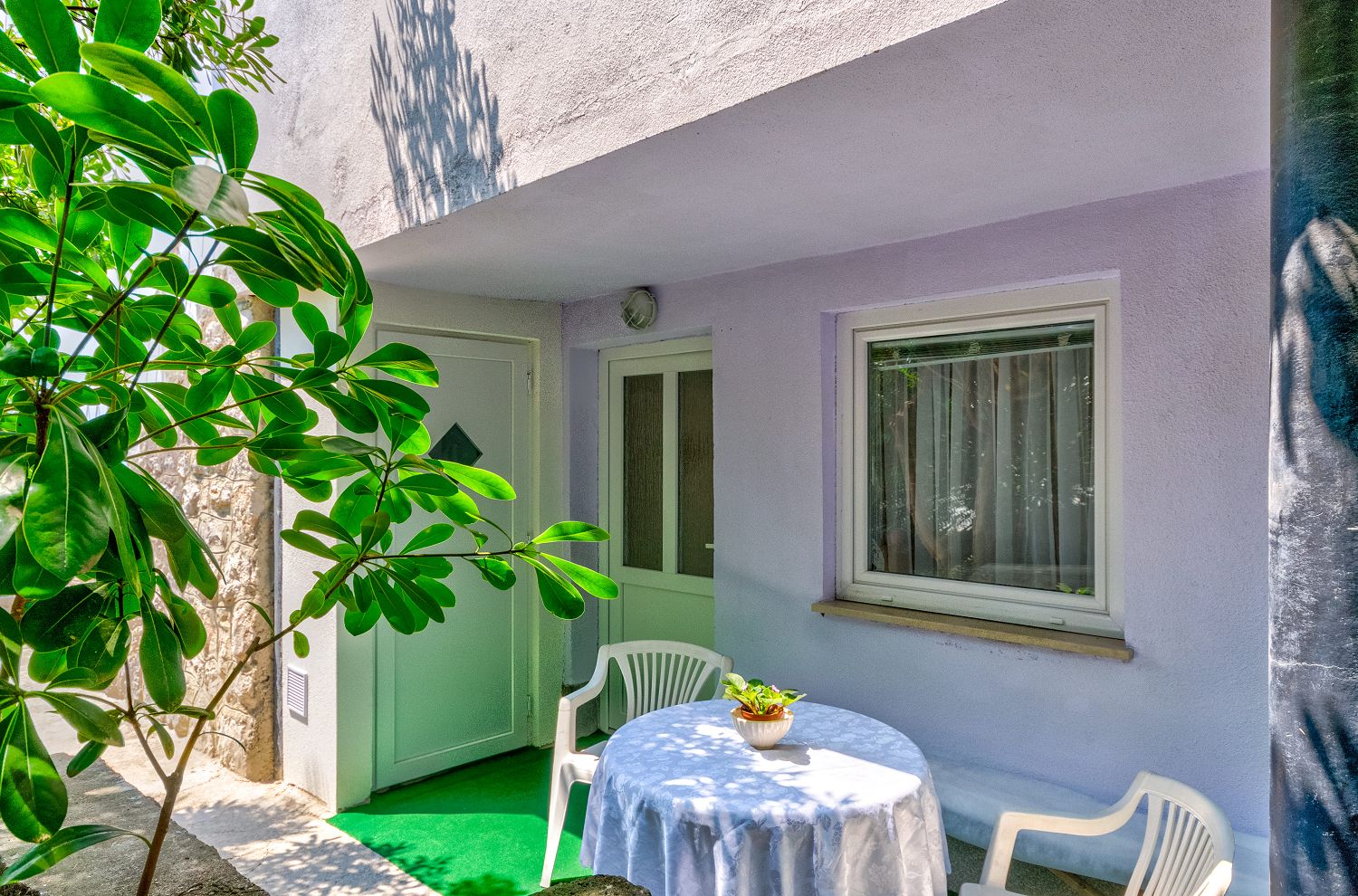 Diese Wohnung wurde 2019 renoviert und mit neuen Möbeln ausgestattet. Die 40 m² Wohnfläche verteilen sich auf ein Wohn-/Esszimmer mit Küche, ein Schlafzimmer und ein Badezimmer. Die Terrasse dieser Ferienwohnung befindet sich seitlich am Haus. Dort steht auch ein Grill bereit. Für die Ferienwohnung ist ein Parkplatz auf dem Grundstück in der Einfahrt vorgesehen. Eine Klimaanlage sorgt an warmen Tagen und eine Bodenheizung an kälteren Tagen für eine angenehme Raumtemperatur.