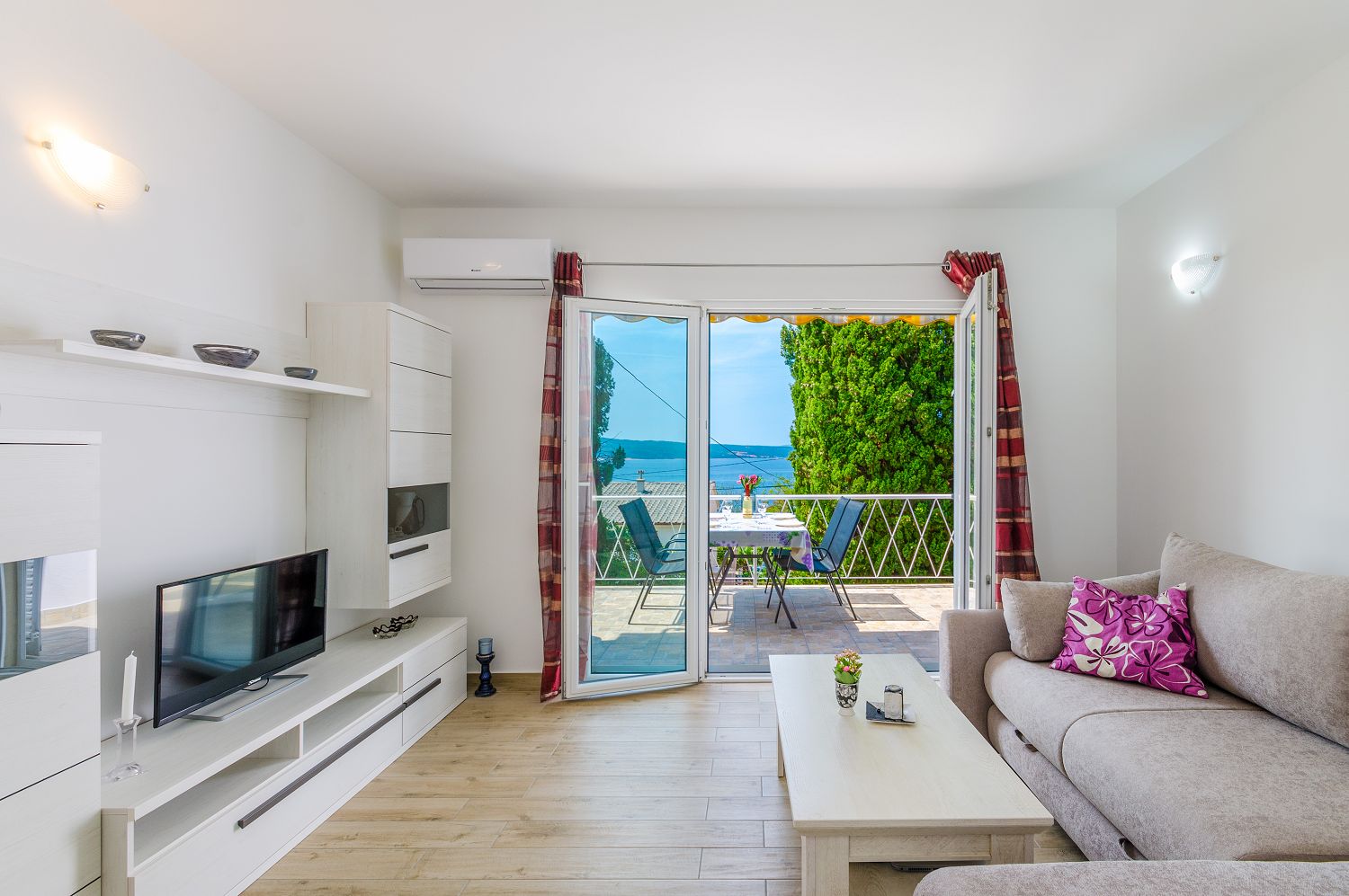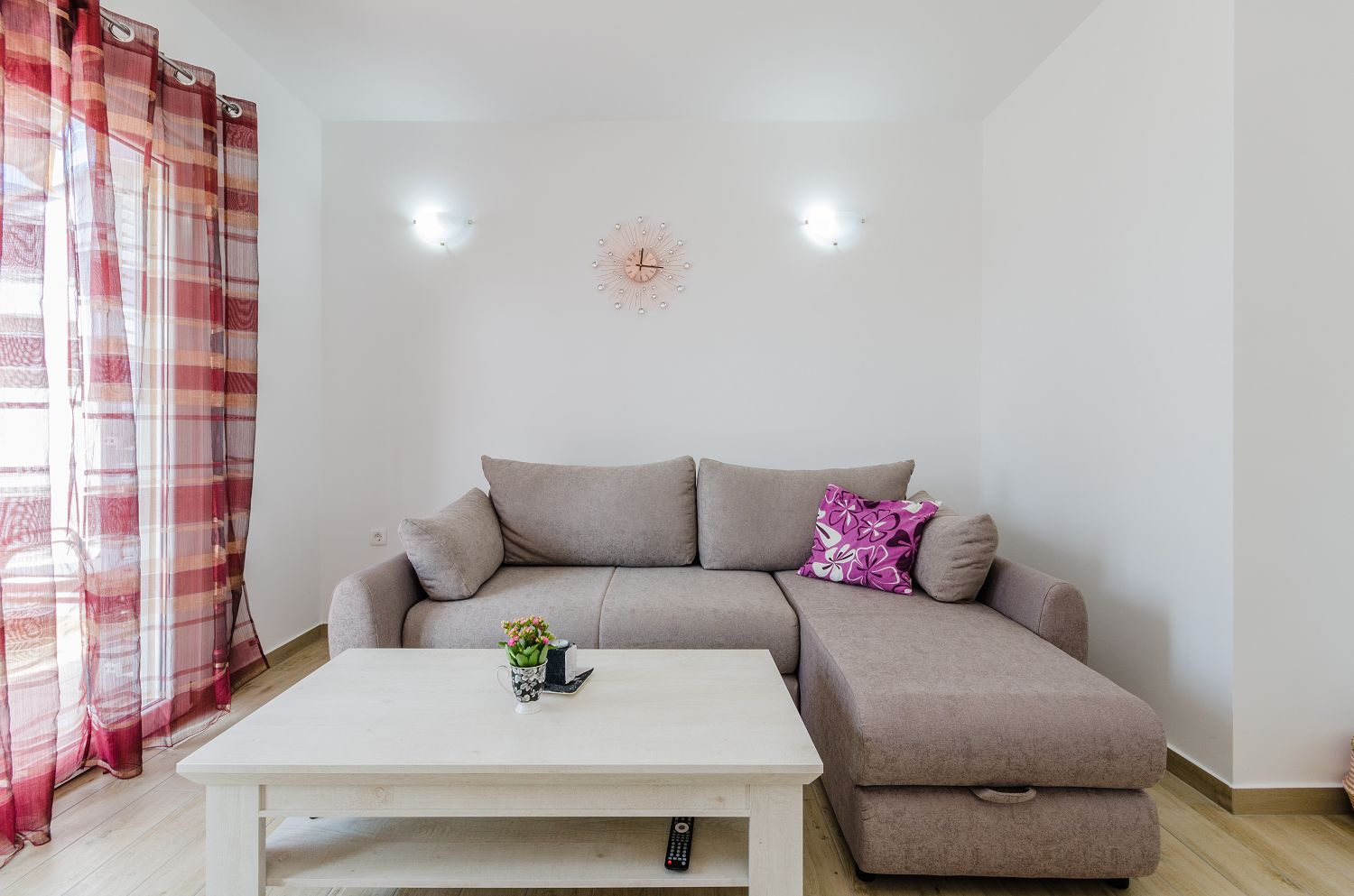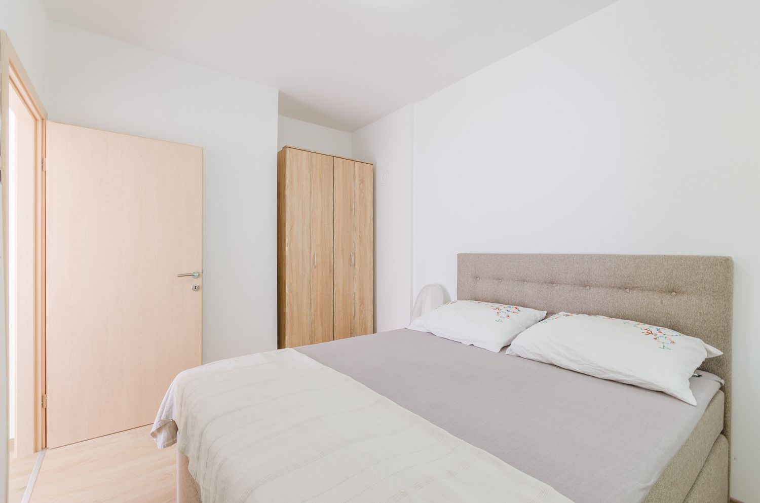 Diese Wohnung wurde 2019 renoviert und mit neuen Möbeln ausgestattet. Die 40 m² Wohnfläche verteilen sich auf ein Wohn-/Esszimmer, eine Küche, ein Schlafzimmer und ein Badezimmer. Der schöne Balkon dieser Ferienwohnung schaut zur Meerseite und ist sehr angenehm. Eine Klimaanlage sorgt an warmen Tagen und eine Bodenheizung an kälteren Tagen für eine angenehme Raumtemperatur. Vom Objekt bis zum Strand sind es 240 Meter und die Entfernung zum Zentrum beträgt 2,5 km. Das nächstgelegenste Lebensmittelgeschäft befindet sich 300 Meter von der Ferienimmobilie entfernt. In 300 Metern ist das umliegende Restaurant zu erreichen.