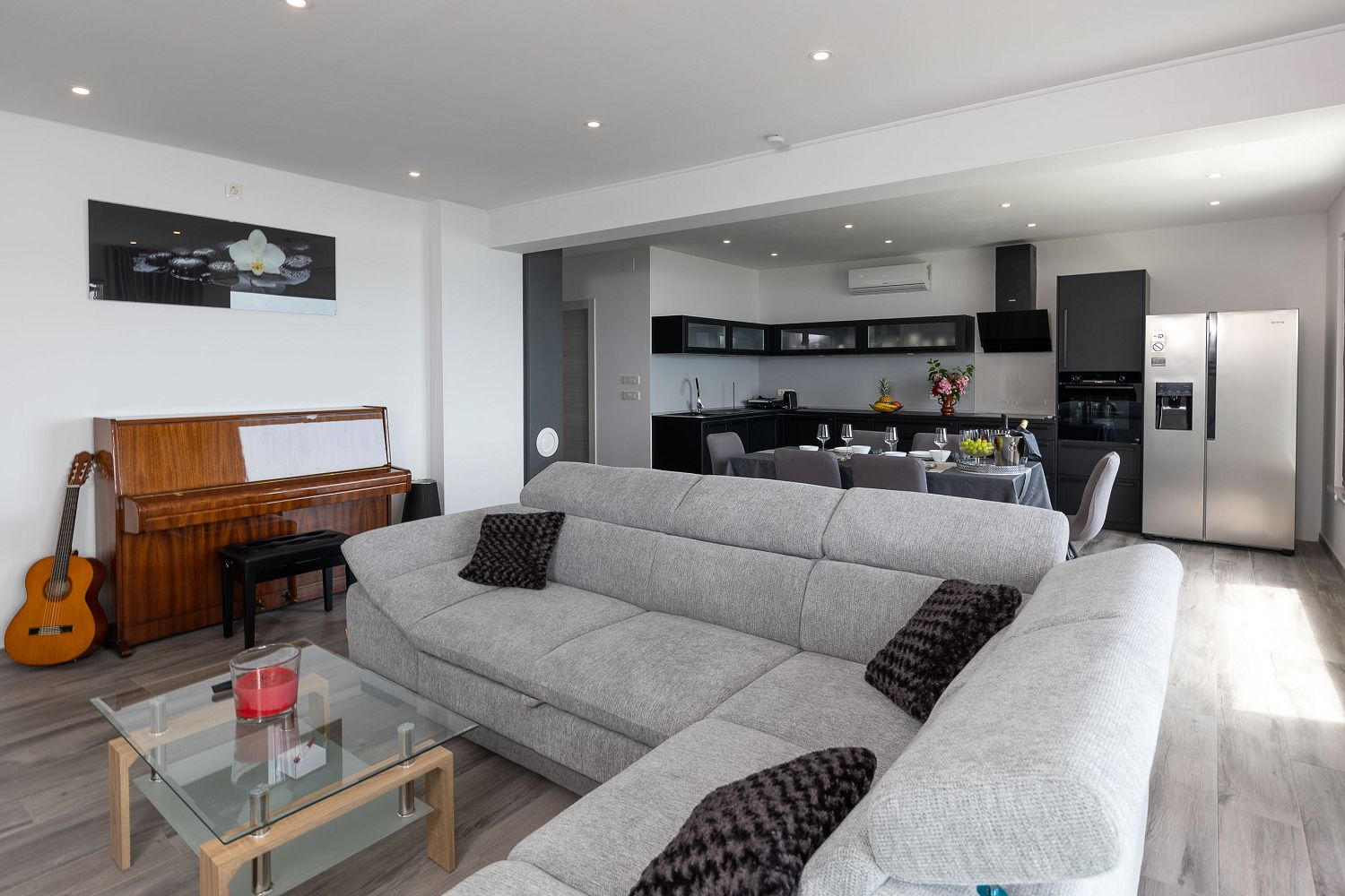 Willkommen in unserer modernen und komfortablen 4-Sterne-Ferienwohnung im malerischen Dramalj. Sie ist der ideale Rückzugsort für einen entspannten Urlaub am Meer. Die großzügige Unterkunft bietet alles, was Sie für eine unvergessliche Auszeit benötigen. Die beiden klimatisierten Schlafzimmer, jeweils mit eigenem TV ausgestattet, bieten Ihnen höchsten Komfort und Privatsphäre. Das moderne Wohnzimmer lädt zum Entspannen und Verweilen ein, während die voll ausgestattete Küche mit hochwertigen Geräten die Zubereitung köstlicher Mahlzeiten ermöglicht. Ein Badezimmer mit Dusche sowie ein zusätzliches separates WC bieten extra Komfort für alle Gäste. Dank der Klimaanlage in der gesamten Wohnung genießen Sie zu jeder Jahreszeit eine angenehme Atmosphäre. Kostenloses WLAN und SAT-TV sorgen dafür, dass Sie stets gut unterhalten und verbunden bleiben. Gegen eine kleine Tagesgebühr von 10,00 Euro sind auch Haustiere willkommen, sodass auch Ihre vierbeinigen Begleiter den Urlaub genießen können. Ein absolutes Highlight ist der atemberaubende Meerblick, den Sie direkt aus der Wohnung heraus genießen können. Dank der hervorragenden Lage ist diese Ferienwohnung die perfekte Wahl für alle, die die Schönheit der Adria erleben und die Umgebung erkunden möchten. Zusätzlich steht Ihnen ein Grill zur Verfügung und der Weinkeller (Konoba) lädt dazu ein, lokale Spezialitäten zu probieren. Ein privater Parkplatz sorgt für zusätzlichen Komfort, sodass Sie sich ganz auf die Entspannung konzentrieren können. Diese Ferienwohnung ist der ideale Ort, um unvergessliche Momente in ruhiger und angenehmer Atmosphäre zu verbringen.