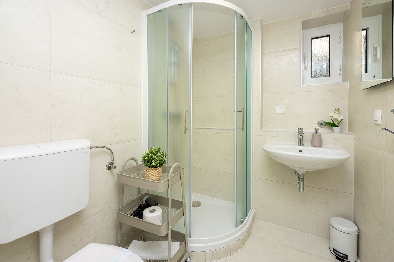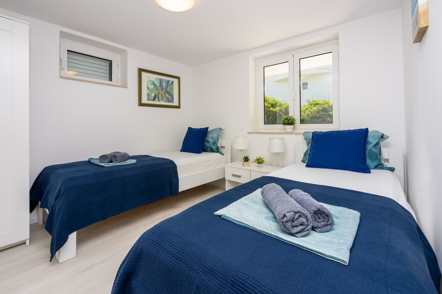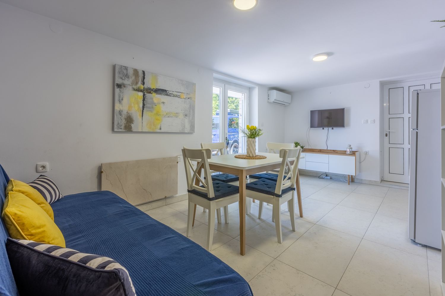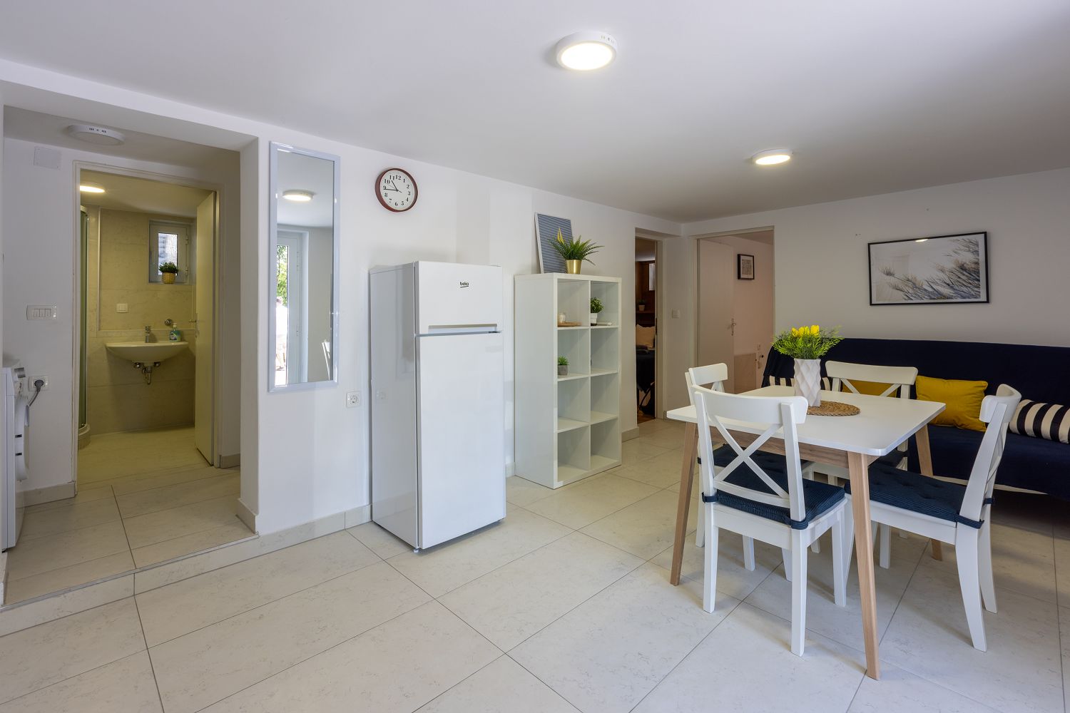 Diese strandnahe Ferienwohnung befindet sich in einem ruhigen Ortsteil von Crikvenica-Dramalj und ist aufgrund der Lage im Erdgeschoss auch an den wärmsten Sommertagen angenehm kühl. Sie besteht aus einem Wohn-/Esszimmer mit seitlich stehender Küche, zwei Schlafzimmern mit je zwei Einzelbetten und einem Badezimmer. Hinter dem Haus steht ein gemeinsamer Grill zur Verfügung. Ein Parkplatz befindet sich auf dem Grundstück.