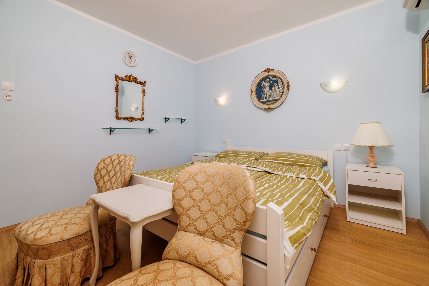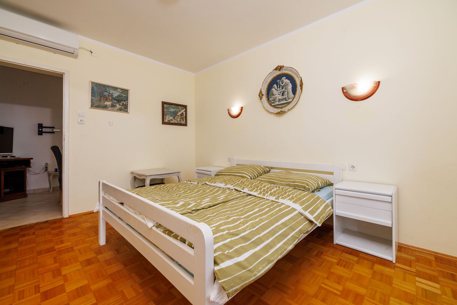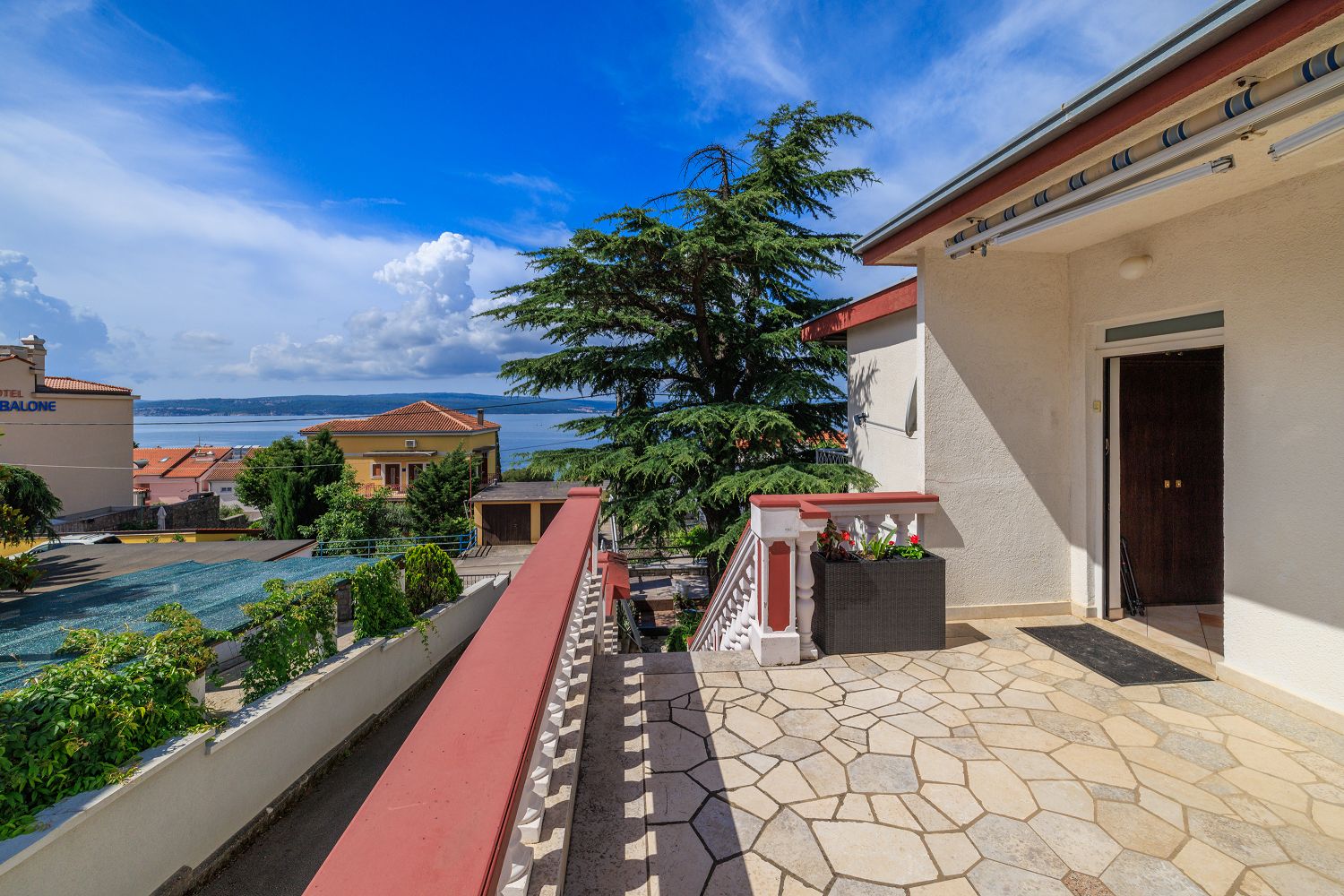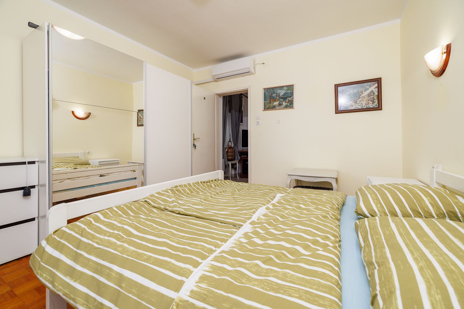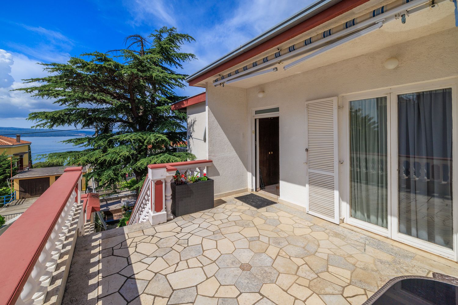 Diese komfortable Ferienwohnung für bis zu acht Personen befindet sich im kleinen Fischerort Dramalj, der ein Vorort von Crikvenica ist. Sie liegt im ersten Obergeschoss und verfügt über einen Wohn- und Essbereich, eine separate Küche, vier klimatisierte Schlafzimmer und drei Badezimmer. Alle Schlafzimmer haben Zugang zum Balkon, drei davon zum Balkon mit Meerblick. Von der Küche aus gelangt man zur möblierten Terrasse, die ebenfalls einen Meerblick bietet. Auf dem Grundstück sind drei Parkplätze reserviert. In der Wohnung stehen zwei Fernsehgeräte mit Satellitenempfang bereit, eines im Wohnbereich und eines in einem der Schlafzimmer. Die Wohnung bietet auch Internet.