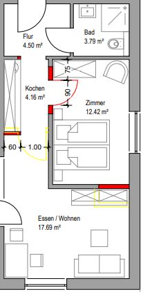 Das Apartment "Brunsholm 08" ist 42.8 Quadratmeter groß.