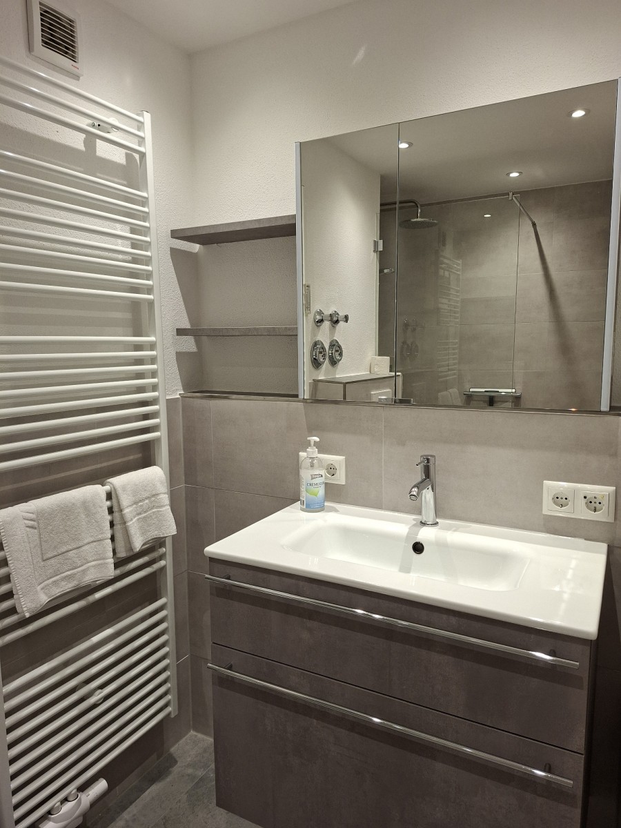 Die sehr geschmackvoll eingerichtete Wohnung besteht aus einem Wohnzimmer mit Ausgang zum Ostbalkon, einem Essplatz und einer kleinen integrierten Küche, einem Schlafzimmer mit Doppelbett und einem neu renoviertem Duschbad mit WC.