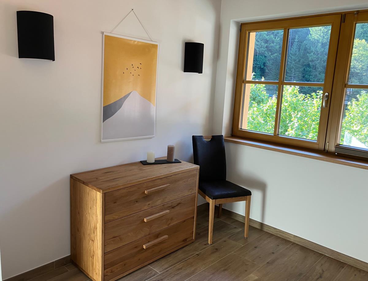 Im großzügigen Wohnraum befindet sich ein gemütliches Sofa und einen Essplatz für 4 Personen zum gemeinsamen Zusammensitzen. Die modern ausgestattete Küche ist im Wohnraum integriert. Das Elternschlafzimmer hat ein Doppelbett, im zweiten Schlafzimmer befinden sich zwei Einzelbetten. Das schöne Badezimmer hat eine ebenerdige Dusche, WC sowie die Waschmaschine. Eine Gästetoilette ist ebenfalls vorhanden. Für Ihre Skier gibt es einen Platz im Keller unter der Treppe. Diese sehr hübsche Wohnung ist perfekt geeignet für einen schönen, ereignisreichen und donnoch erholsamen Urlaub.