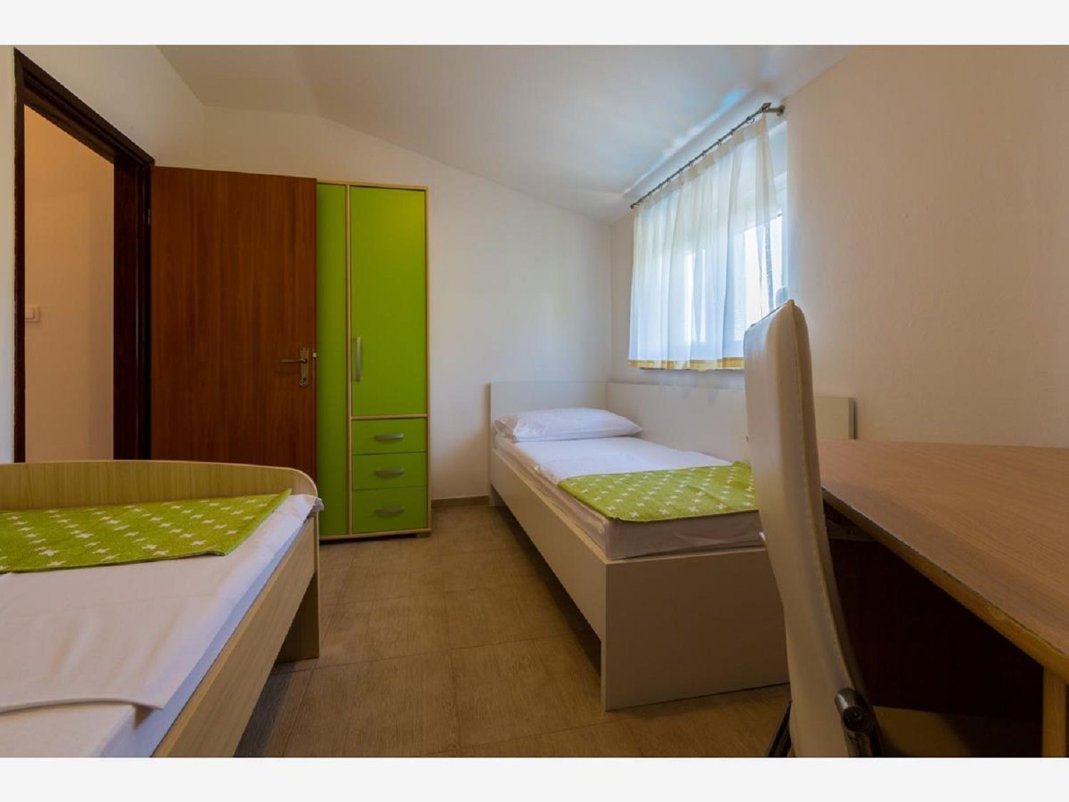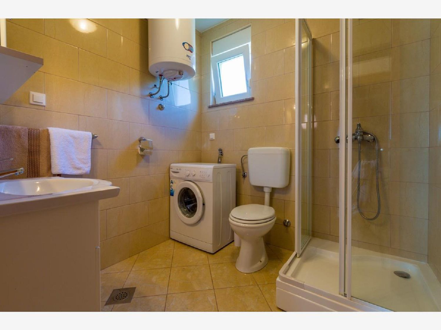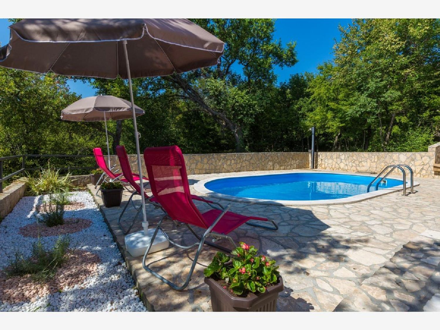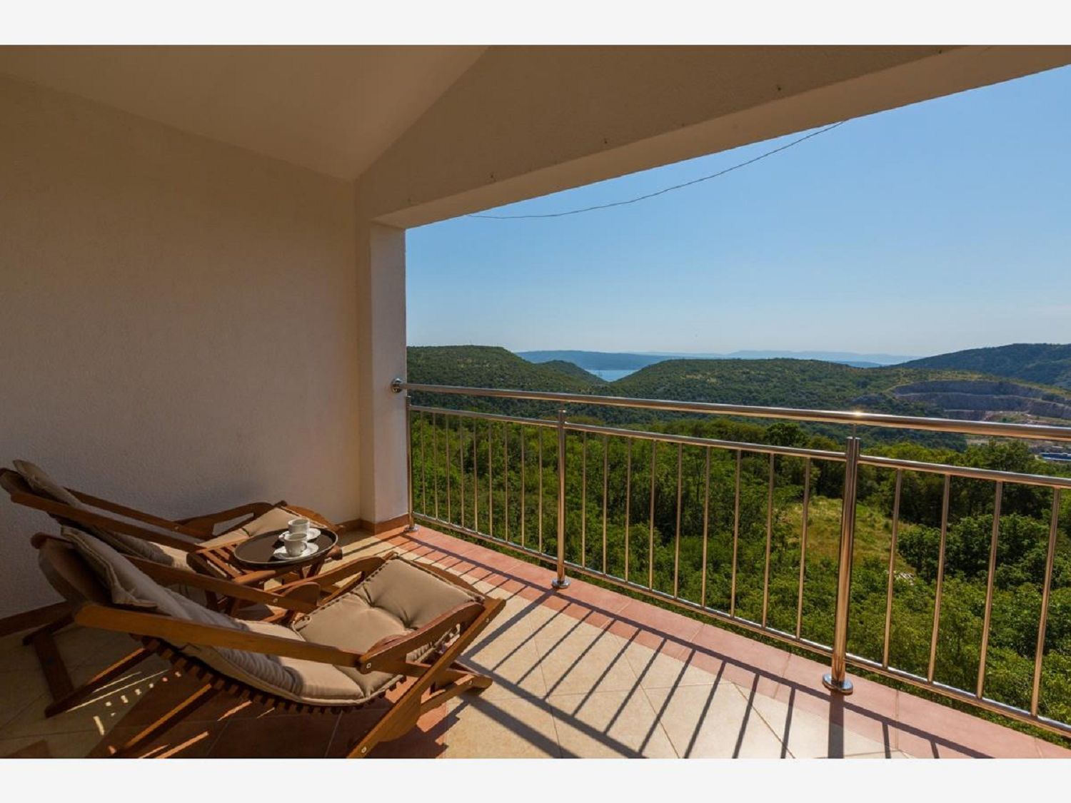 Die 72 m² verteilen sich auf ein gemütliches Wohn-/Esszimmer mit Küche, zwei Schlafzimmer und ein Badezimmer. Der überdachte Balkon ist vom Wohnbereich aus erreichbar und bietet einen schönen Blick auf die umliegenden Hügel, Täler und das blaue Meer der Kvarner Bucht. Der Außenbereich des Hauses steht dieser Ferienwohnung und den beiden weiteren Wohnungen in diesem Haus zur Verfügung. Dazu gehört eine 50 m² große Terrasse mit Grill, Sonnenliegen und einem herrlichen 28 m² großen Swimmingpool.