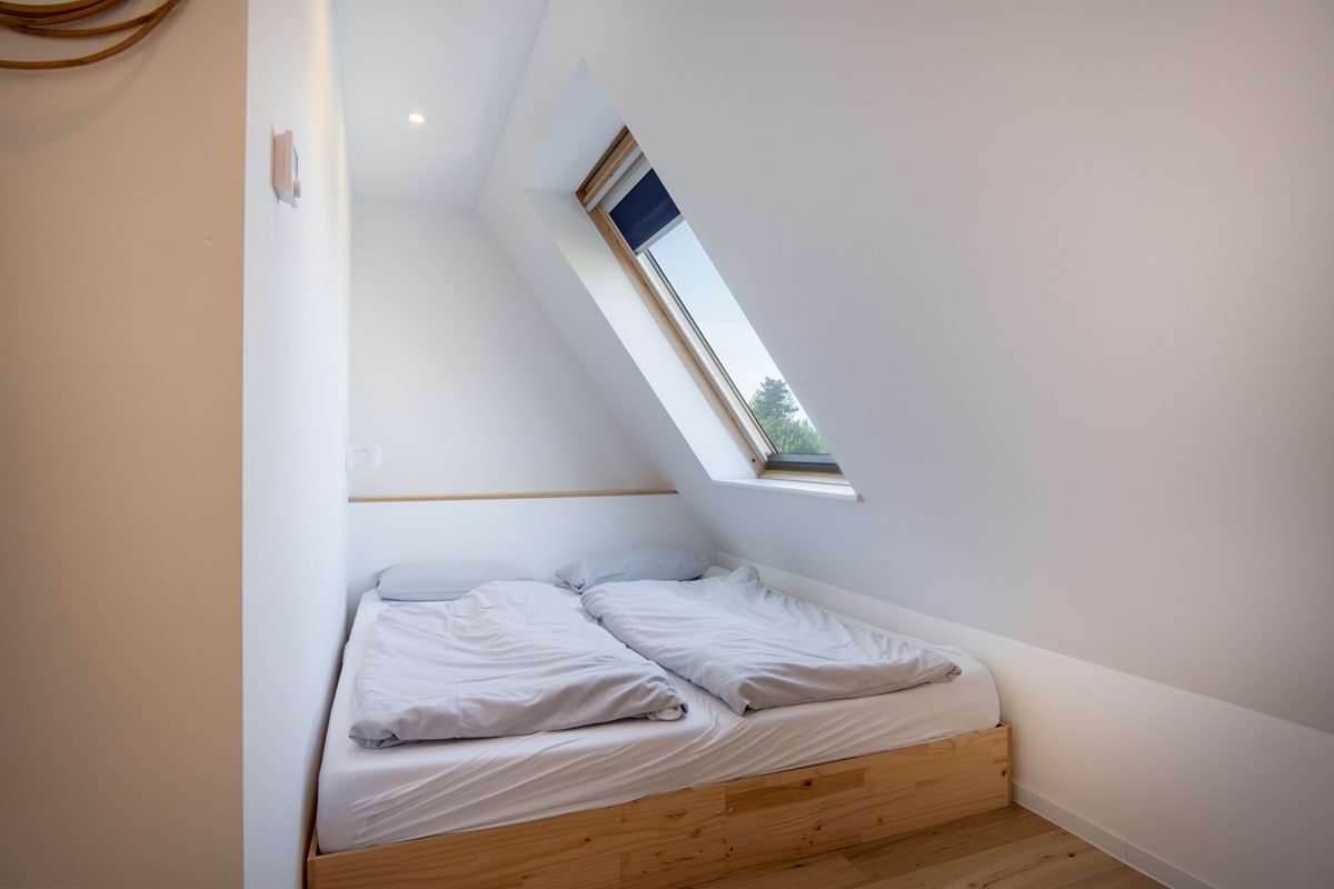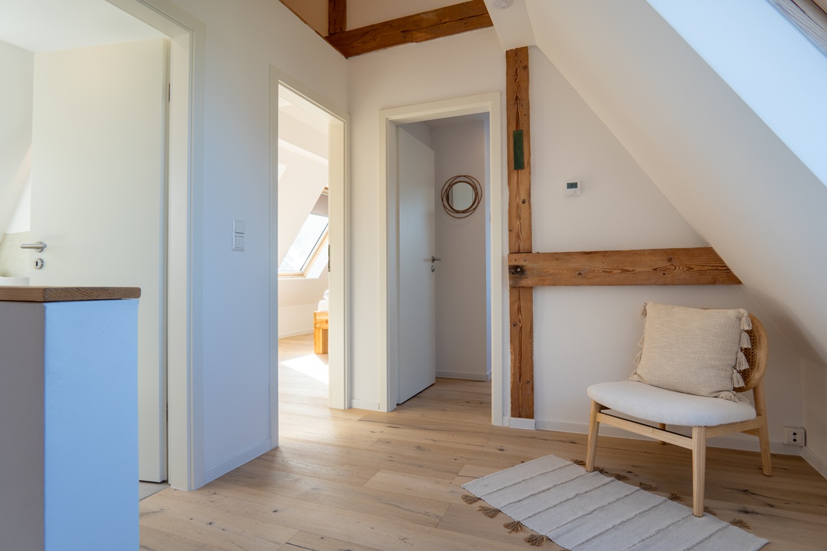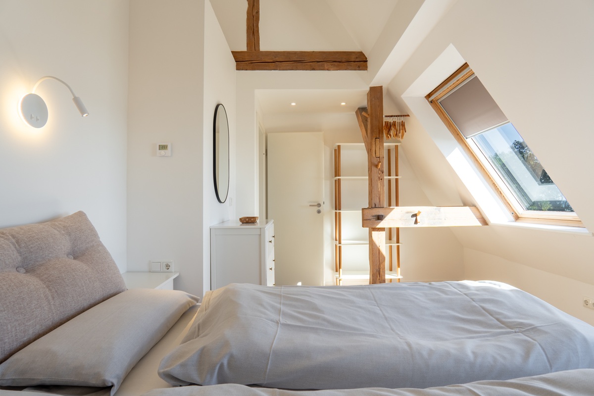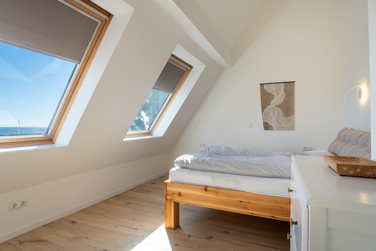 Im Dachgeschoss befinden sich zwei separate Schlafzimmer – beide mit bequemen Doppelbetten (ca. 180 x 200 cm) ausgestattet – sowie zwei moderne Bäder.