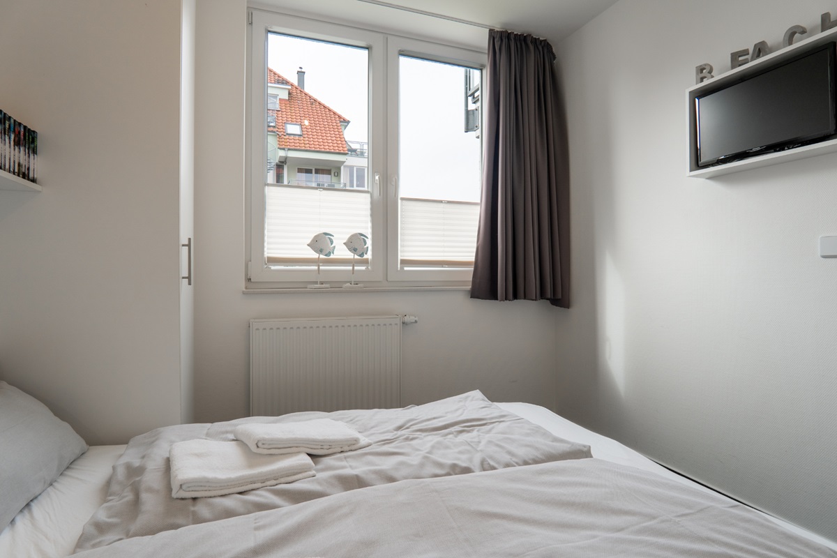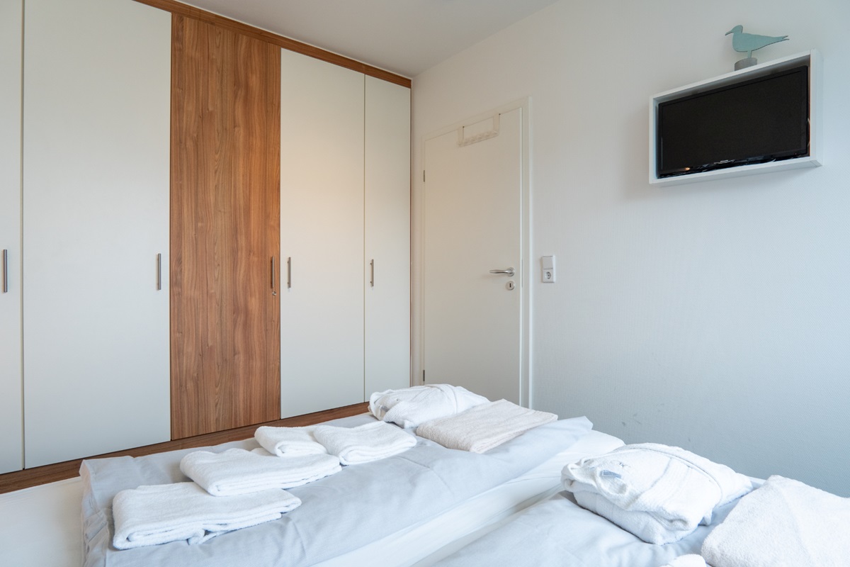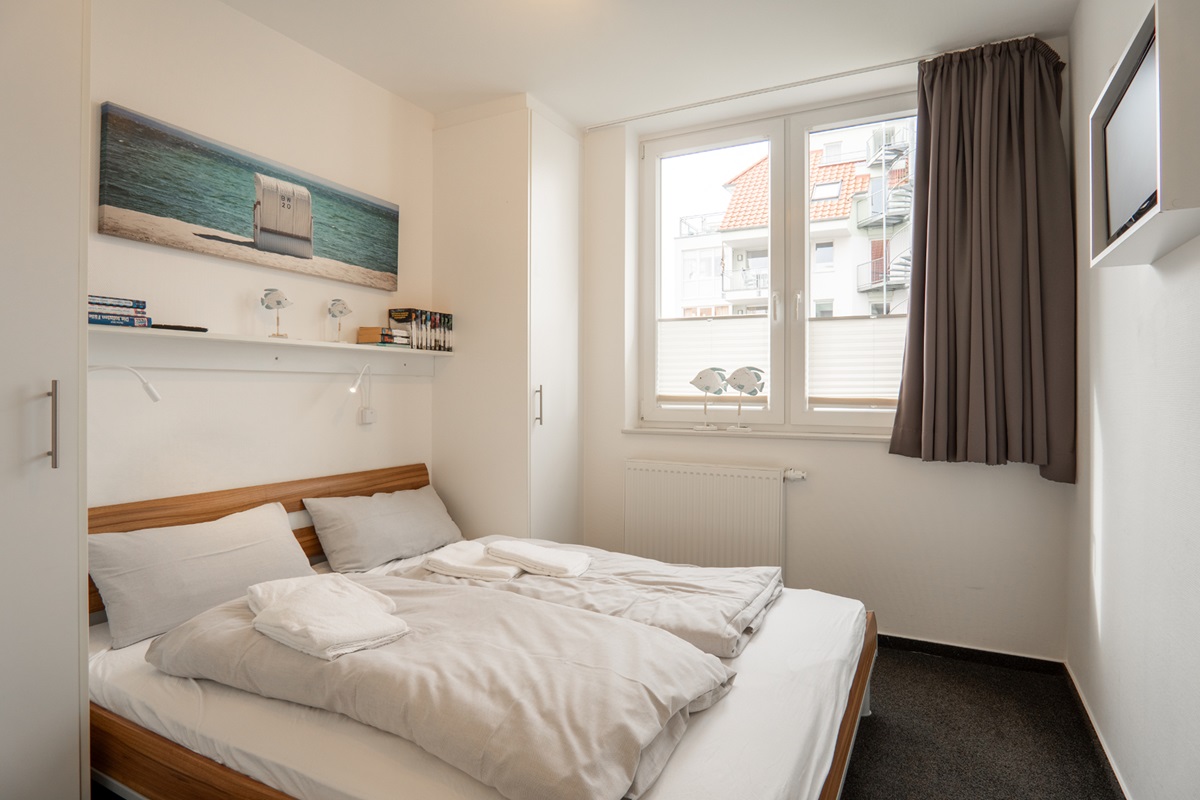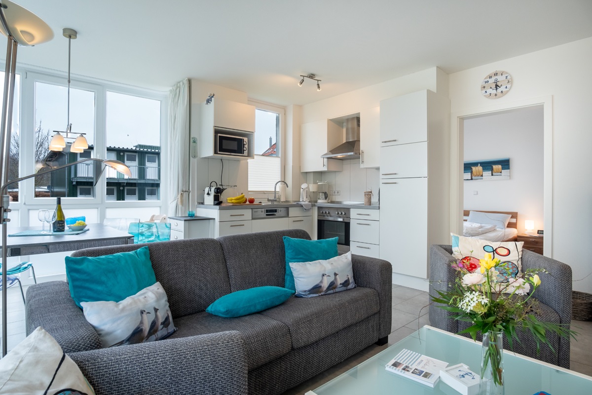 Die Wohnung verfügt über einen lichtdurchfluteten Wohnbereich mit einer gemütlichen Sitzecke mit Kaminofen, einer Essecke mit Blick ins Grüne und der angrenzenden offenen Küchenzeile. Vom Wohnbereich aus gelangt man auf die - man kann die Ostsee schon riechen. Beide Schlafzimmer sind mit bequemen Doppelbetten ausgestattet.