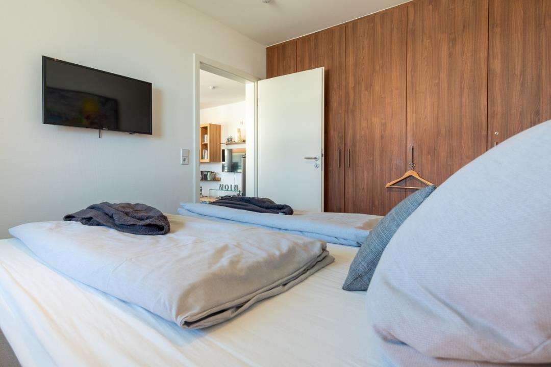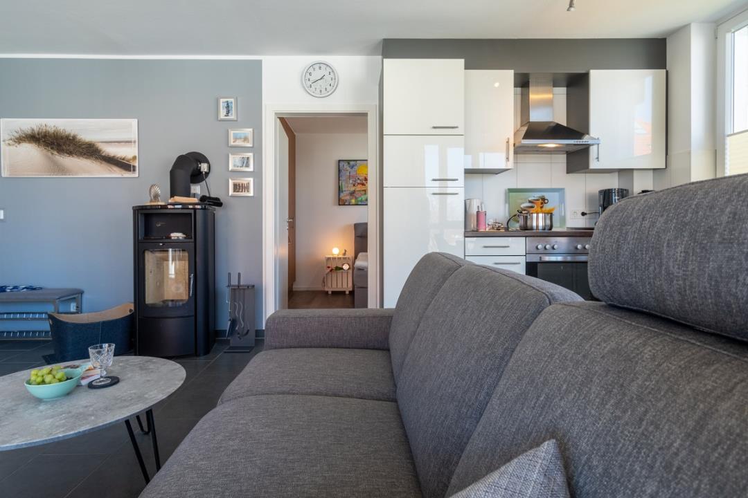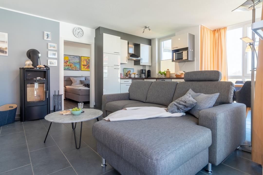 Die 58m²-Wohnung befindet sich in der 2. Etage in der Anlage "Strandpark Großenbrode". Der lichtdurchflutete Wohnbereich, mit direktem Zugang zum Nord-Ost-Balkon, ist mit einer gemütlichen Sofaecke, TV, Spielen, einem Kaminofen u.v.m. ausgestattet. Der offene Küchenbereich ist für den Urlaubsbedarf voll ausgestattet. Eine Kaffeemaschine gehört ebenso dazu, wie der Wasserkocher und ein Toaster. Geschirr und Besteck sind ausreichend vorhanden. Außerdem stehen Ihnen noch ein Backofen und ein Geschirrspüler zur Verfügung. Das große Elternschlafzimmer ist mit einem komfortablen Doppelbett (180200cm) ausgestattet, im Kinderzimmer steht Ihnen ein Etagenbett für zwei Personen zur Verfügung.