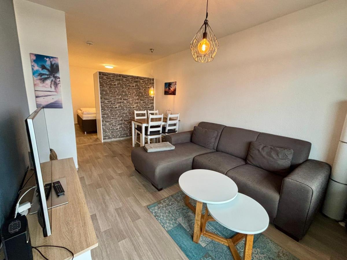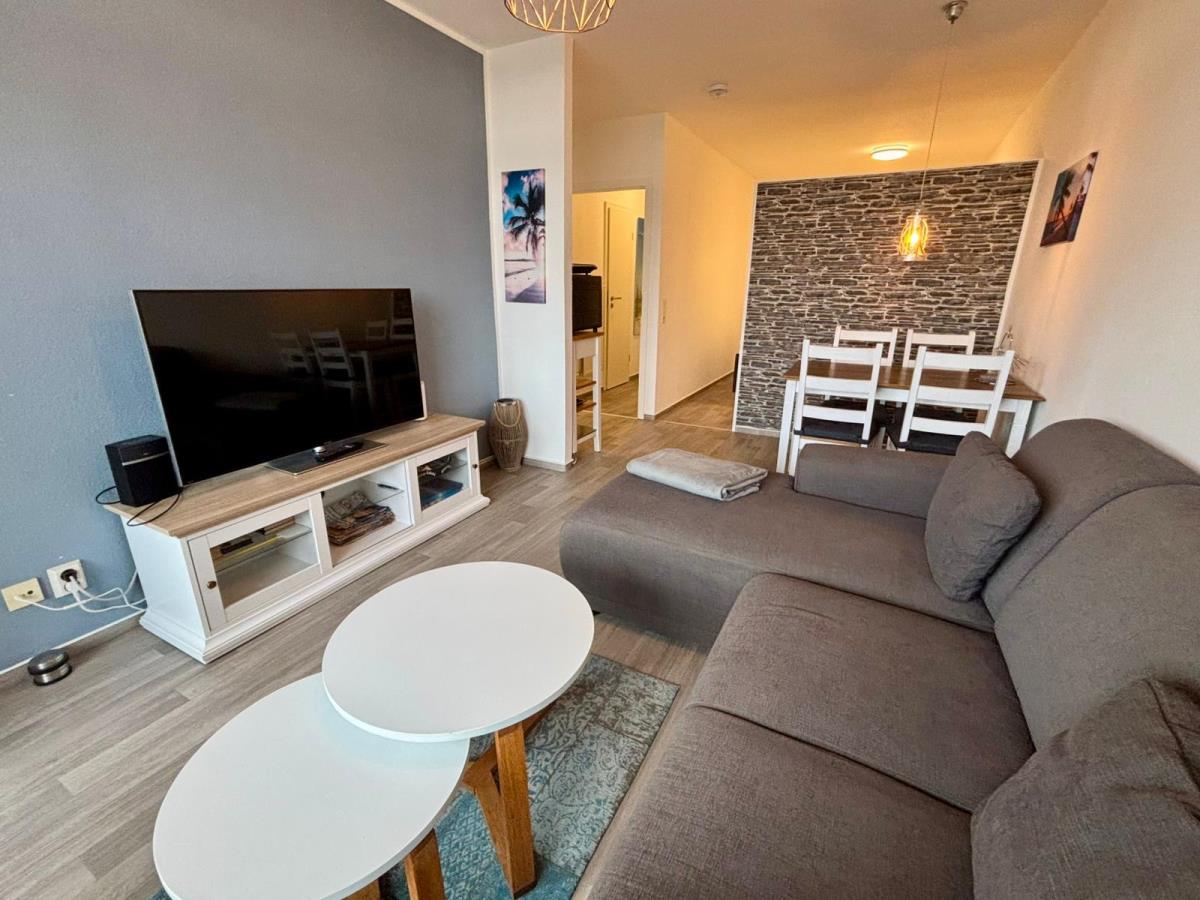 Der lichtdurchflutete Wohnbereich lädt mit einer komfortablen Sofaecke, TV und vielen kleinen Details zum Entspannen und Wohlfühlen ein. Vom Wohnraum aus gelangen Sie direkt auf den Balkon – genießen Sie hier eine Tasse Kaffee am Morgen oder ein Glas Wein am Abend, während Sie den seitlichen Meerblick und die frische Ostseeluft genießen.