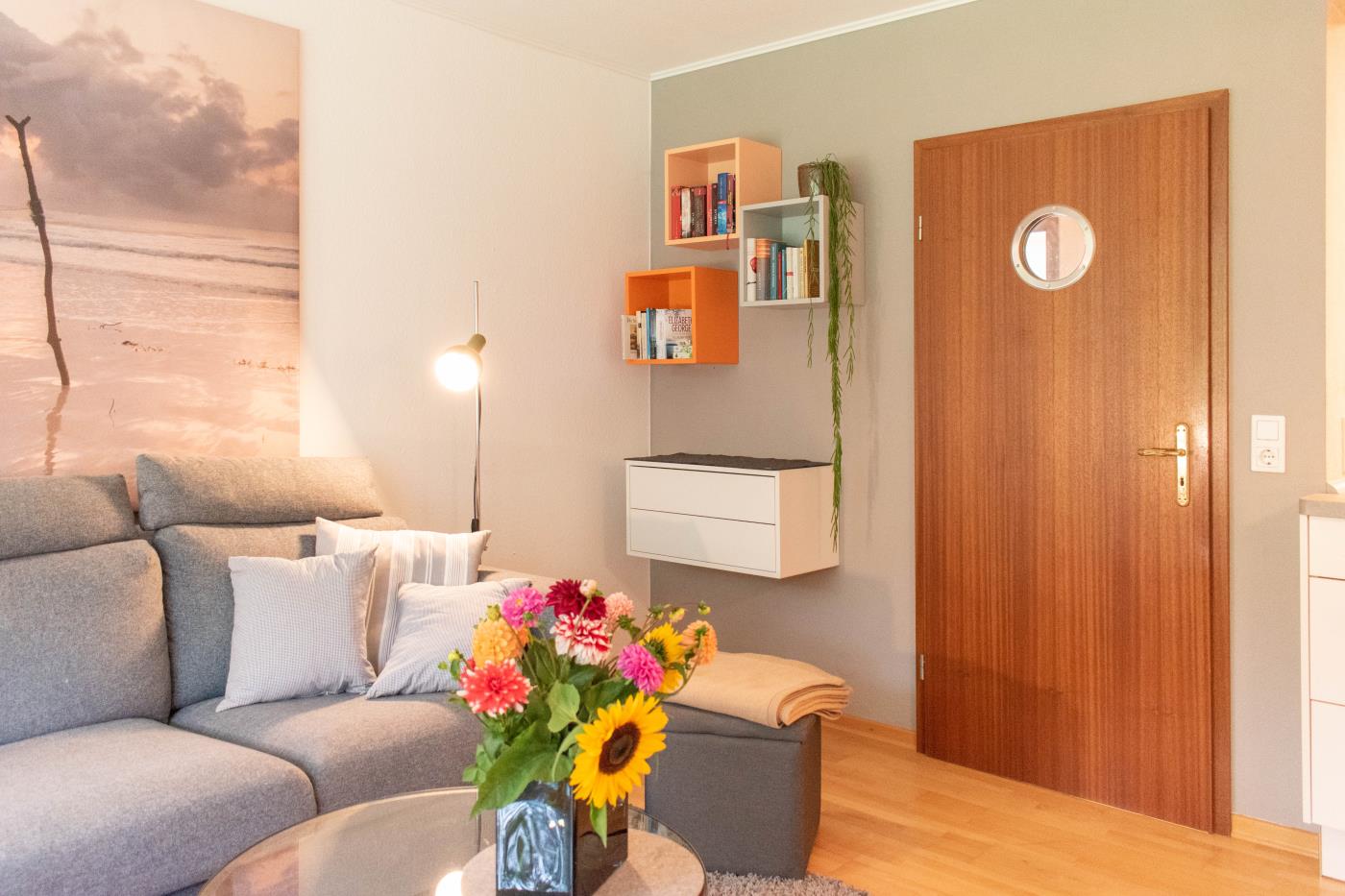 Mit viel Holz, sanften Naturfarben und kuscheligen Textilien ist die Ferienwohnung Gartenkoje auf 55 m² geschmackvoll und gemütlich Stil eingerichtet. Ausgewählte Farbakzente und das durchdachte, maritim angehauchte Design versprühen eine Lebendigkeit und schaffen eine wohlige Atmosphäre. Die Vintageeinflüsse bilden ein heimeliges Ambiente, sodass Sie sich in dieser Wohnung von der ersten Sekunde an wohlfühlen.