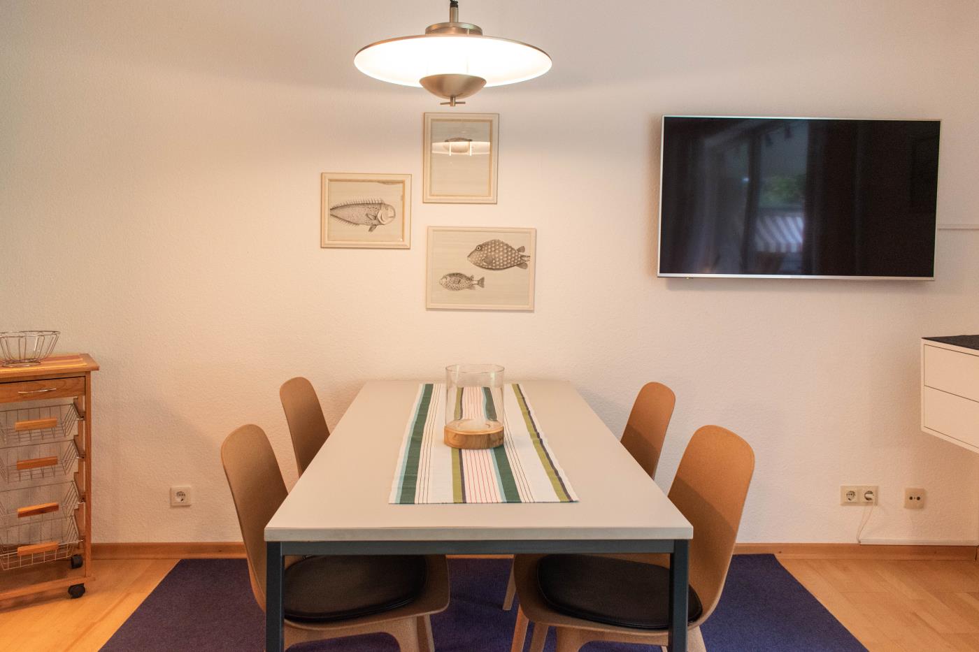 Der Smart-TV im Wohnraum ist mit einem kostenfreien Netflix-Zugang ausgerüstet. Das Internetradio mit DAB+ sowie der WLAN-Zugang gehören ebenfalls zum Entertainment.
