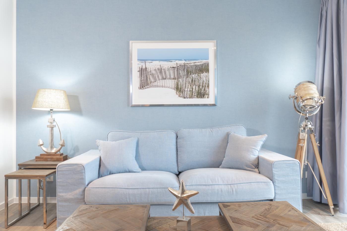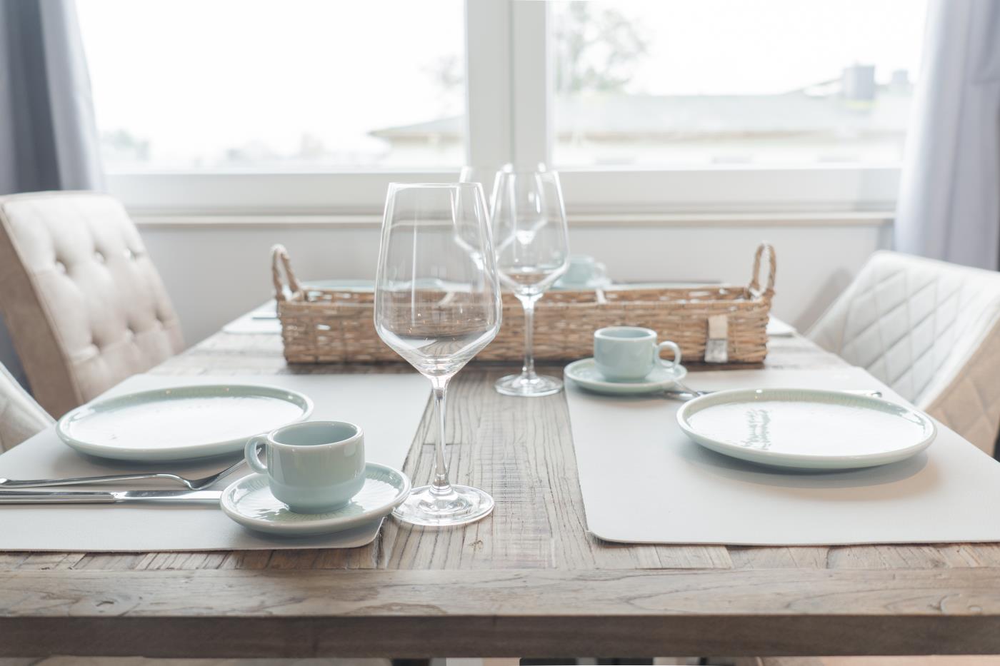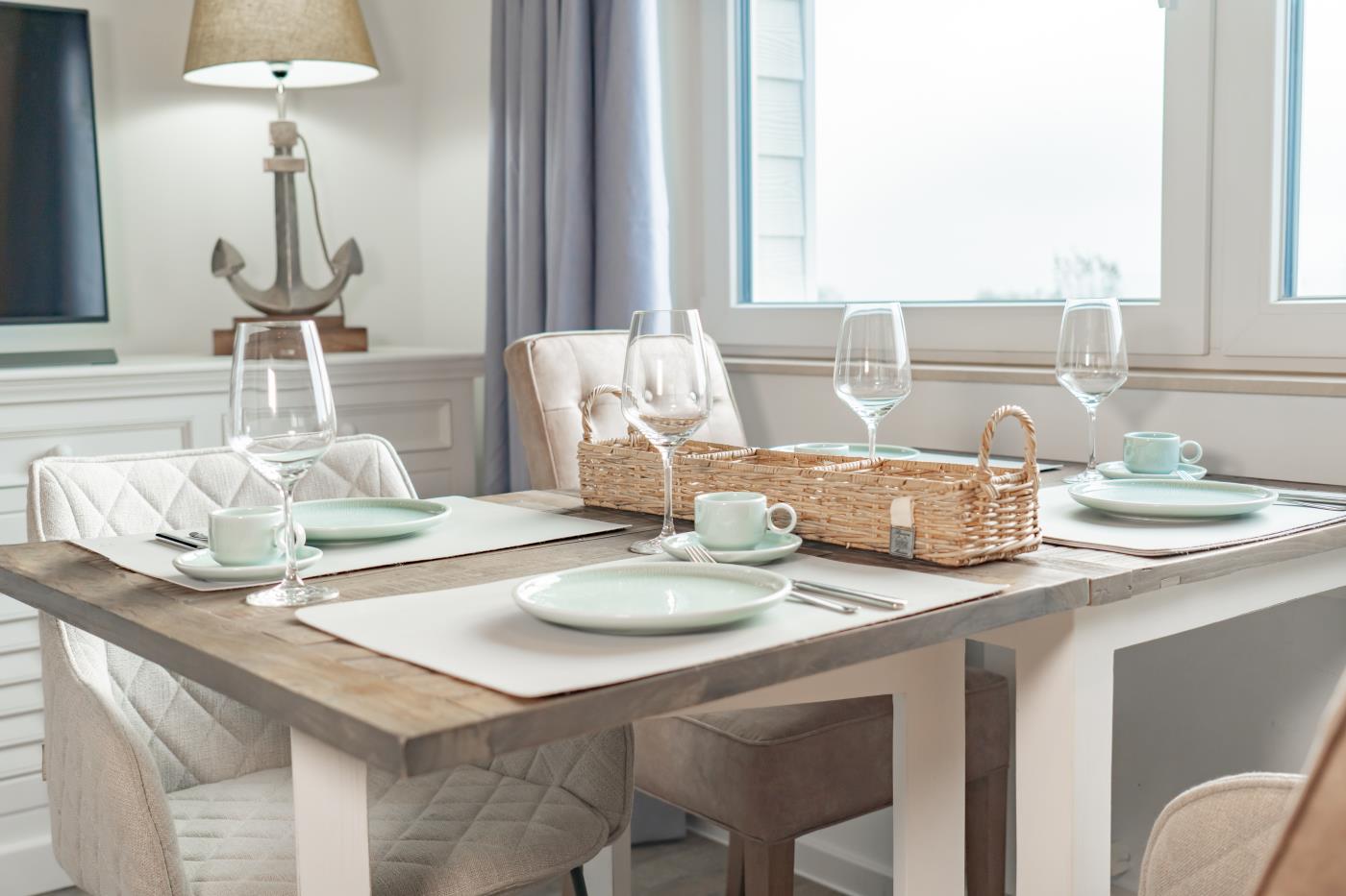 Die Einrichtung der Ferienwohnung HAFFdüün ist lässig und stylisch. Frische Blautöne sowie maritime Dekorationen sorgen für ein luftig-helles Ambiente und das beruhigende Gefühl einer frischen Meeresbrise.