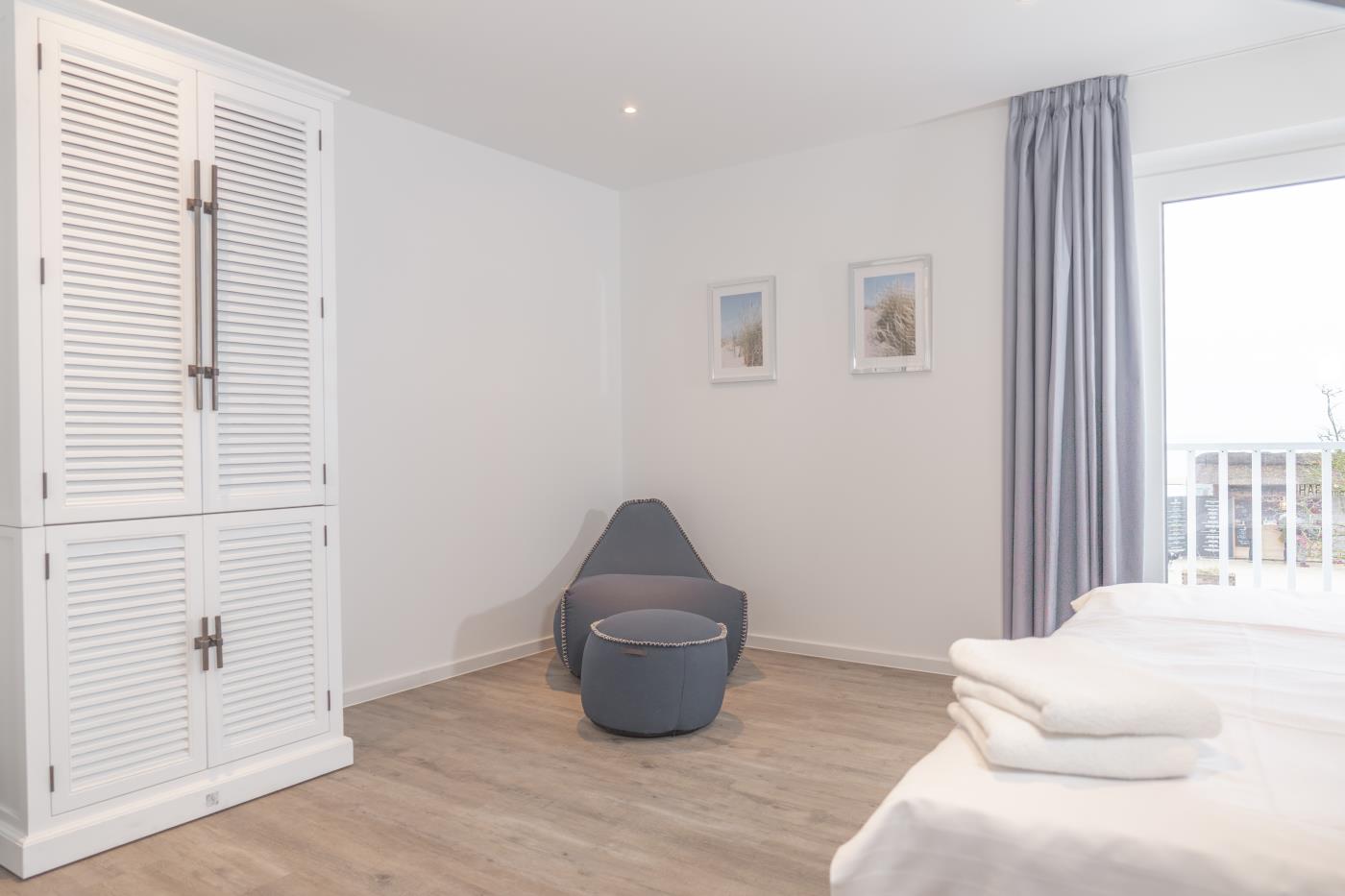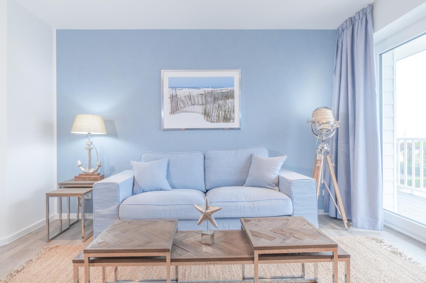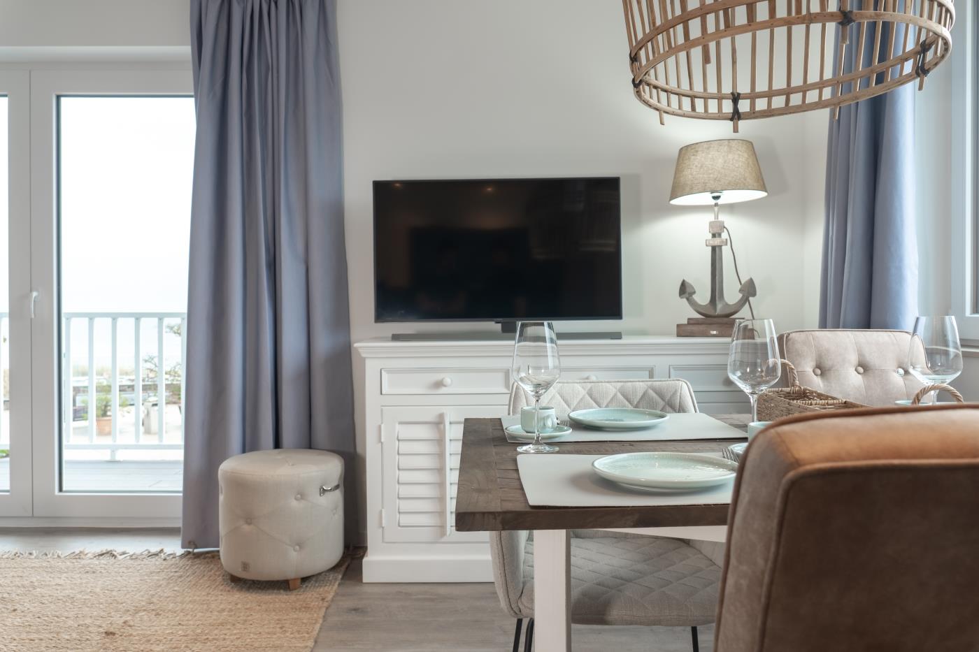 Ihr Zuhause auf Zeit ist eindrucksvoll, hell-maritim im Hamptons-Style gestaltet – für rundum perfektes Sommer-Sonne-Wohlfühlambiente. Das großzügig gehaltene 2-Zimmer Apartment verfügt über ein Schlafzimmer mit Doppelbett (180cm breit). Zusammen mit der ausziehbaren Bettcouch im Wohnbereich stehen damit insgesamt vier Schlafplätze zur Verfügung. Im Wohn- und Essbereich mit Tisch und vier Stühlen sowie Schlafcouch, zwei Sesseln und Sat-TV mit Flachbildschirm kannst Du entspannen, Essen oder z. B. mit der Familie oder Freunden einen Spieleabend gestalten. Die offene Küche unter anderem mit Backofen, Spülmaschine, Kühlschrank, Mikrowelle, 4-Platten-Cerankochfeld, Toaster, Wasserkocher ermöglicht anspruchsvolles Kochen und gleichzeitig geselliges Miteinander. Komplettiert wird Dein traumhaftes Feriendomizil durch das luxuriöse Bad mit Dusche.