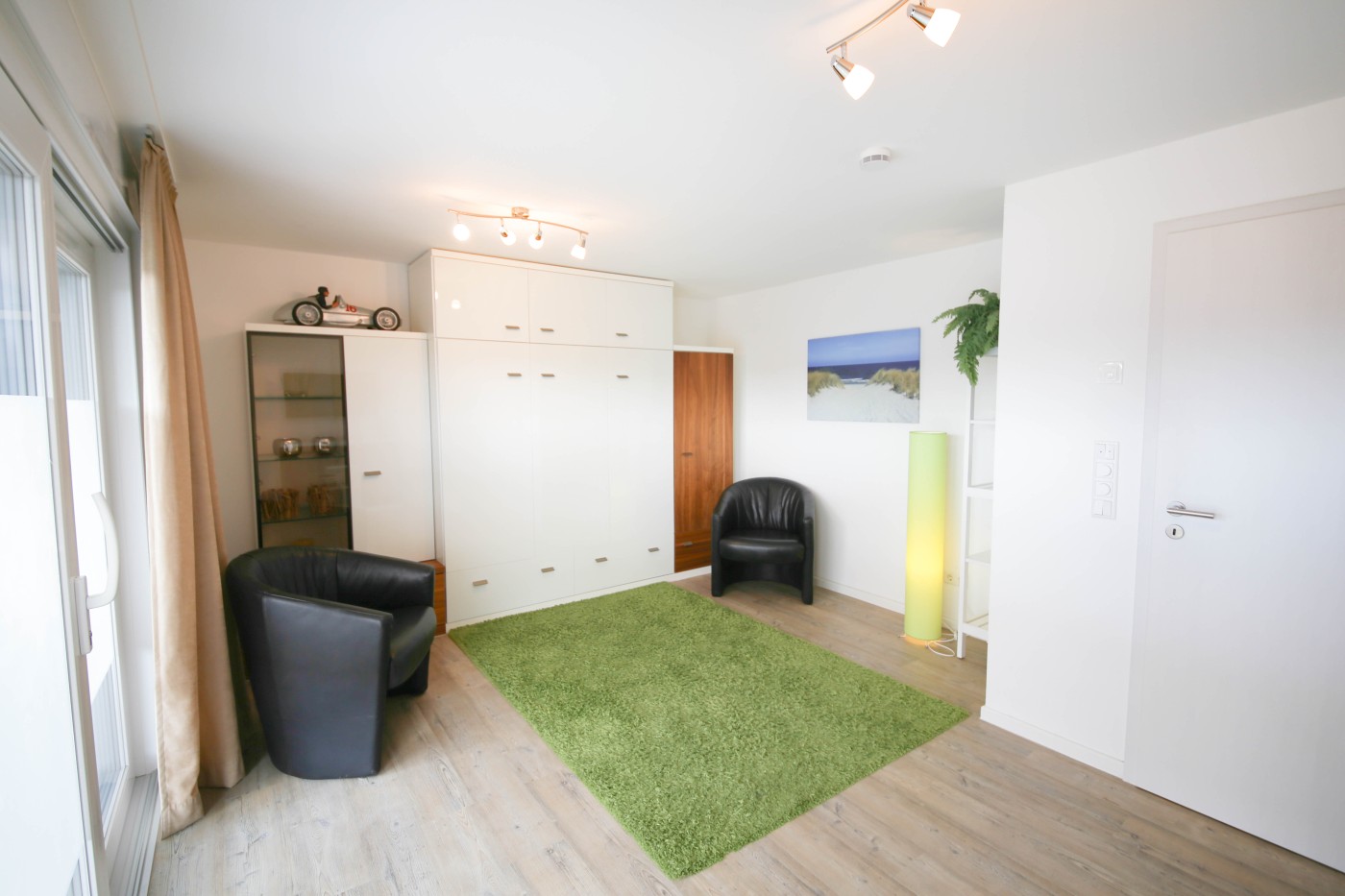 Die Ferienwohnung glänzt durch ihre hochwertige und moderne Ausstattung. Die Farbakzente in frischen Grüntönen sorgen für eine besonders frische und luftige Atmosphäre. Die Fußbodenheizung in der gesamten Wohnung bildet ein wohliges und gemütliches Ambiente, sodass Sie sich in dieser Wohnung von der ersten Sekunde an wohlfühlen.