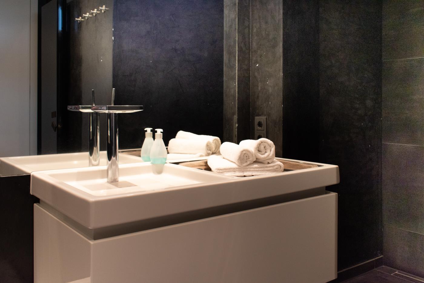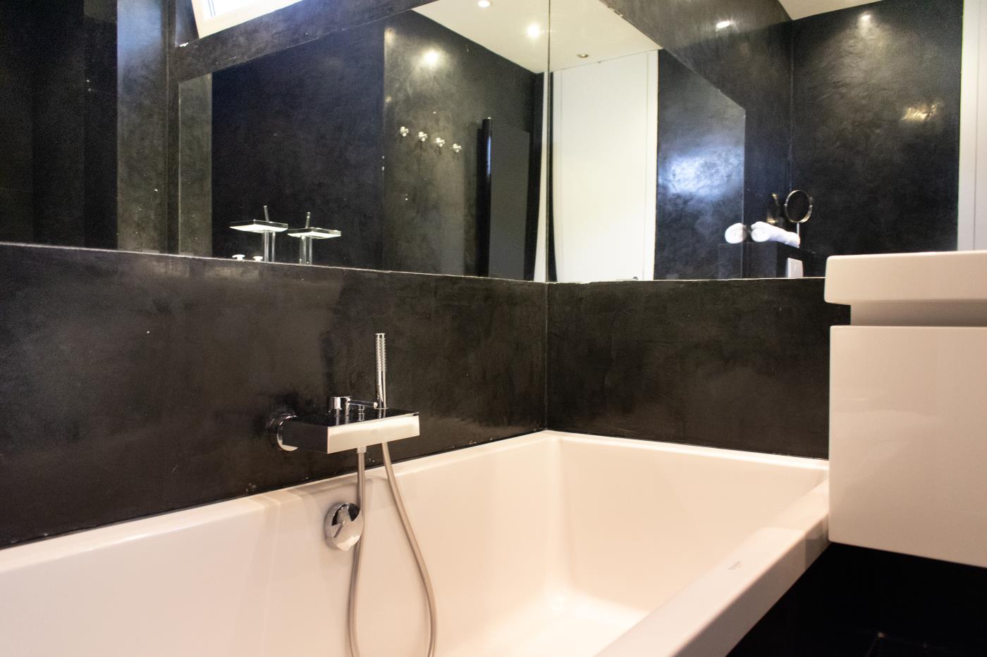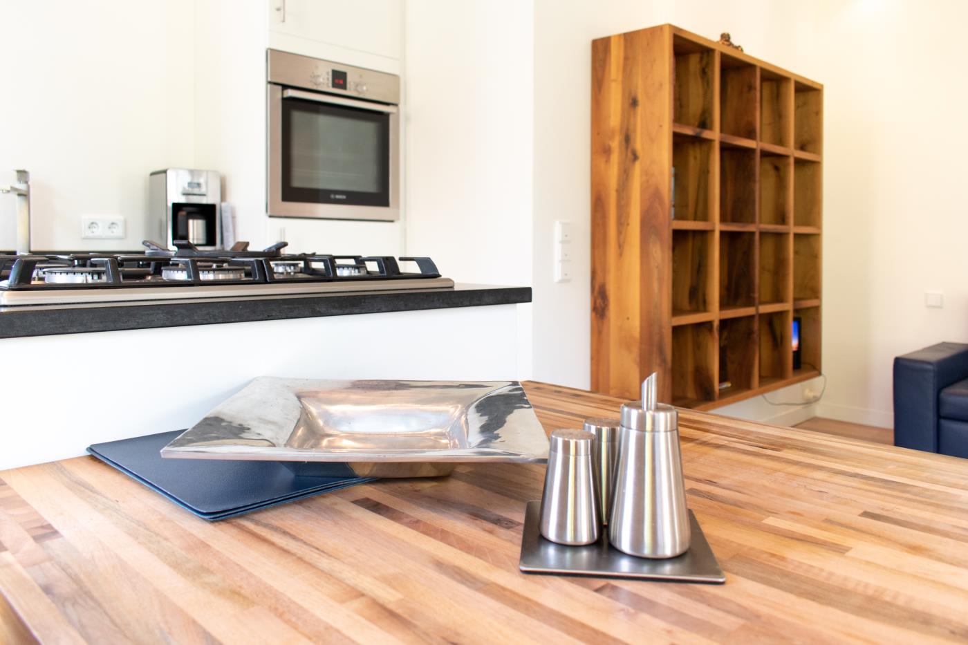 Die lichtdurchflutete Ferienwohnung wurde gekonnt und geschmackvoll eingerichtet. Helle Farben sowie das schlichte und stilvolle Design mit Highlights in frischen Blau- und Aquamarintönen sorgen für einen besonderen und individuellen Charakter. In der gesamten Wohnung wurde hochwertiges Eichenparkett verlegt und die Fußbodenheizung schafft eine wohlige Atmosphäre. Die Fenster können durch Gardinen verdunkelt werden.