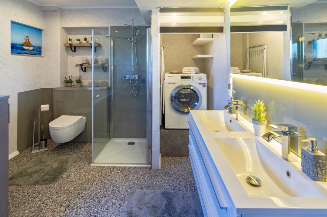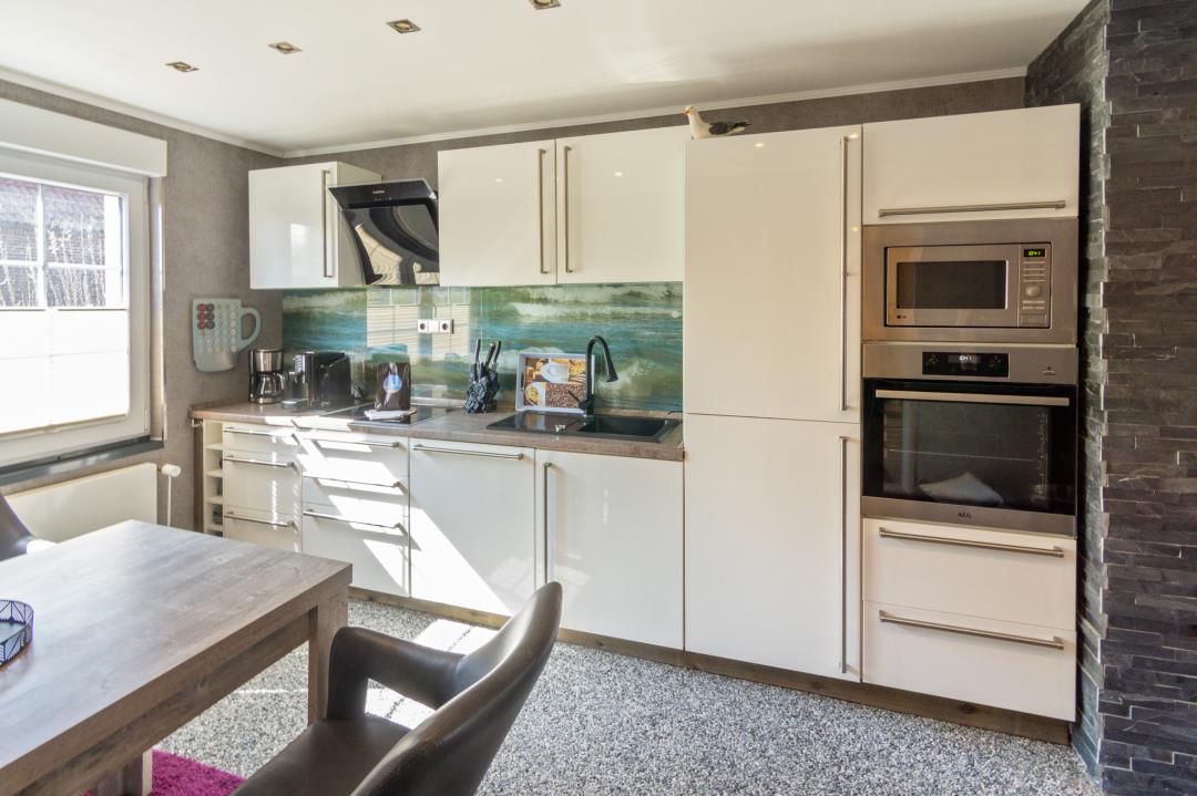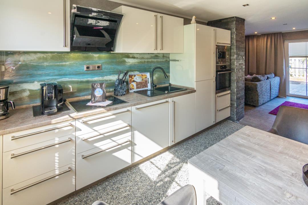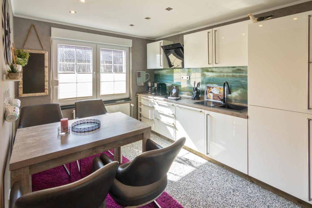 Die stilvoll und modern eingerichtete Wohnung verfügt über einen offenen Wohn- und Essbereich, der durch viel Tageslicht eine angenehme Wohlfühlatmosphäre schafft. Die gemütliche Sofalandschaft lädt zum Entspannen ein, während die voll ausgestattete, integrierte Küche eine komfortable Selbstversorgung im Urlaub ermöglicht. Kurze Wege, hochwertige Ausstattung und durchdachtes Design machen Kochen und Genießen besonders angenehm.