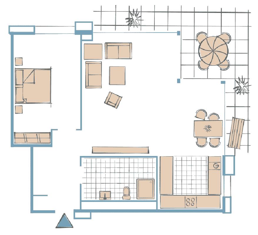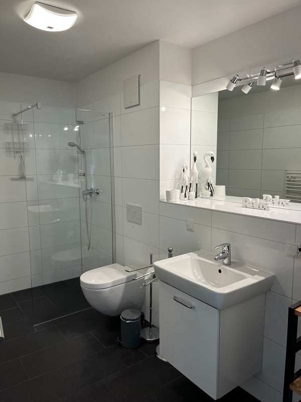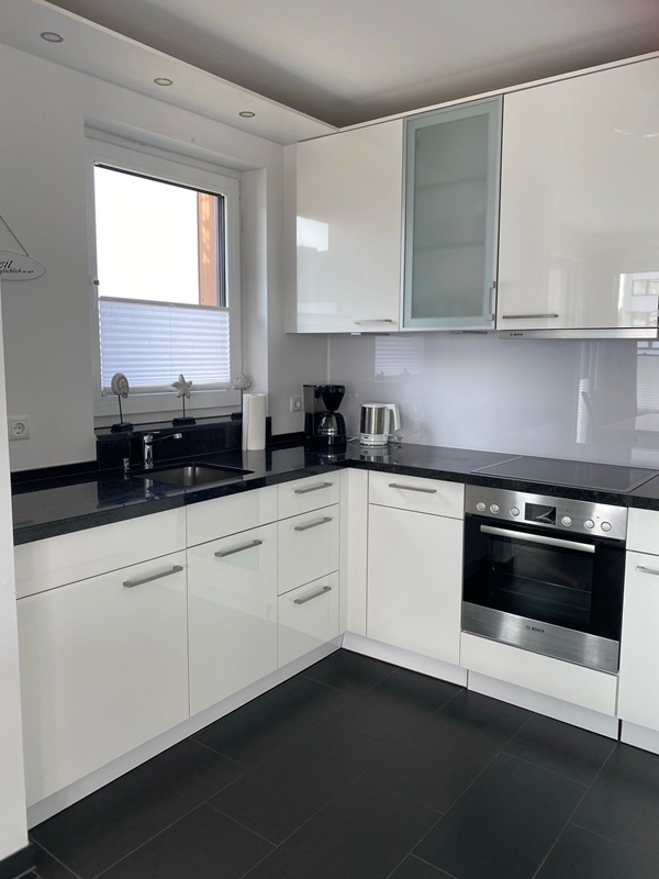 Die großzügigen 65 m² im Erdgeschoss/Hochparterre bieten viel Raum zum Entspannen. Das helle, freundliche Wohnzimmer mit gemütlicher Sofaecke, Flatscreen-TV und DVD-Player lädt zu entspannten Stunden ein. In der voll ausgestatteten Küchenzeile bleiben keine Wünsche offen: Backofen, Geschirrspüler, Kaffeemaschine, Wasserkocher, Toaster – und sogar ein Waschtrockner stehen Ihnen zur Verfügung.