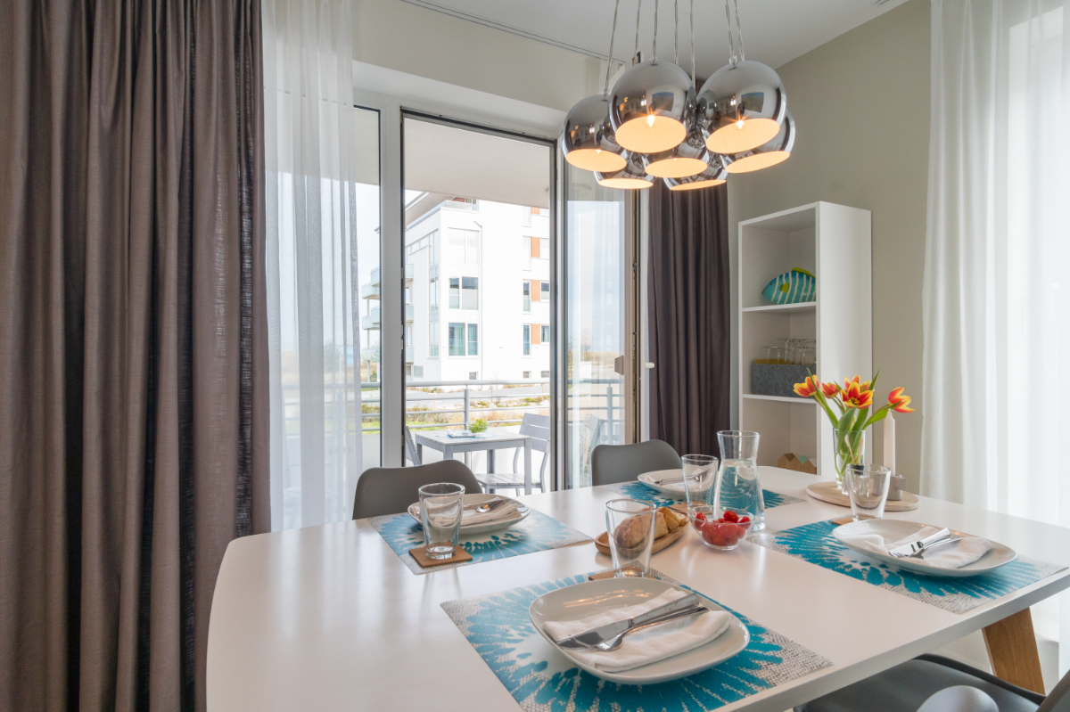 Diese top sanierte und liebevoll eingerichtete Hochparterrewohnung bietet zwei Personen auf 52 m² ein modernes Urlaubsambiente. Vom Wohnraum und von der Loggia schauen Sie auf die Dünen des Ostseestrandes. Das gepflegte Haus „Windjammer“ liegt direkt am Ufer des Binnensees. Mit nur wenigen Schritten sind Sie am Ostseestrand oder flanieren über die neue Binnenseepromenade zum modernen Yachthafen und zur Seebrücke.