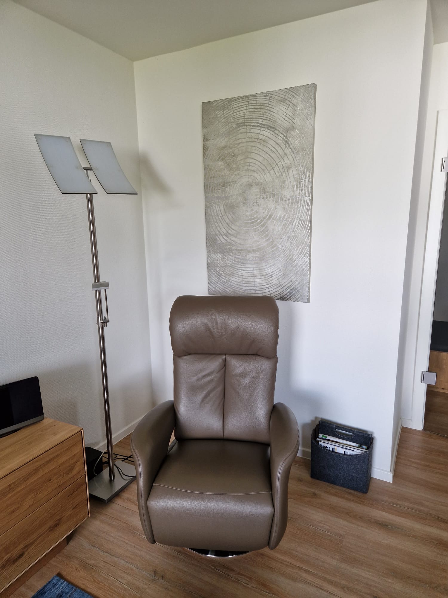 Das Schlafzimmer verfügt über ein Boxspringbett der Extraklasse. Die hohe Matratze lässt einen geradezu schweben. Ausreichend Platz für die Urlaubsgarderobe und SmartTV gehören hier zum Standard. Als weiterer Schlafplatz steht ein Schlafsofa (140x200 mit Bultexmatratze) zur Verfügung.