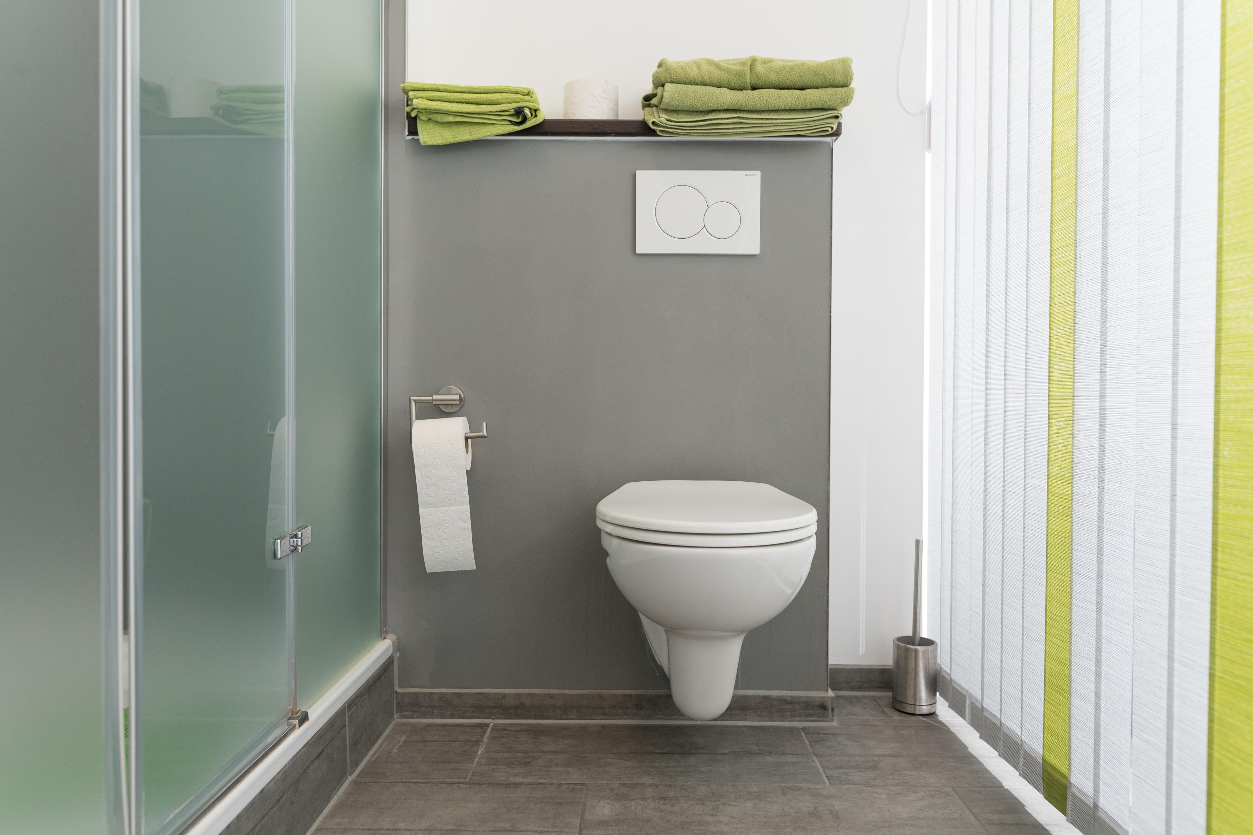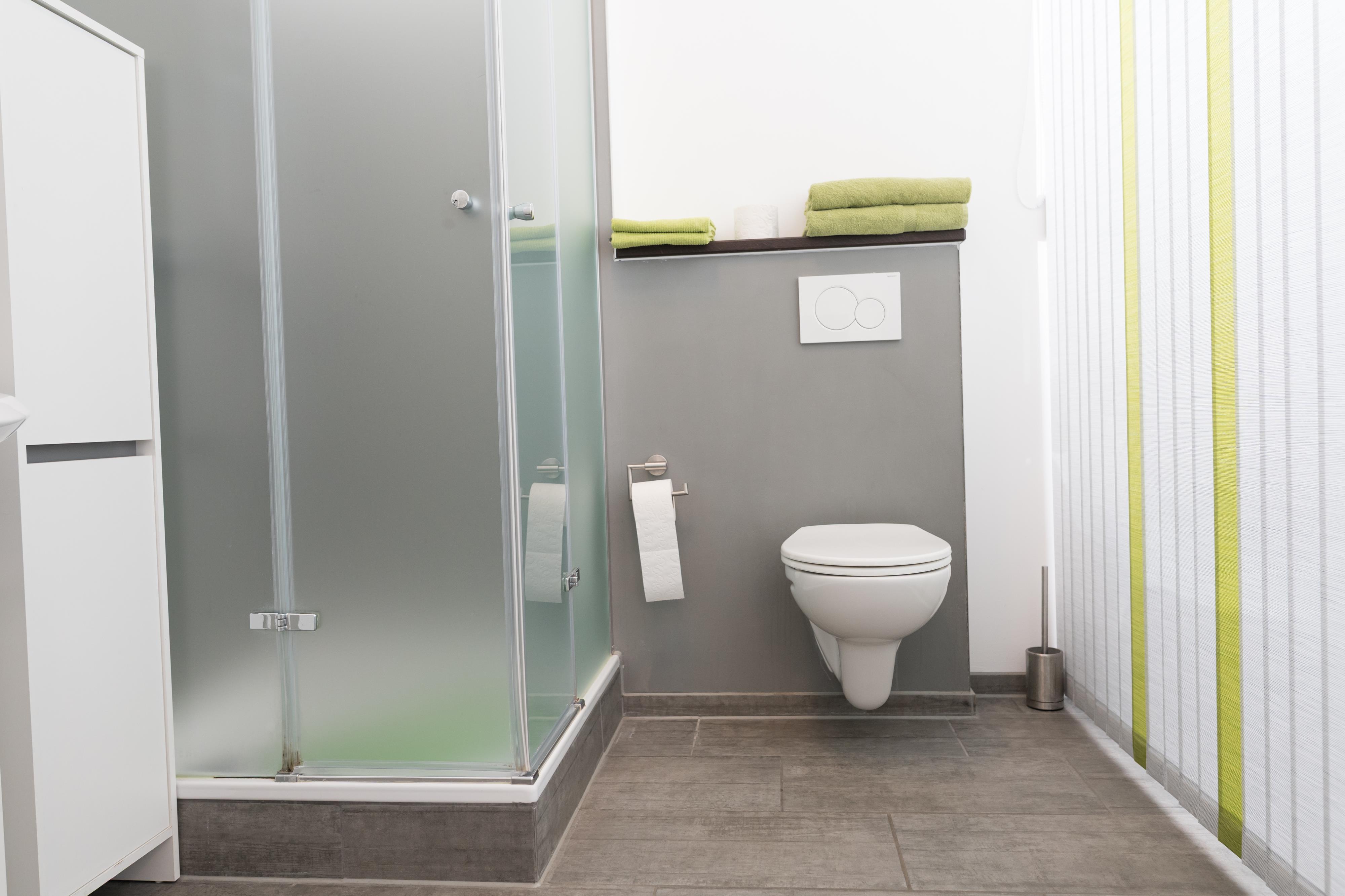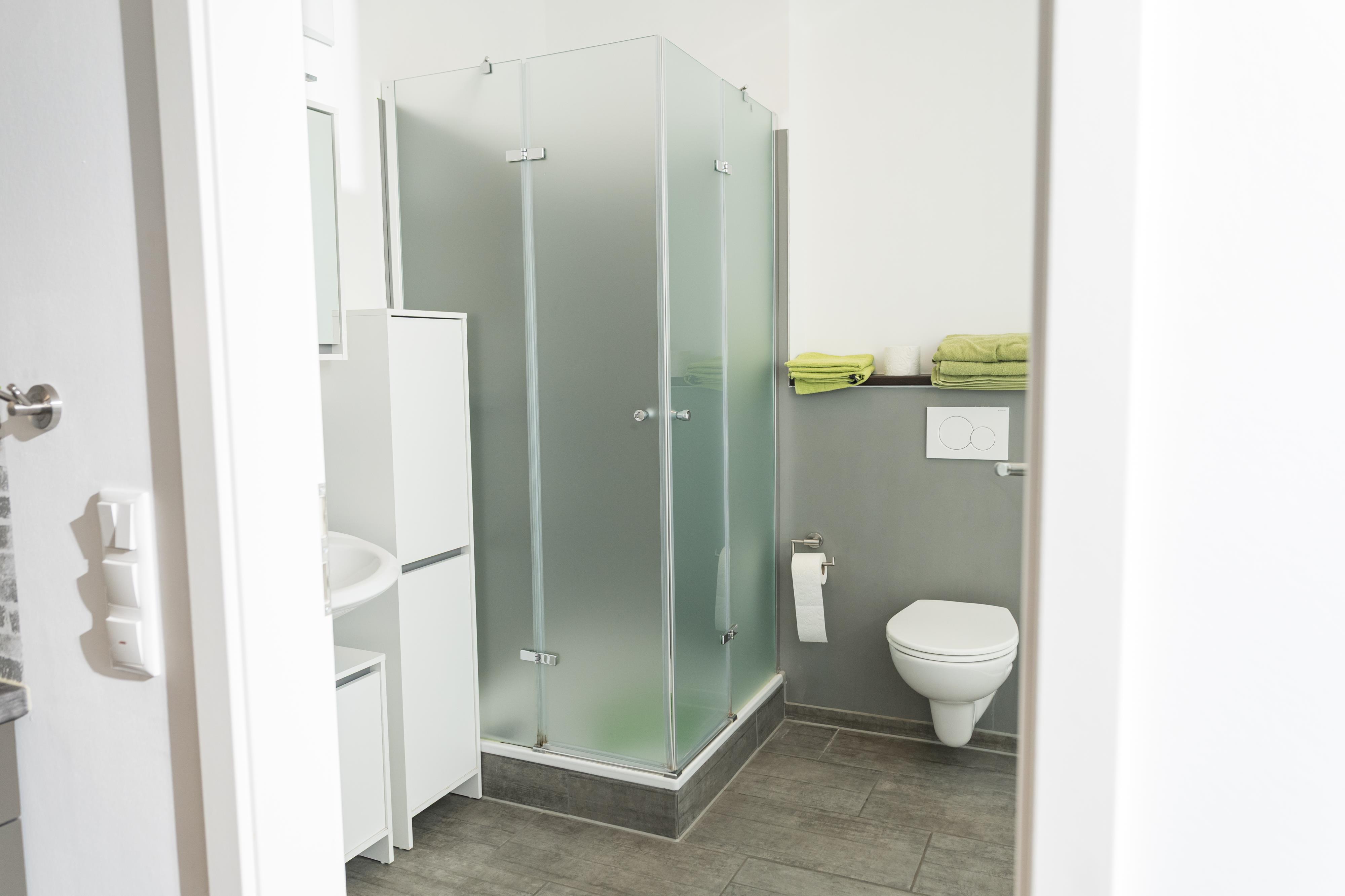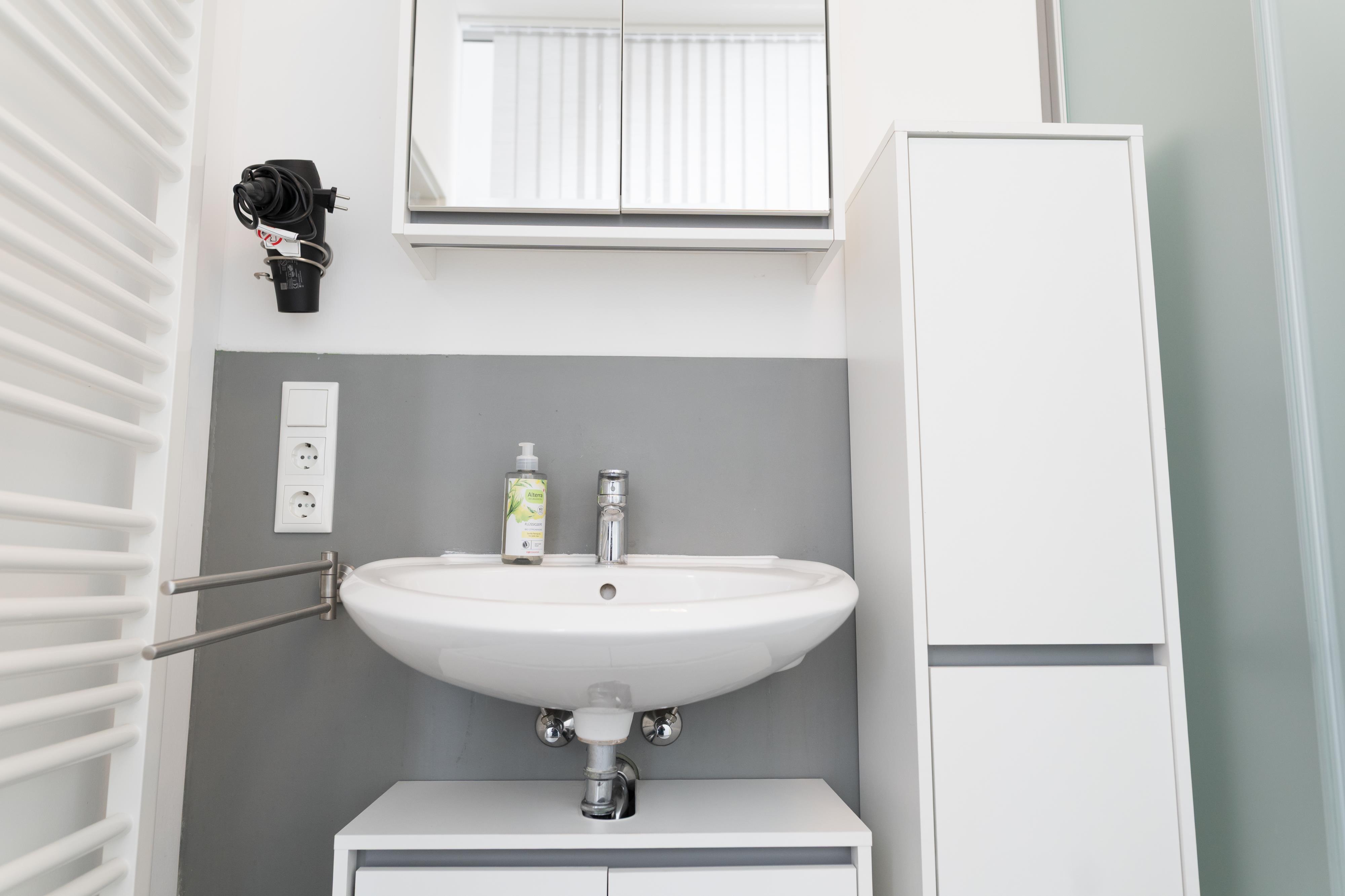 Bad mit Dusche, WC, Handtuchheizung und Föhn.