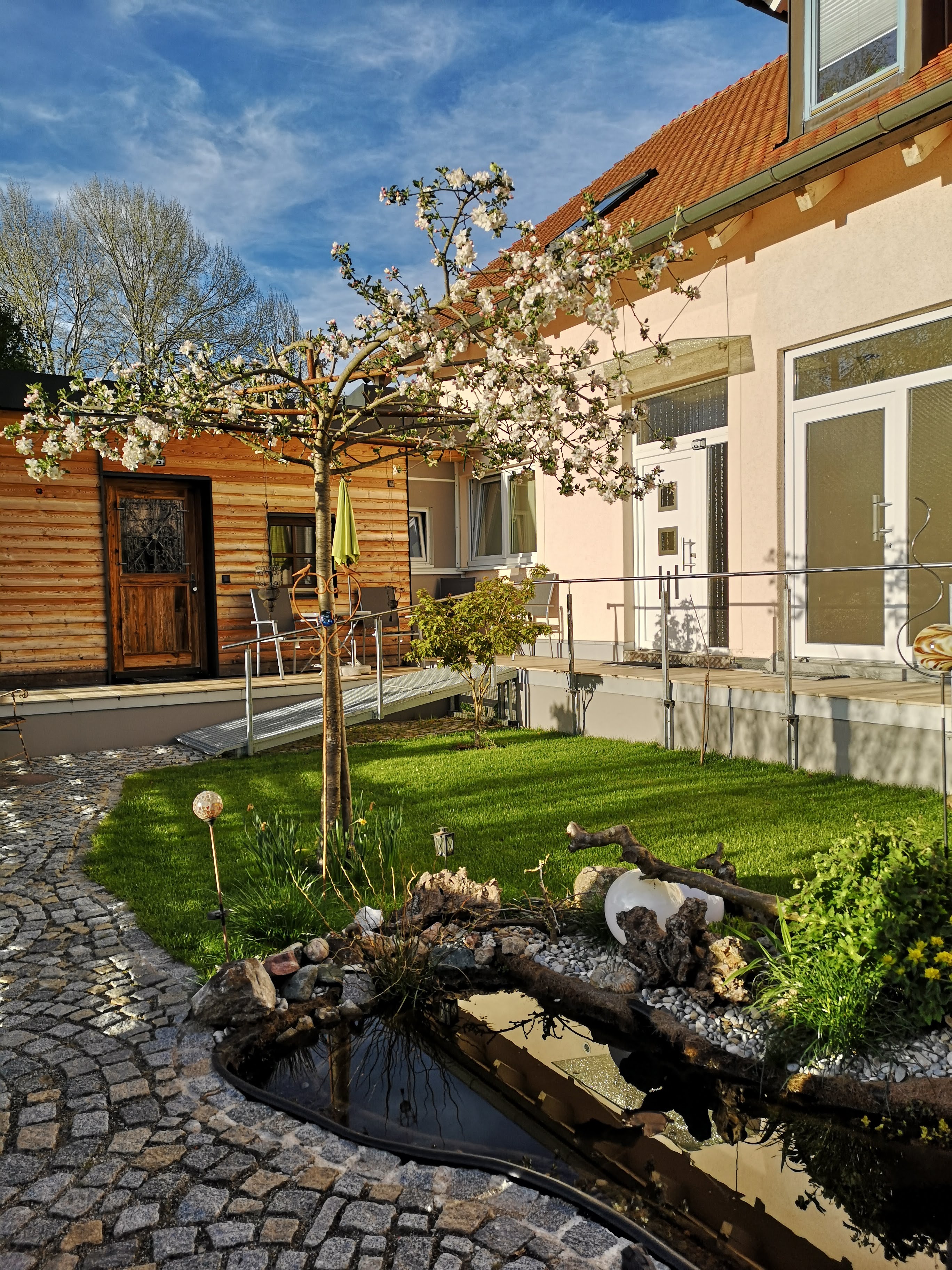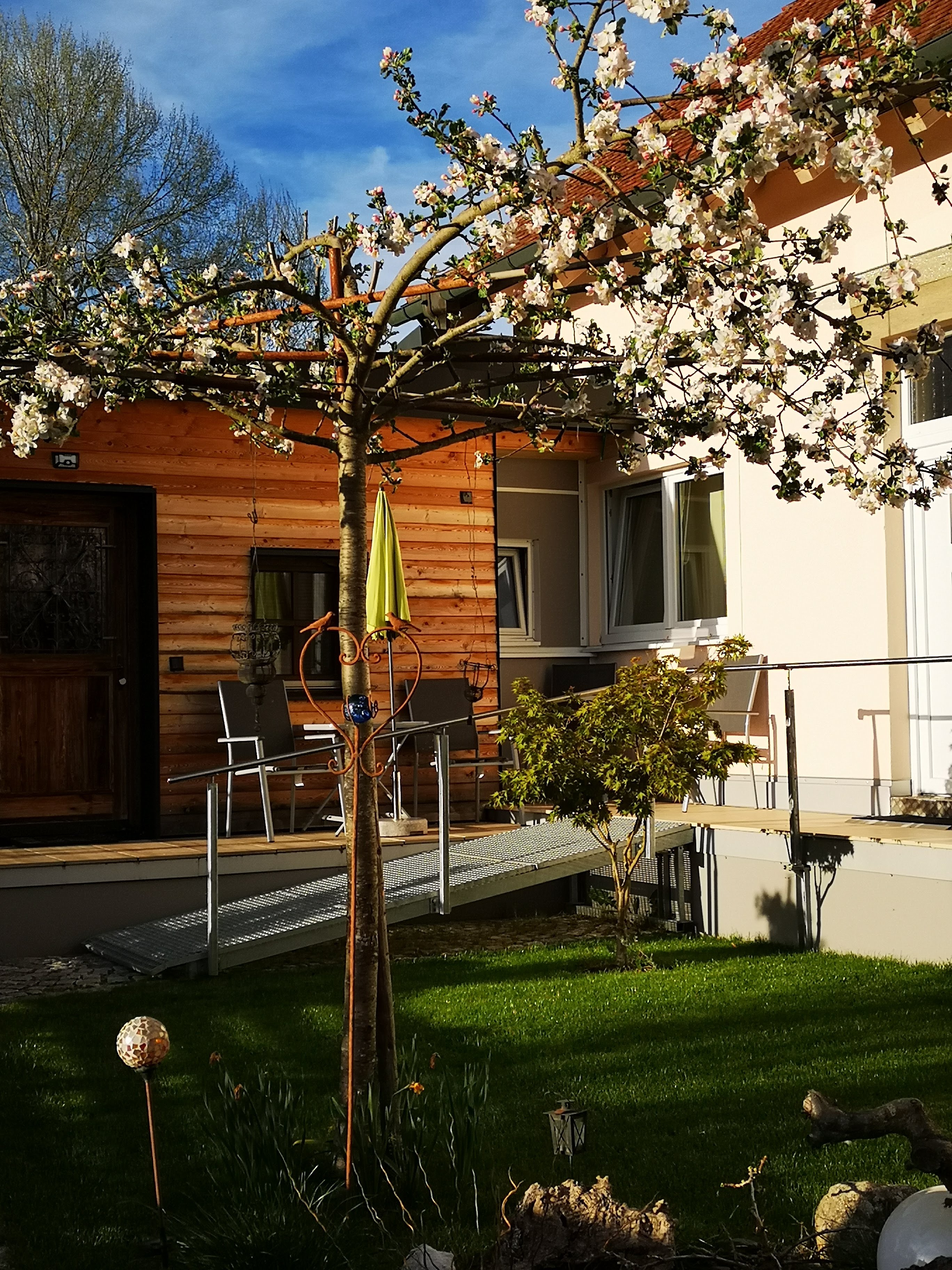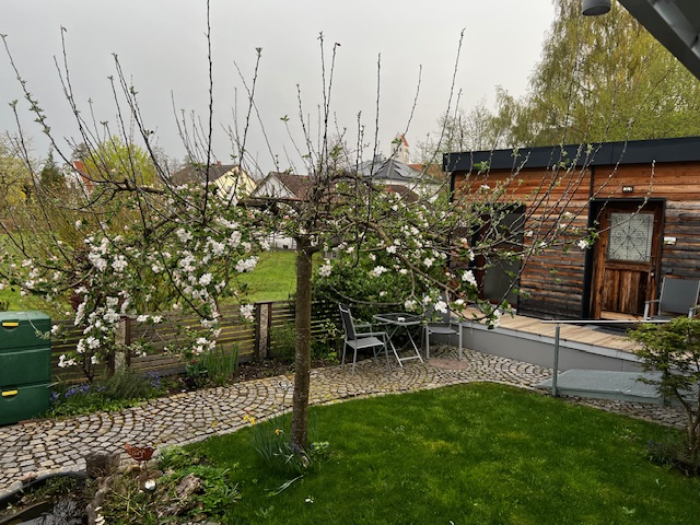 Ausstattung: klein Küchenzeile mit transportablen Herdplatten, eine Mikrowelle, Kaffeemaschine, Kühlschrank mit Gefrierfach, Pfannen, Kochtöpfe und Geschirr. Bad mit Dusche, WC, Föhn und Handtuchheizung. Nichtraucherwohnung.