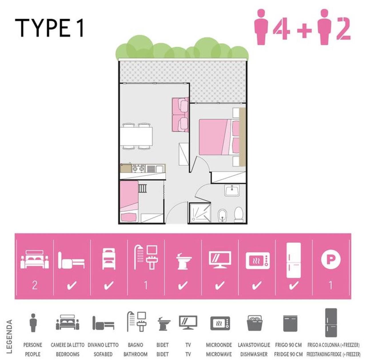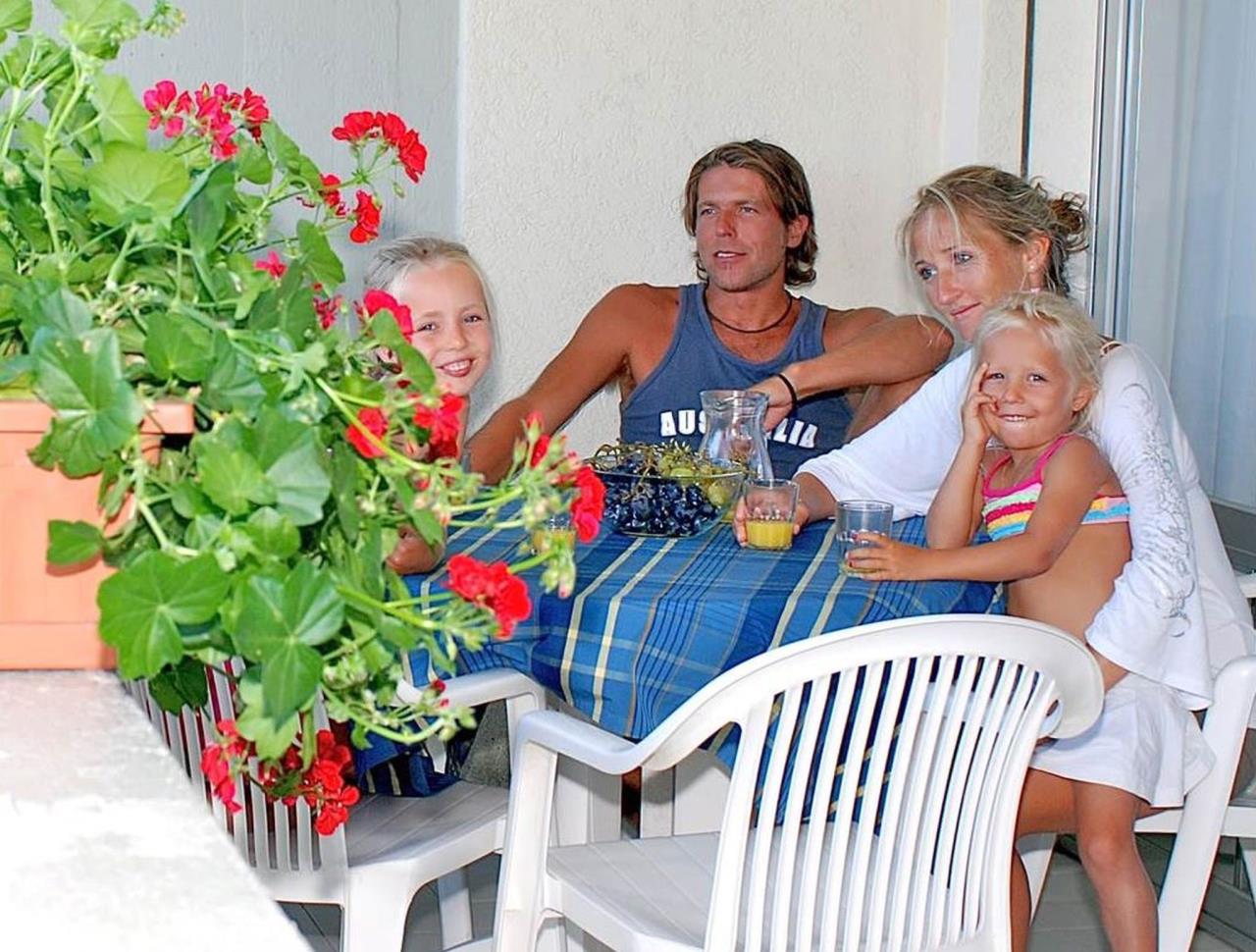 Unseren Gästen stehen neu renovierte Wohnungen Family Studio für maximal 6 Personen mit gut eingerichteter offener Küche (Geschirr, Besteck, Töpfen) zur Verfügung. Neben einem Zimmer mit Ehebett, steht eine abgetrennte Schlafnische/Zimmer (abgetrennt durch einen Vorhang) mit einem Etagebett zur Verfügung. Das ausziehbare Bettsofa im Wohnzimmer bietet weitere 2 Schlafplätze an. Bad mit Duschkabine. Die Wohnungen verfügen über einen SAT-TV. Der Balkon mit Esstisch lädt zum gemütlichen Entspannen ein, während die Kinder sich auf dem Spielplatz austoben können. Es gibt ausserdem eine Wäscherei mit Waschmaschine, Trockner und Bügeltisch. Grillieren erlaubt. Fahrzeit ab ital. Grenze ca. 3h. Ab 201'5 keine Badekappen-Pflicht mehr. Hinweis Wenn Sie mehr als eine Unterkunft benötigen, ist dies bei uns in der Regel möglich, da wir über mehrere Objekte des gleichen Haustyps verfügen.