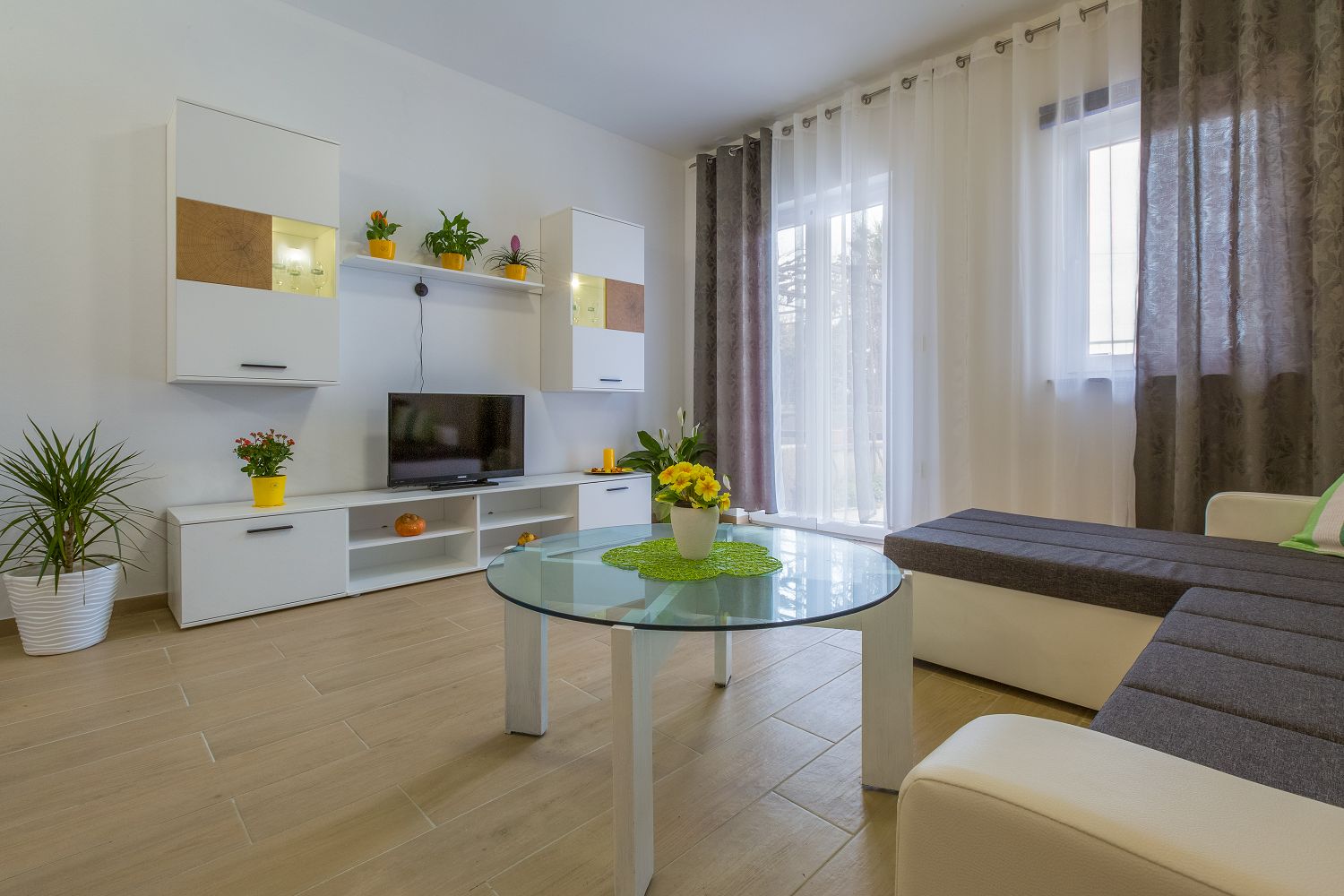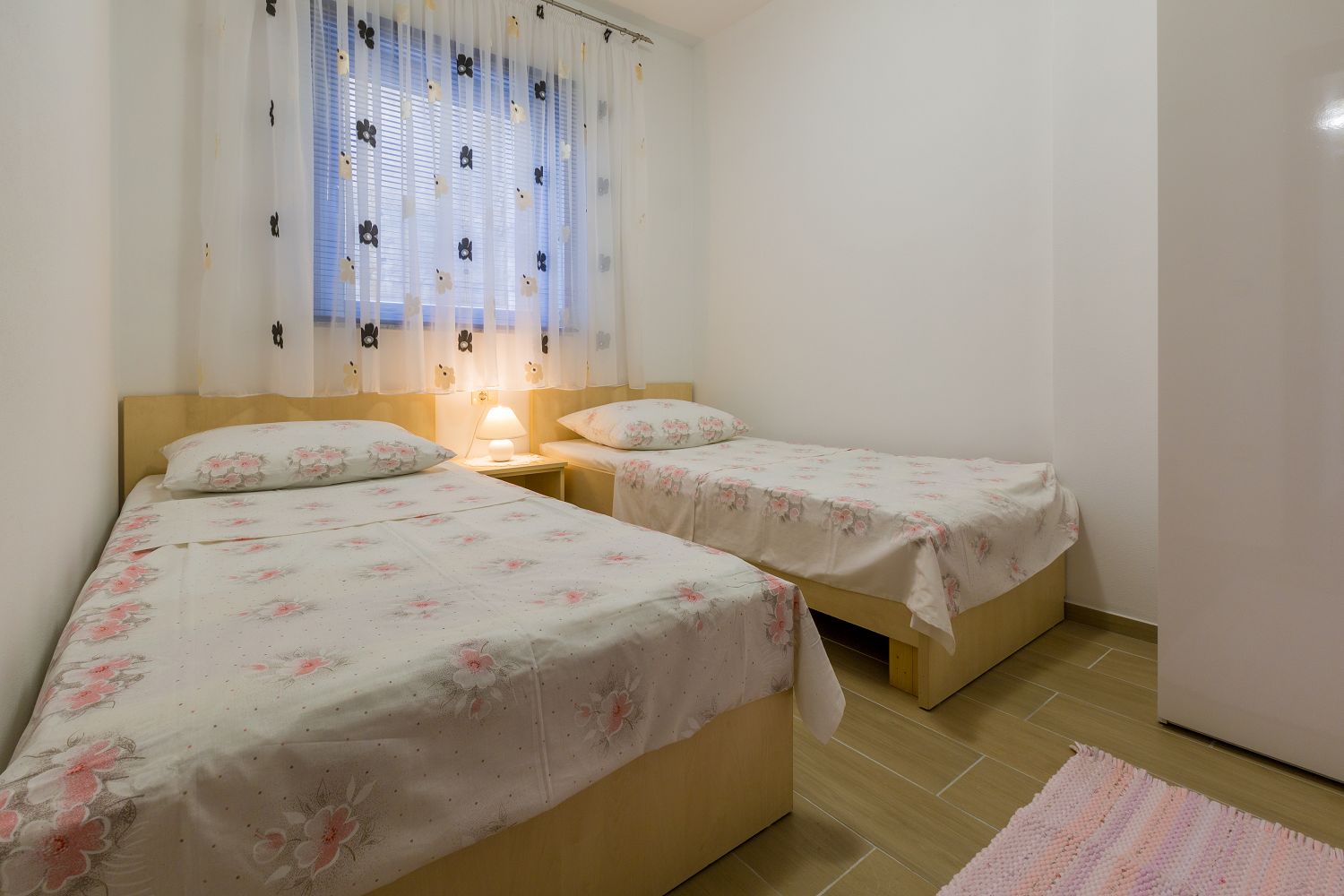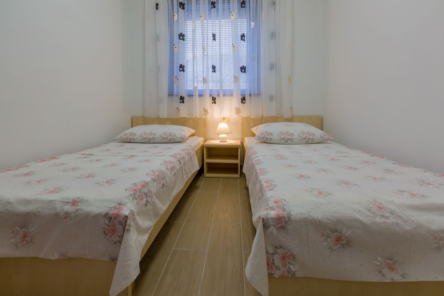 Diese schöne Ferienwohnung für vier Personen befindet sich in einer angenehmen Lage, nur einige Gehminuten von den Stränden und vom Zentrum entfernt. Sie besteht aus einem Wohn-/Esszimmer mit Küche, zwei Schlafzimmern, einem Badezimmer und einer Terrasse, die von allen Gästen des Hauses genutzt werden kann. Ein eigener Parkplatz befindet sich auf dem Grundstück des Vermieters gegenüber dem Haus.