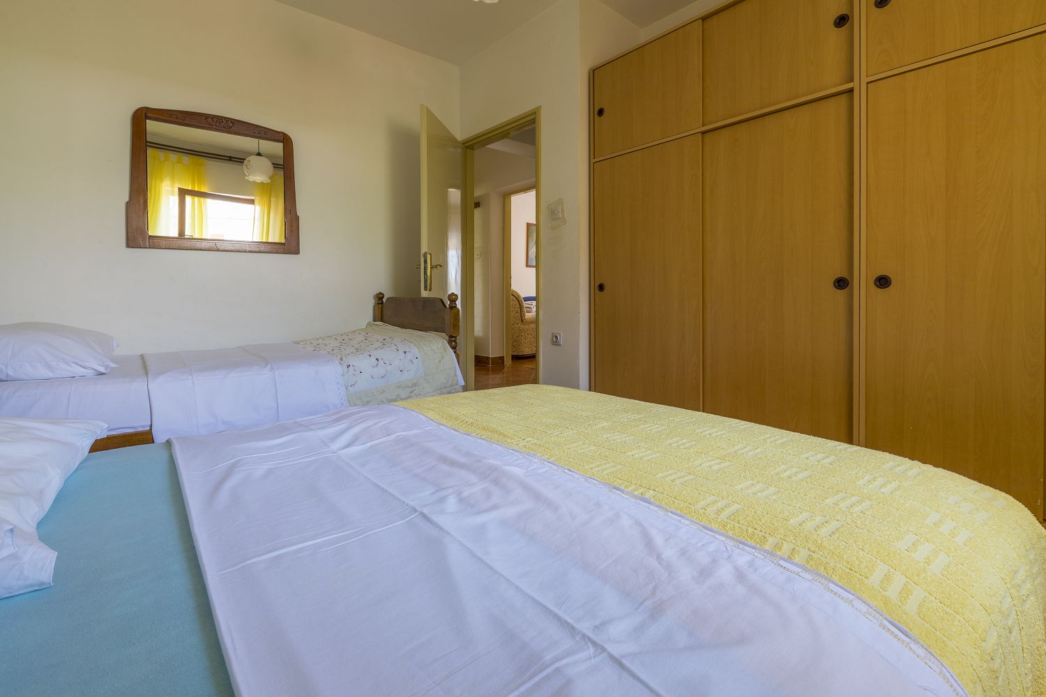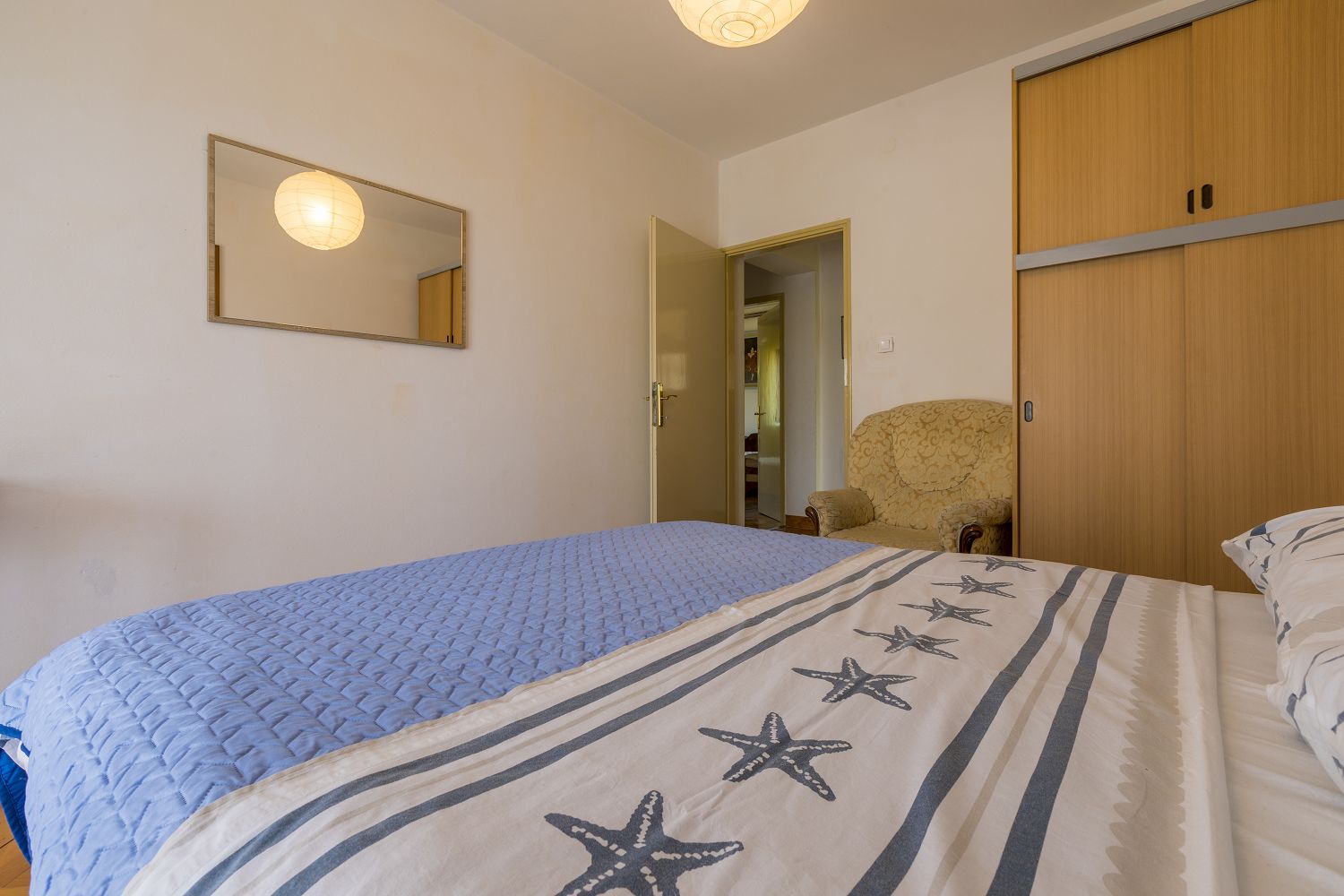 Bis zum Meer sind es nur ca. 200 m und bis zu den nächsten Einkaufsmöglichkeiten und Restaurants nur ca. 400 m. Die Wohnung besteht aus einem Wohnzimmer, einem Esszimmer mit Küche, vier Schlafzimmern, zwei Badezimmern und einer sehr gemütlichen Terrasse. Als Sonnenschutz ist eine Markise vorhanden. Das Apartment ist mit Satellitenfernsehen und WLAN ausgestattet. Eine Waschmaschine kann nach Rücksprache mit dem Eigentümer gegen Gebühr genutzt werden.
