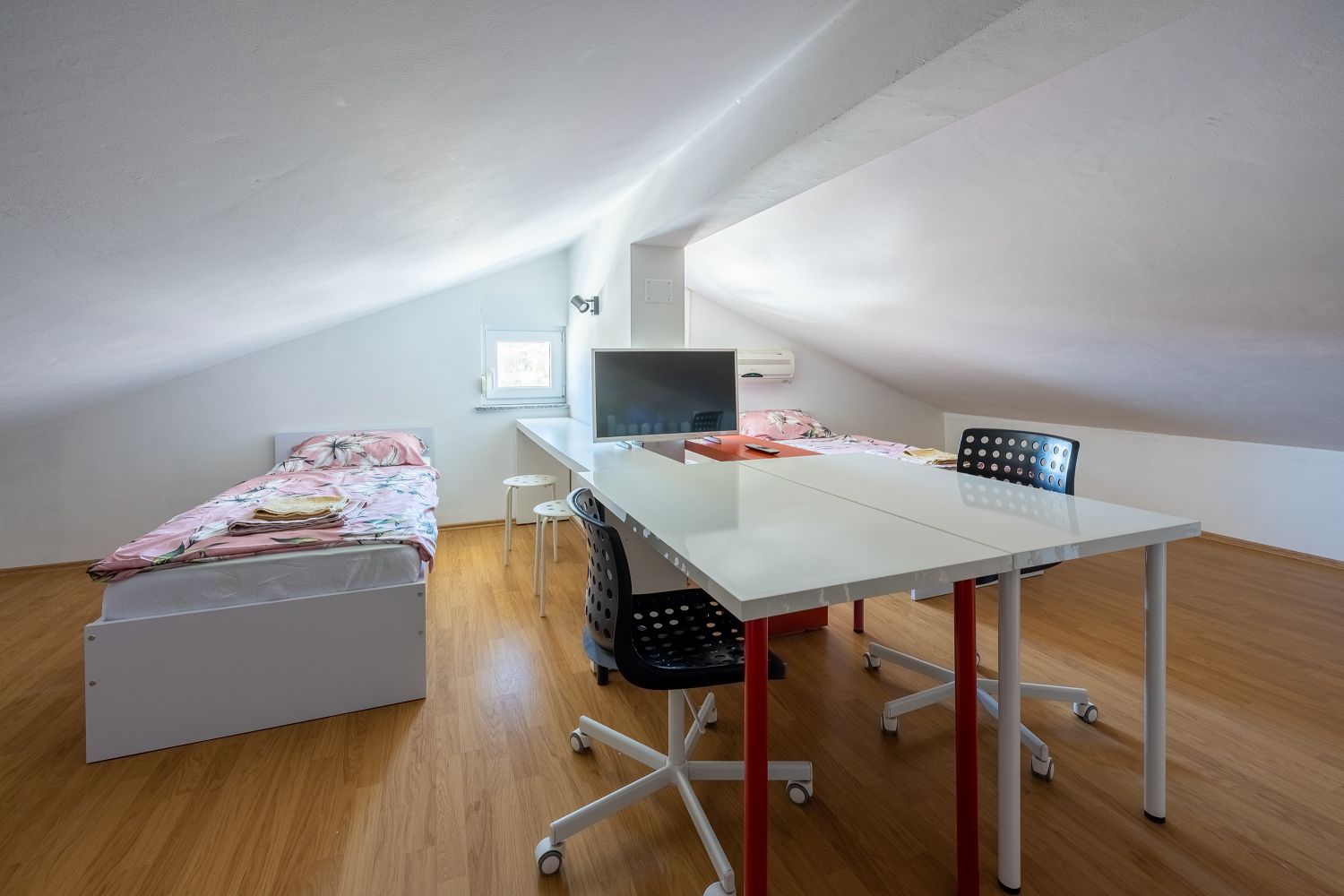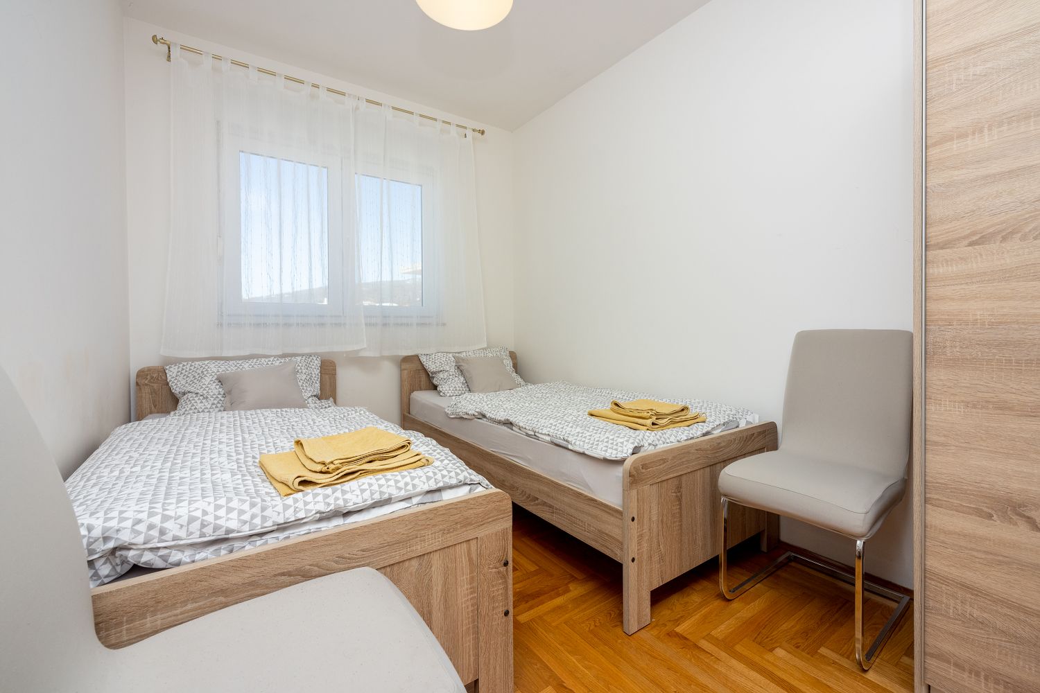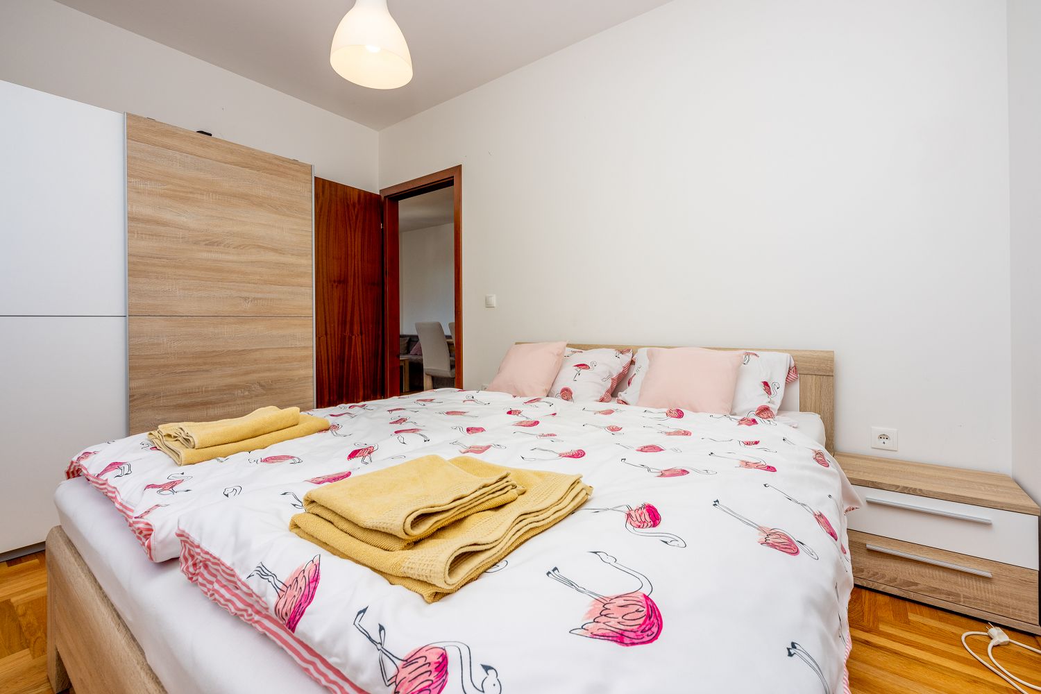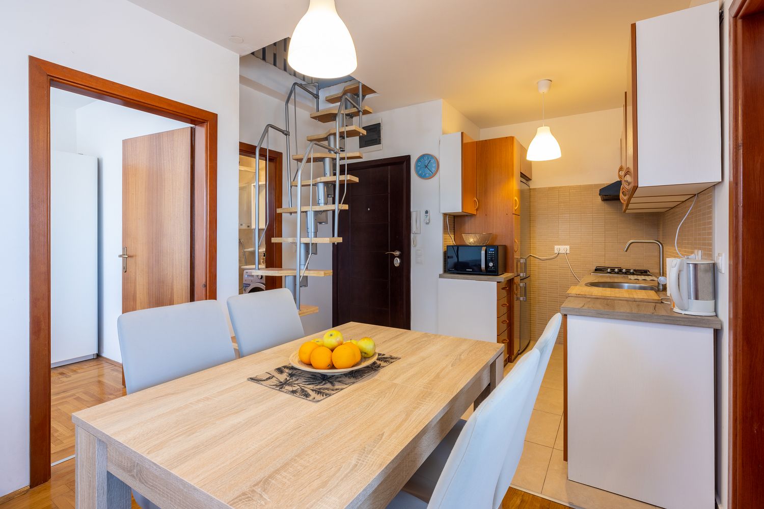 Diese Ferienwohnung liegt in einer ruhigen Wohnsiedlung oberhalb des Zentrums von Jadranovo. Sie besteht aus einer Wohnküche mit Essbereich, zwei Schlafzimmern und einem Badezimmer. Vom Objekt bis zum Strand sind es 720 Meter und die Entfernung zum Zentrum beträgt 300 Meter. Das nächstgelegenste Lebensmittelgeschäft befindet sich 300 Meter von der Ferienimmobilie entfernt. In 300 Metern ist das umliegende Restaurant zu erreichen.