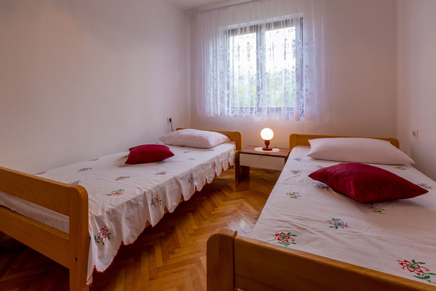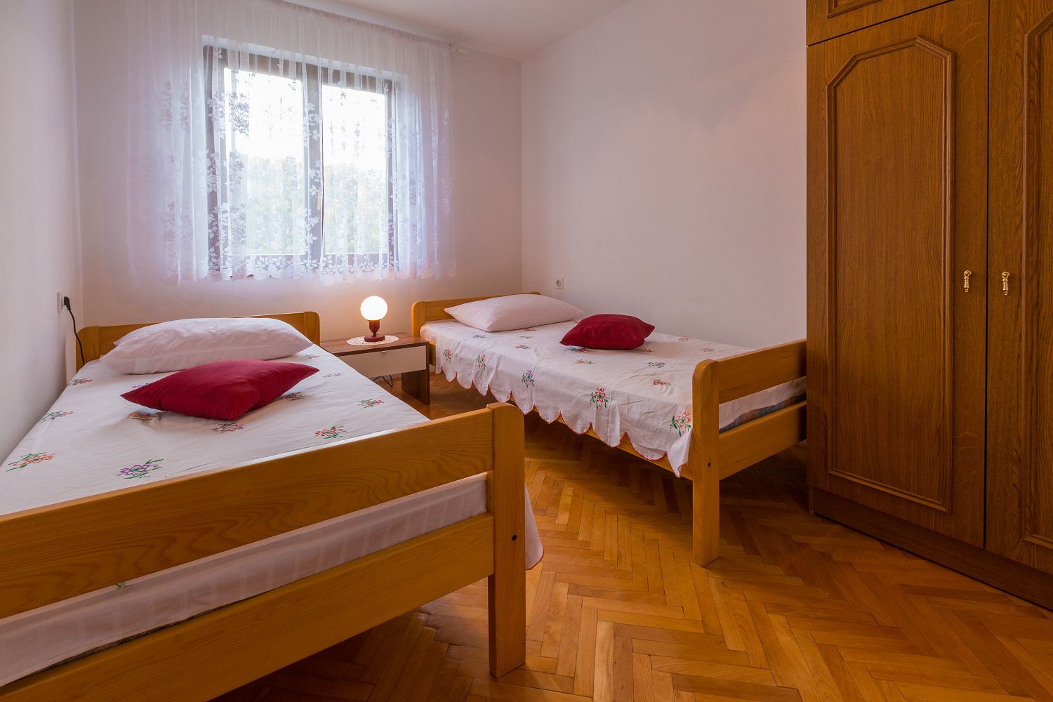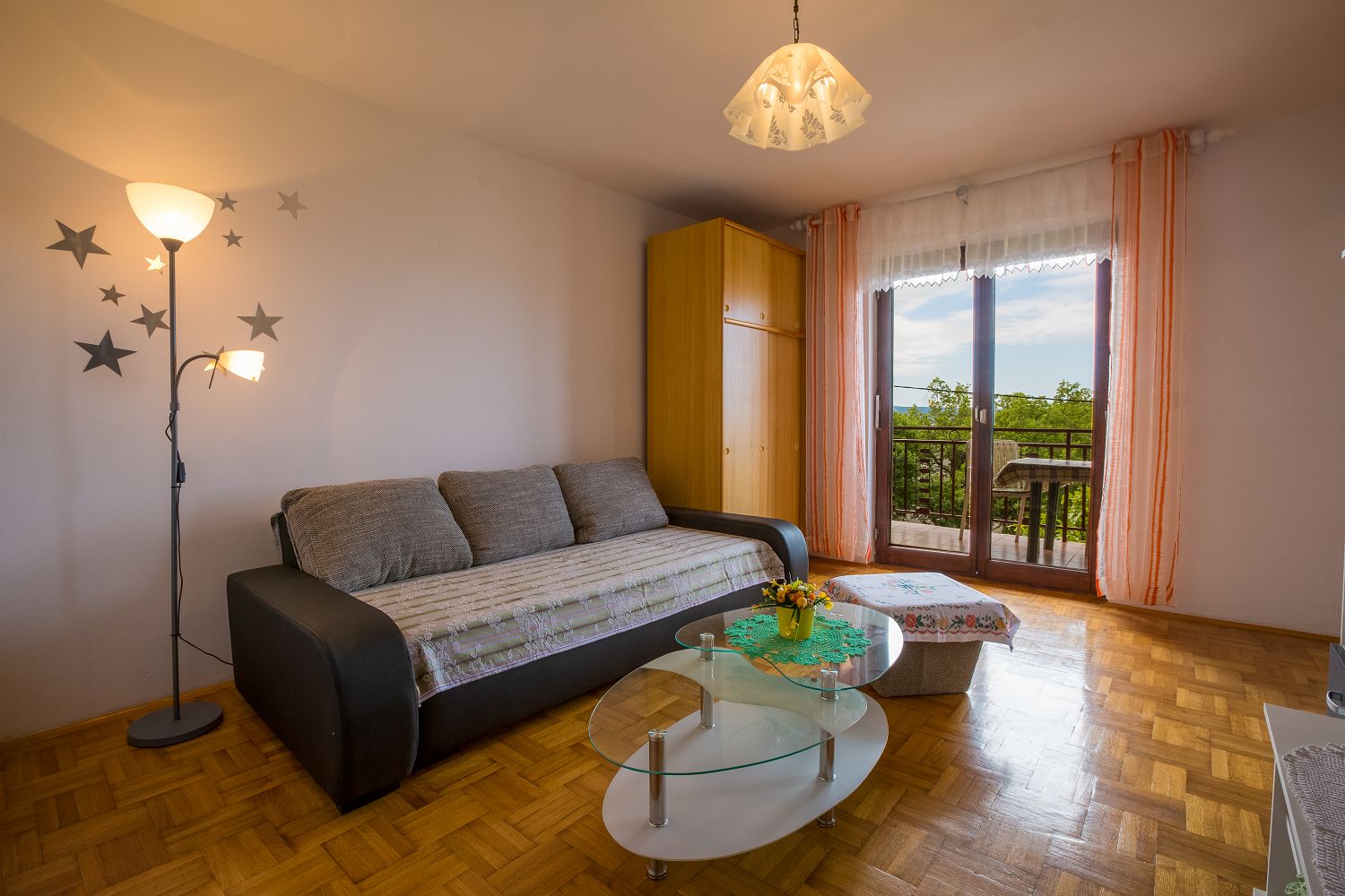 Die geräumige Ferienwohnung für vier bis sechs Personen befindet sich in Jadranovo an der Riviera von Crikvenica. Die 56 m² große Unterkunft im ersten Stock teilt sich in zwei Schlafzimmer, ein Badezimmer sowie einen Wohn- und Essbereich mit Küche auf. Im Wohnbereich bietet eine Schlafcouch Platz für zwei Personen. Der 5 m² große Balkon, der mit einem Tisch und Stühlen ausgestattet ist, lädt zum gemeinsamen Verweilen ein und bietet einen herrlichen Blick über Jadranovo hinweg auf das Meer und die Insel Krk. Das Apartment ist mit WLAN und einer Klimaanlage (gegen Gebühr) ausgestattet. Im Garten, den Sie mitbenutzen dürfen, steht ein Elektrogrill zur Verfügung.