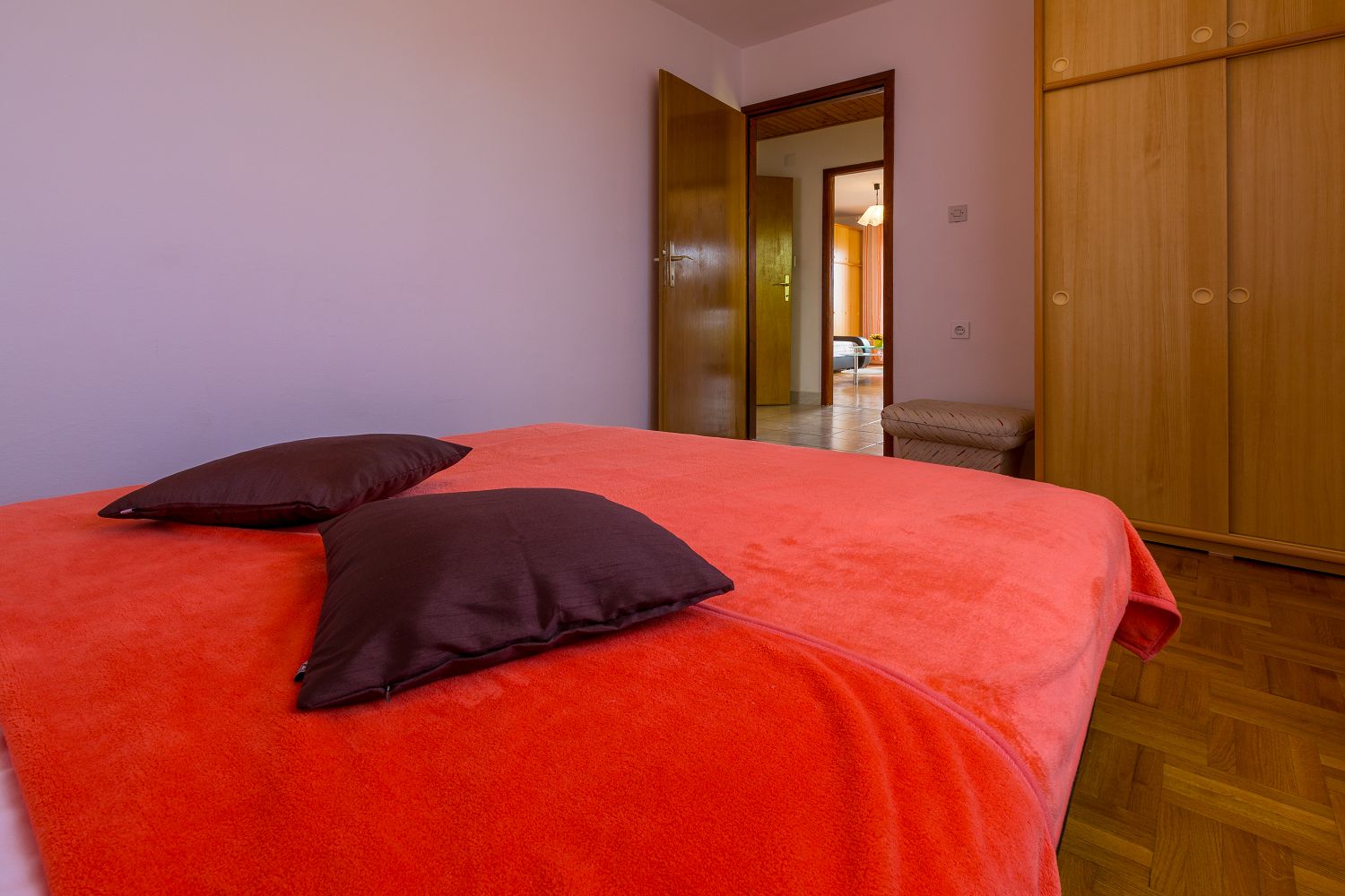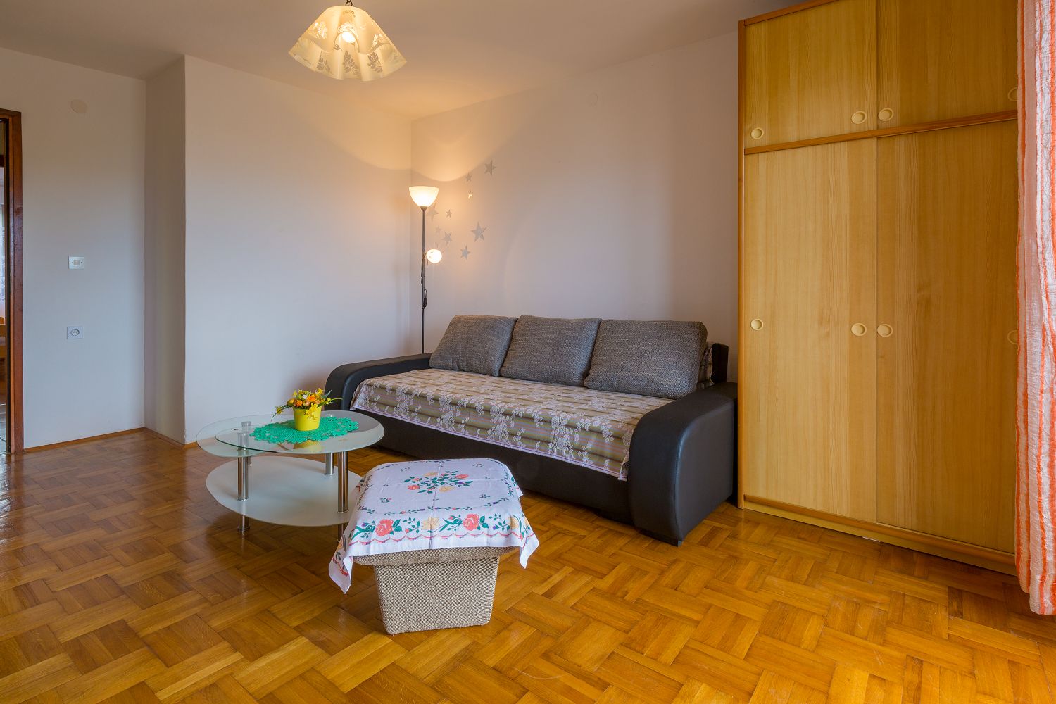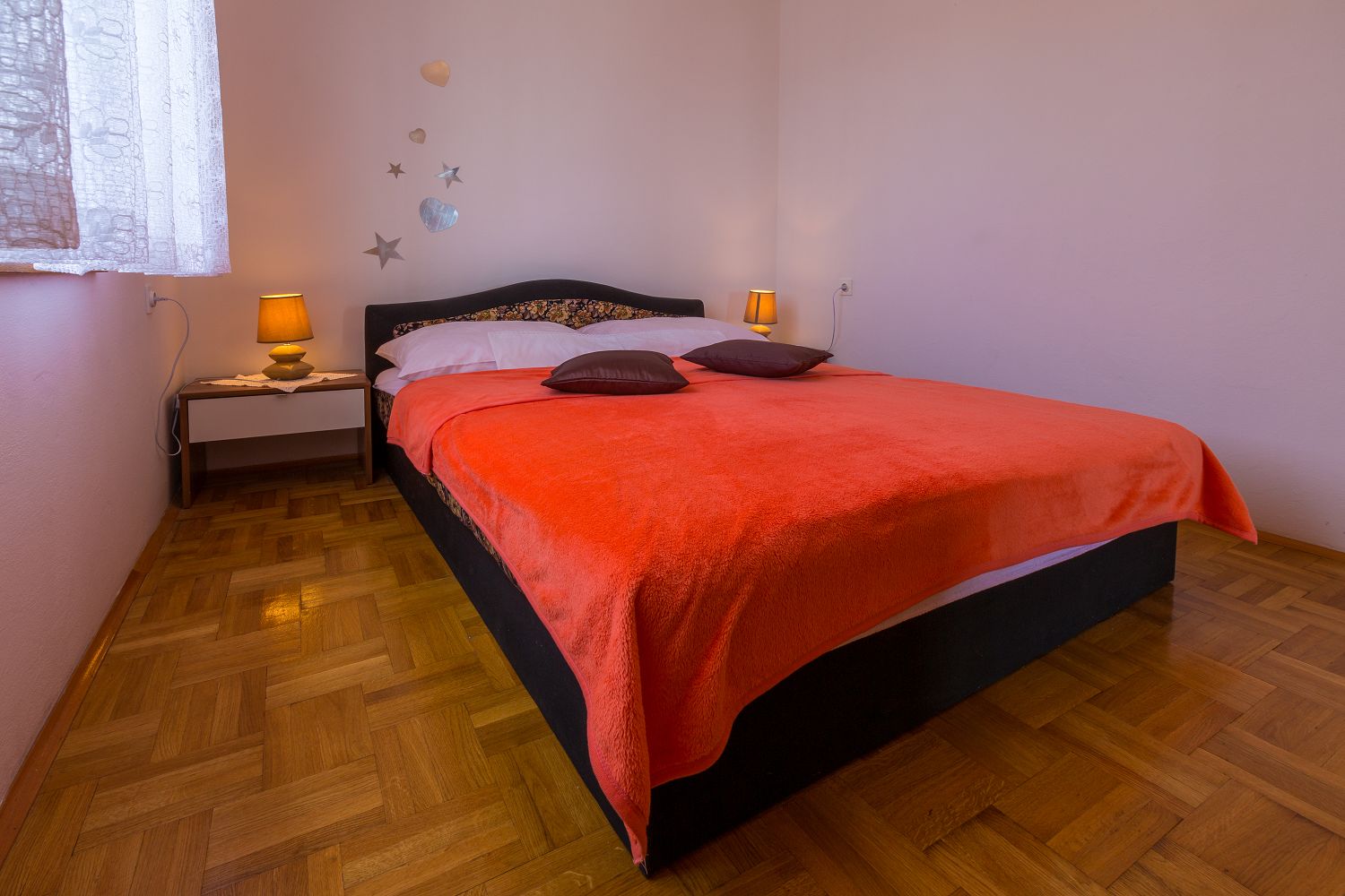 Die geräumige Ferienwohnung für vier bis sechs Personen befindet sich in Jadranovo an der Riviera von Crikvenica. Die 56 m² große Unterkunft im ersten Stock teilt sich in zwei Schlafzimmer, ein Badezimmer sowie einen Wohn- und Essbereich mit Küche auf. Im Wohnbereich bietet eine Schlafcouch Platz für zwei Personen. Der 5 m² große Balkon, der mit einem Tisch und Stühlen ausgestattet ist, lädt zum gemeinsamen Verweilen ein und bietet einen herrlichen Blick über Jadranovo hinweg auf das Meer und die Insel Krk. Das Apartment ist mit WLAN und einer Klimaanlage (gegen Gebühr) ausgestattet. Im Garten, den Sie mitbenutzen dürfen, steht ein Elektrogrill zur Verfügung.