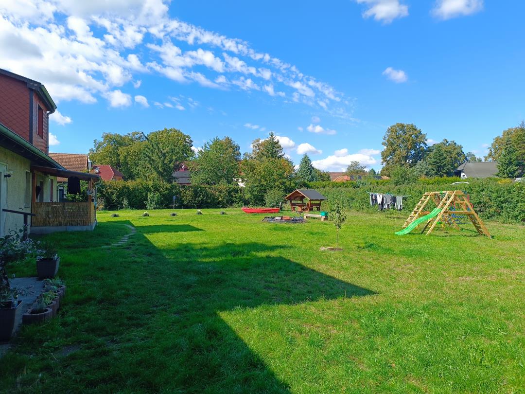 Frisch renovierte 3-Zimmerwohnung in einem Mehrfamilienhaus (Hochparterre) für 7 Personen. Großes Badezimmer, großes Wohnzimmer mit Schlafcouch und einem großen 75 Zoll- TV. 2 Schlafzimmer, vollausgestattete Küche, Essecke und Garderobe. Mehrere Sitzmöglichkeiten auf dem Grundstück. Perfekt für Familien sowie Kinder – da Spielgeräte auf dem Grundstück vorhanden. Die Bettwäsche und Handtücher sind im Mietpreis enthalten.