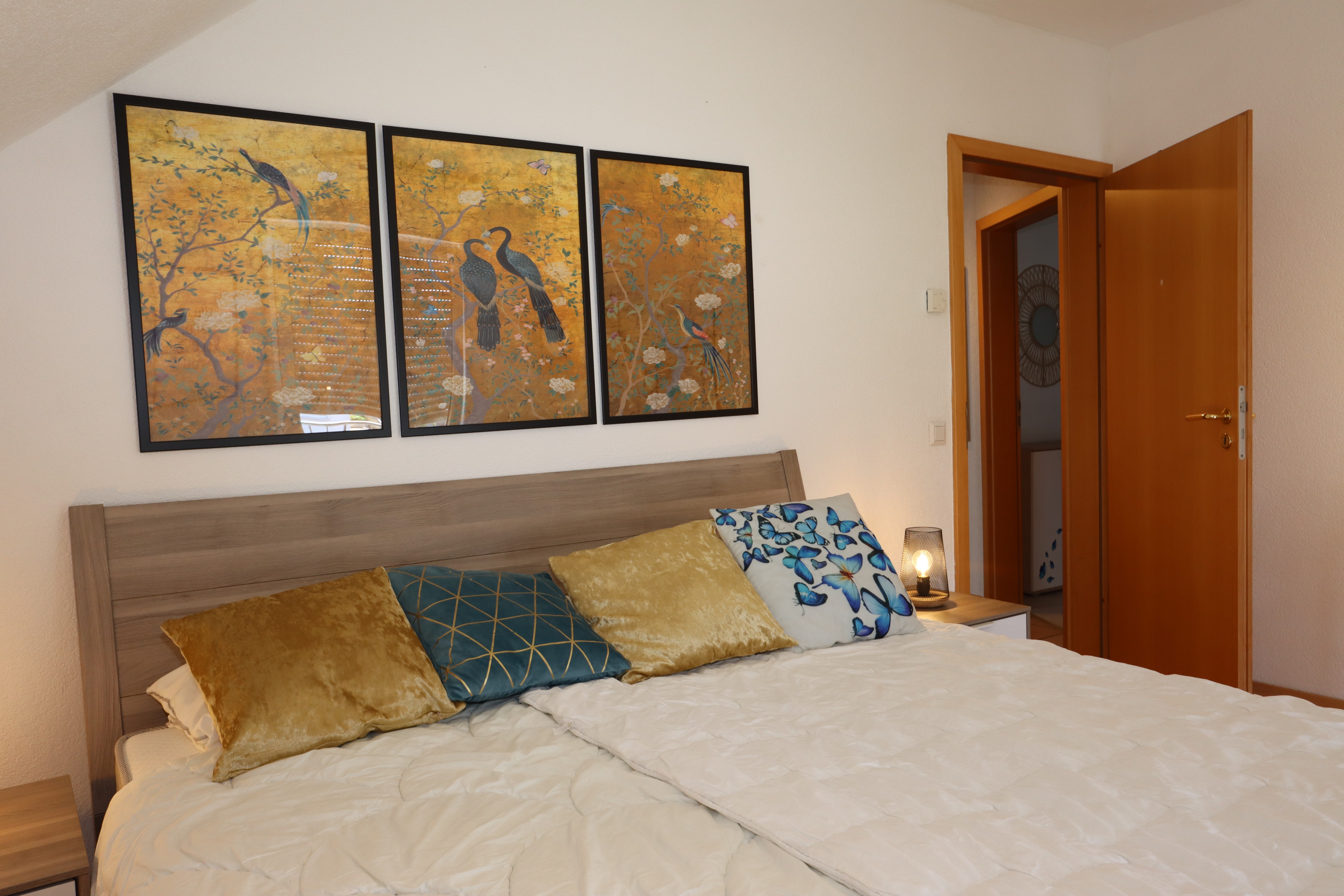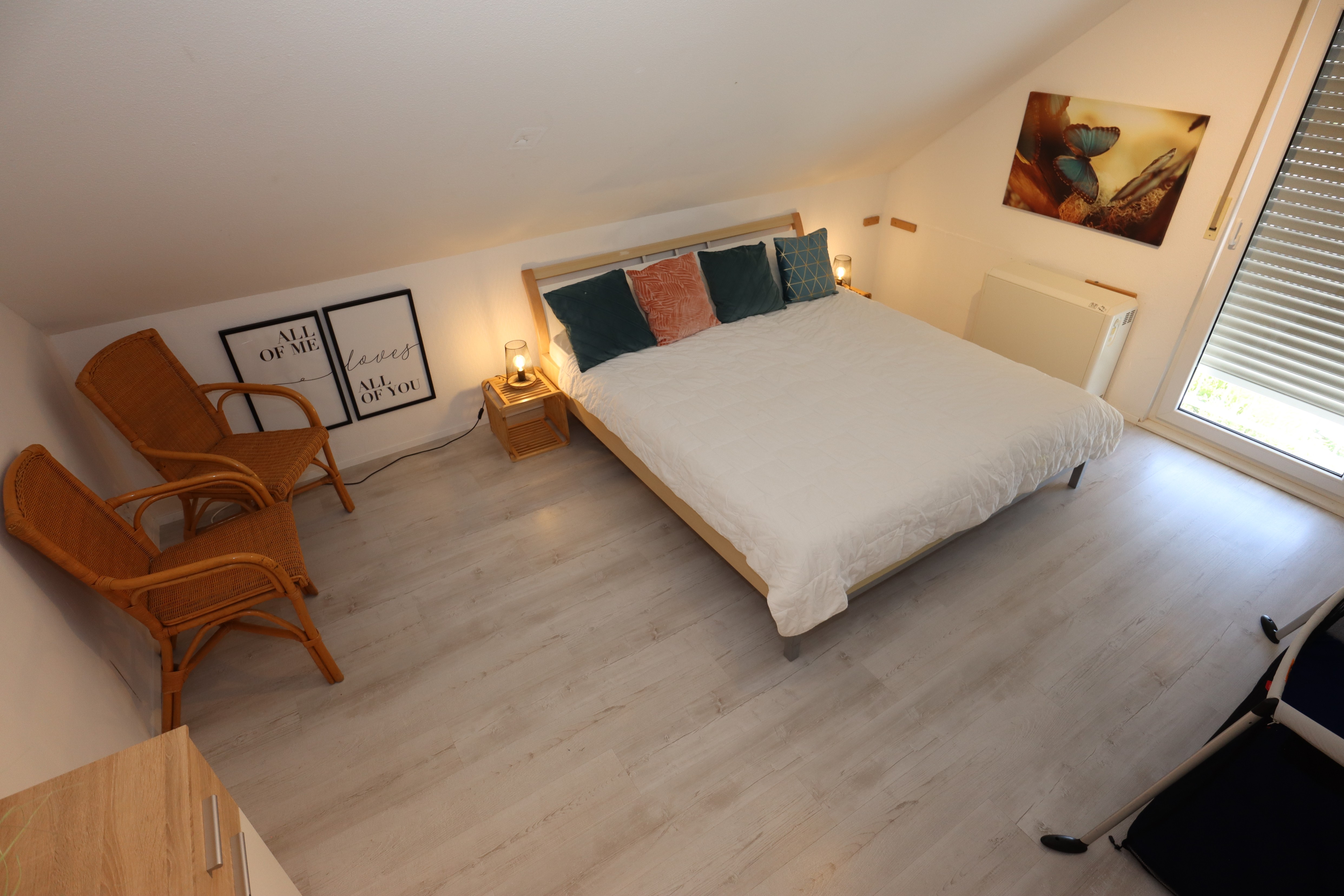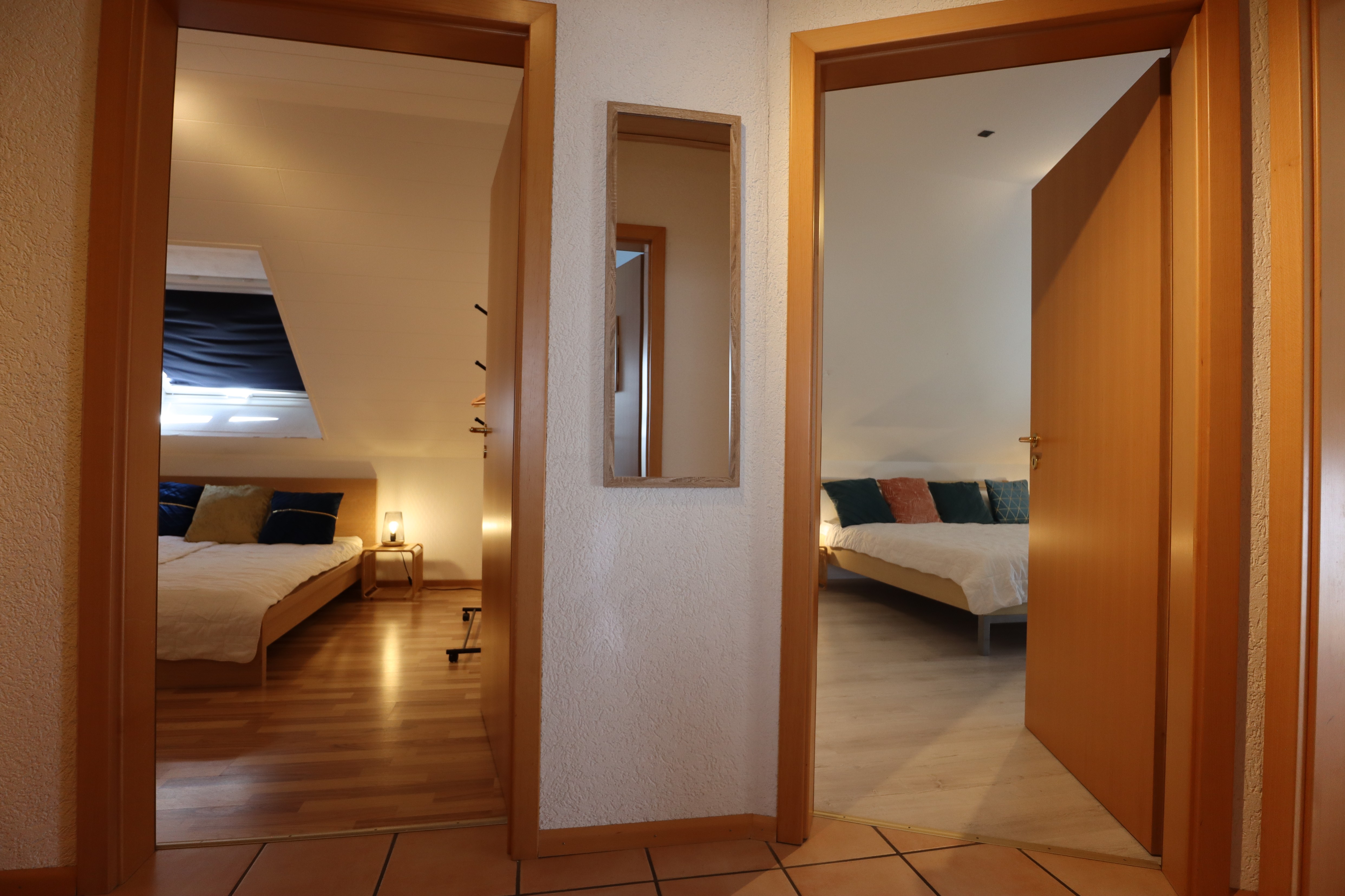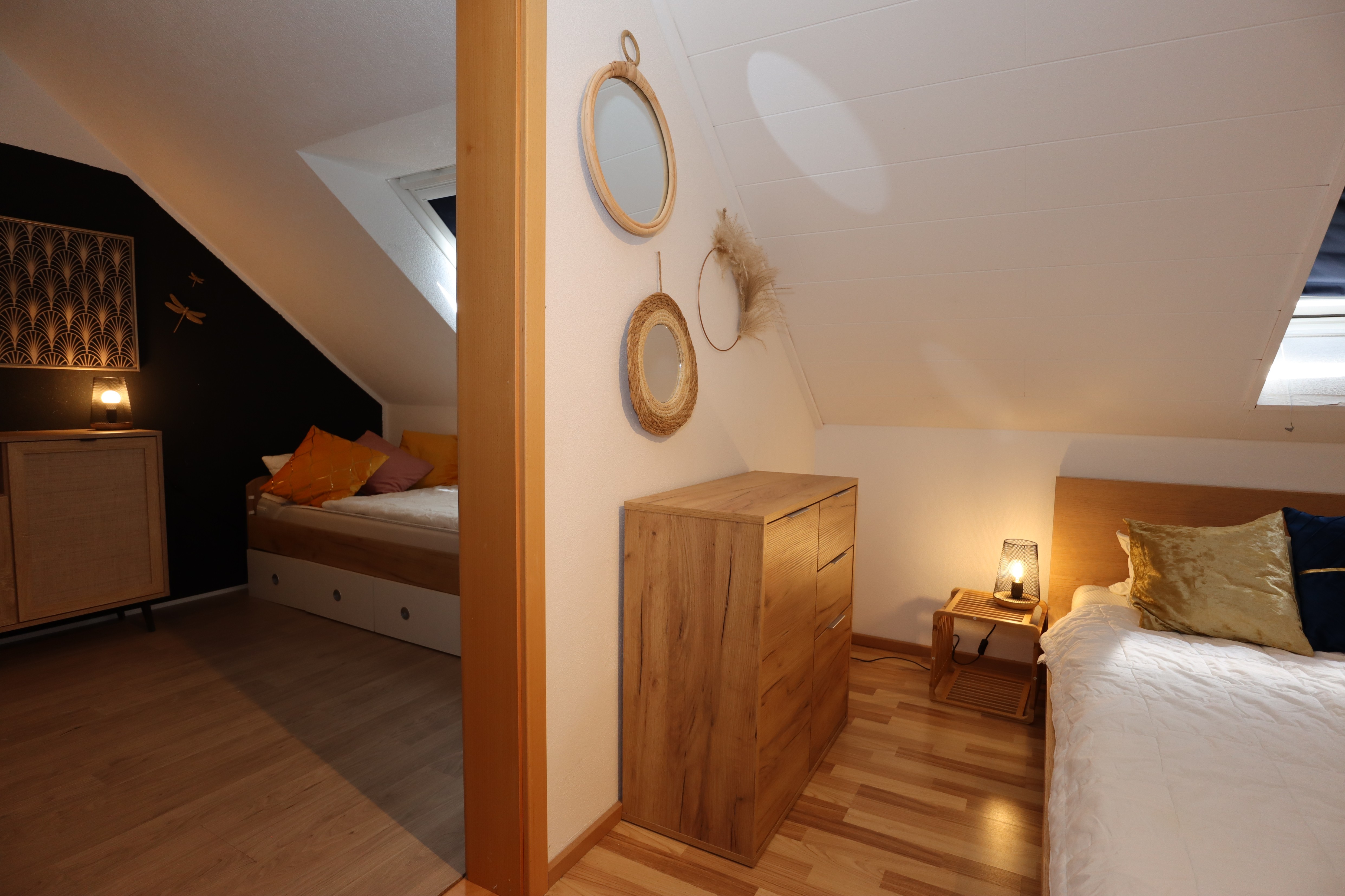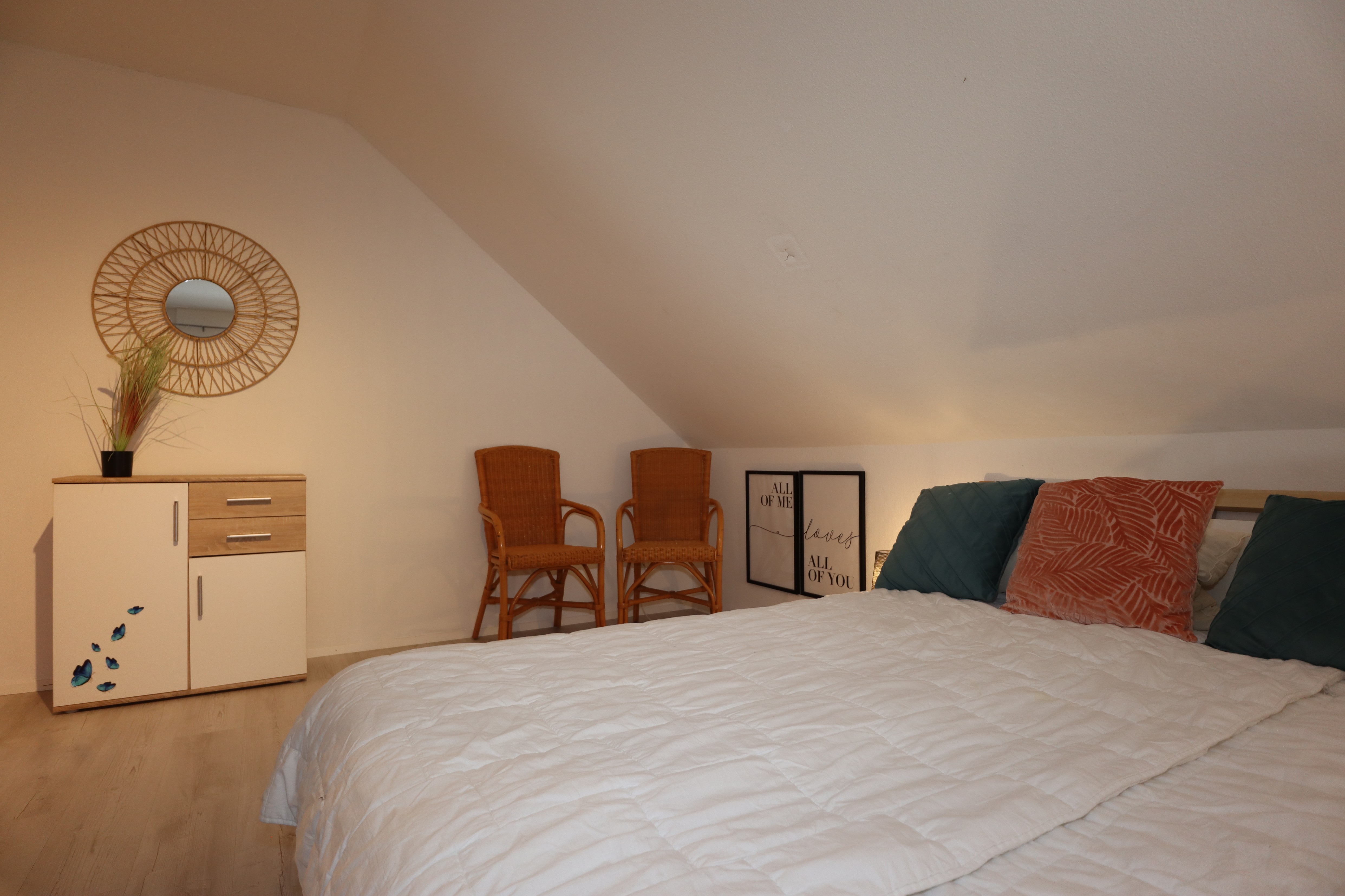 Unsere stilvoll eingerichtete Wohnung bietet Platz für bis zu 8 Personen und sorgt mit einem modernen Badezimmer und einem zusätzlichen Gäste-WC für besonderen Komfort, auch bei größeren Gruppen. Drei gemütliche Schlafzimmer mit Doppelbetten laden zum Träumen ein, wobei eines der Schlafzimmer mit einem zusätzlichen Raum verbunden ist, in dem sich ein Einzelbett befindet – ideal für Familien mit Kindern. Im einladenden Wohnzimmer finden Sie ein weiteres Schlafsofa, das zusätzlichen Platz für Entspannung und erholsame Nächte bietet.