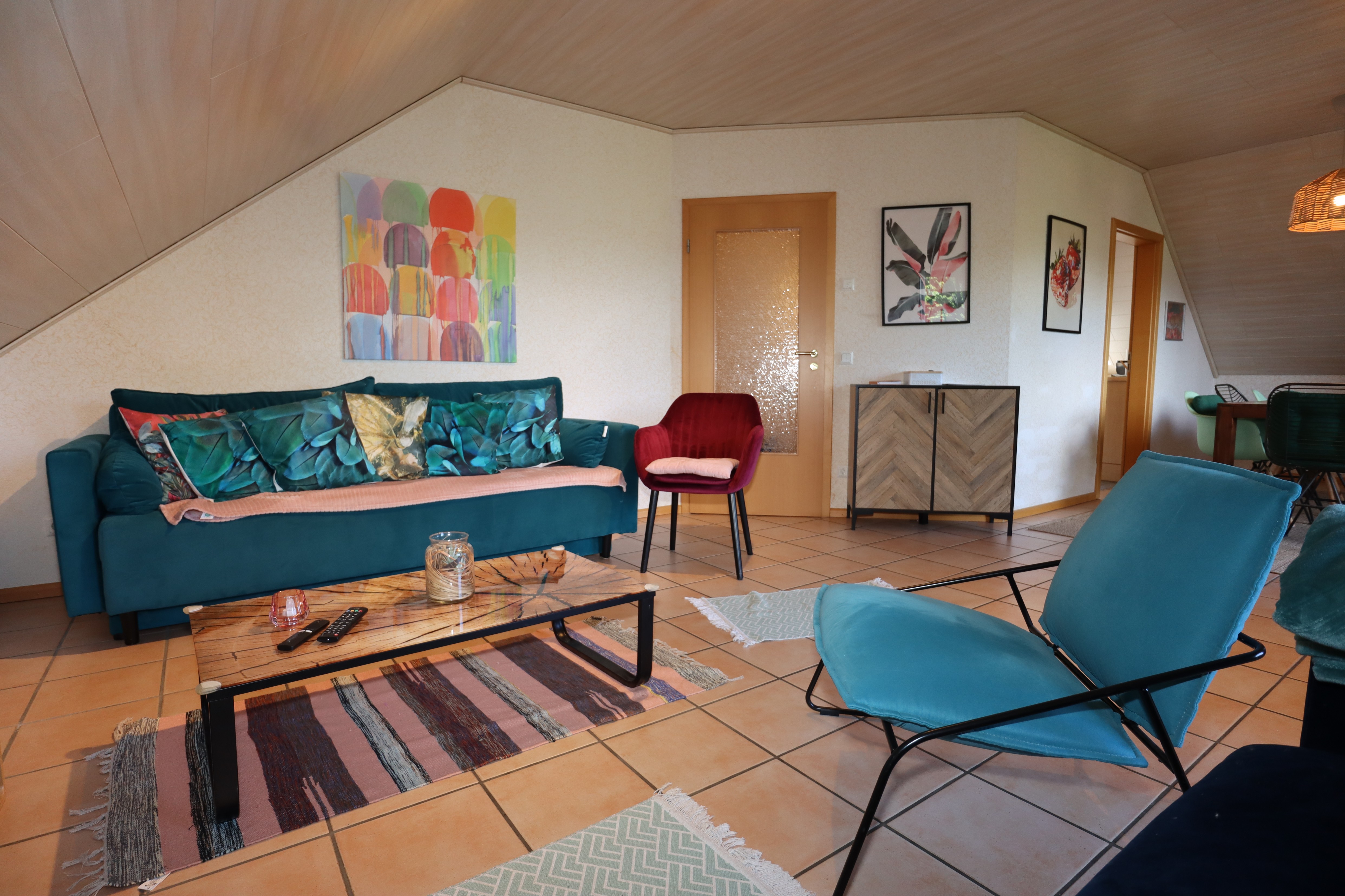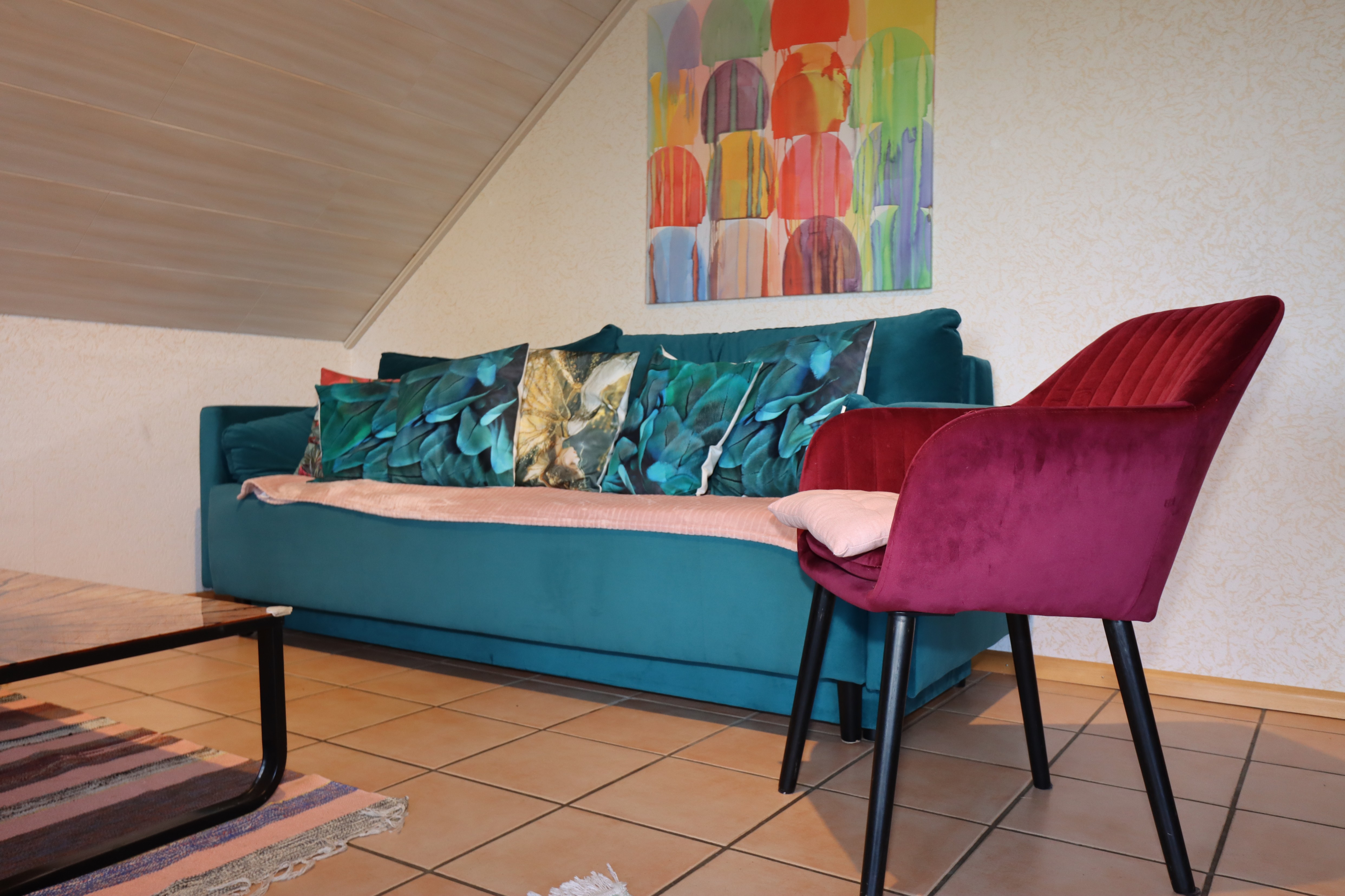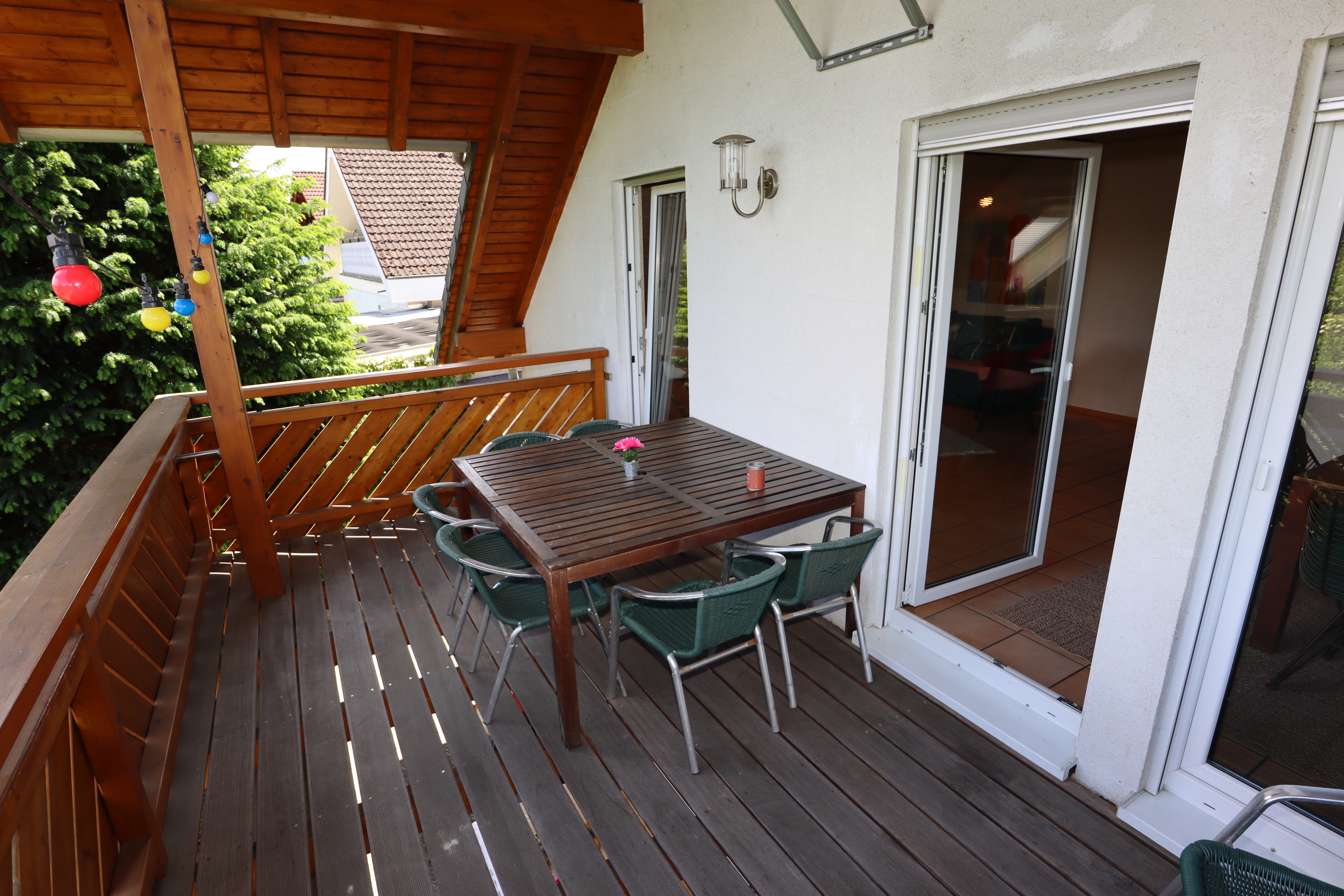 Die Ferienwohnung befindet sich im ersten Stock eines ruhigen Hauses und begeistert mit einem großzügigen Balkon, der dazu einlädt, den Tag mit einer Tasse Kaffee in der Morgensonne zu beginnen oder die lauen Abende bei einem Glas Wein ausklingen zu lassen. Die beschauliche Atmosphäre des Dorfes verspricht Ihnen erholsame Stunden fernab von Hektik und Lärm.