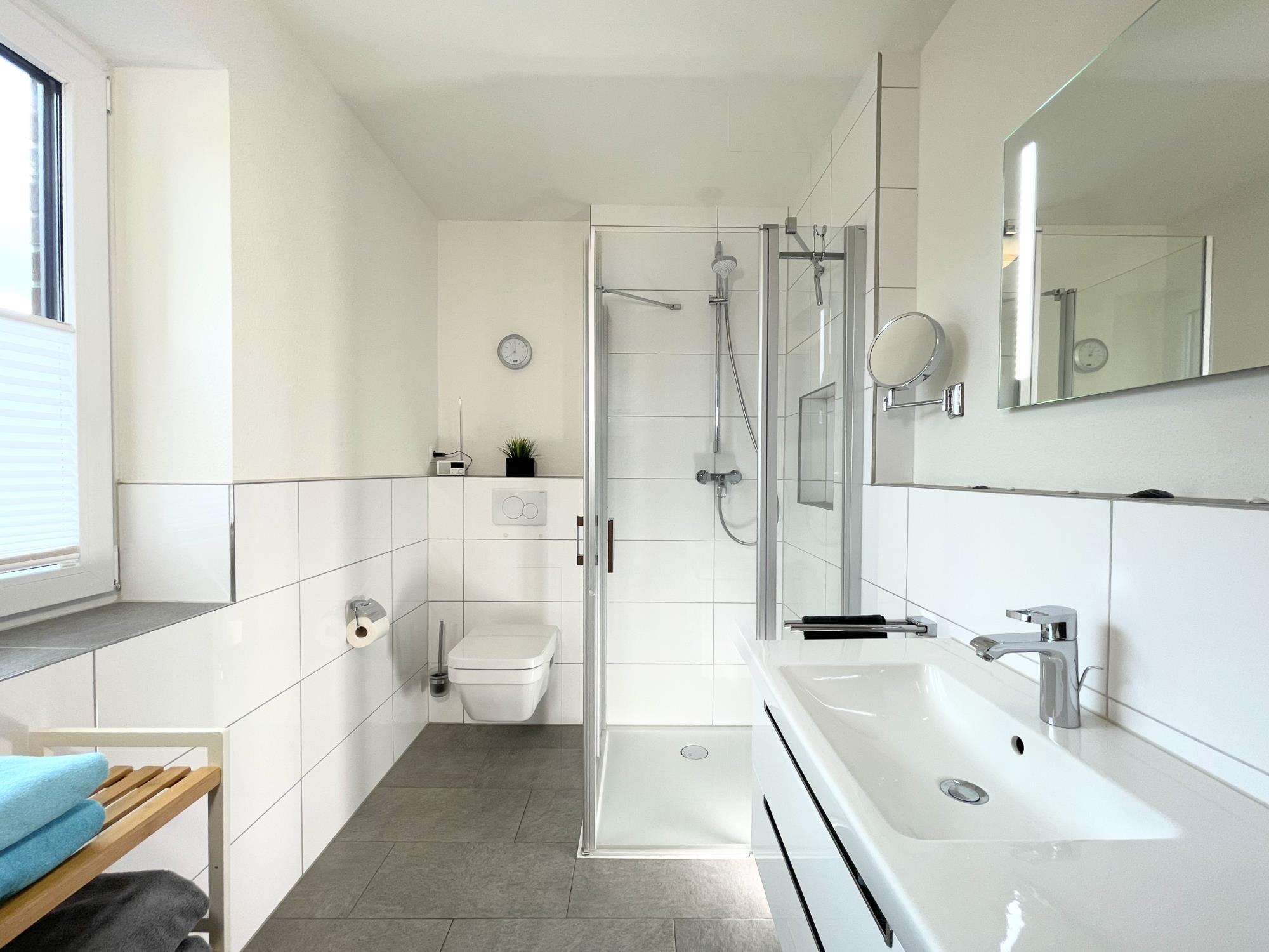Auch an praktische Details haben wir gedacht: Eine Waschmaschine steht Ihnen ebenso zur Verfügung, wie ein abschließbarer Außenabstellraum mit Steckdose - ideal für Fahrräder oder E-Bikes. Haustiere sind nicht gestattet, sodass unsere Ferienwohnung auch bestens für Allergiker geeignet ist.