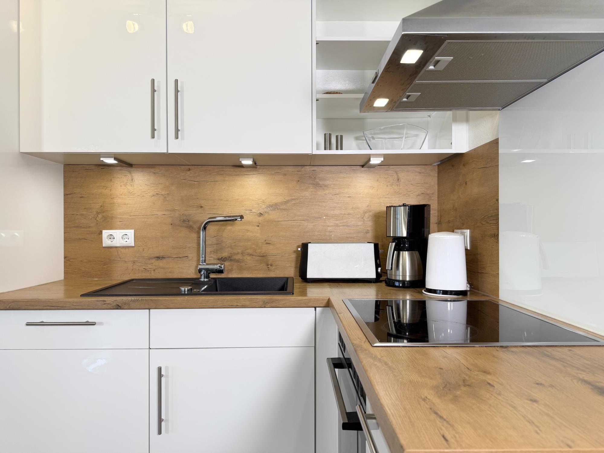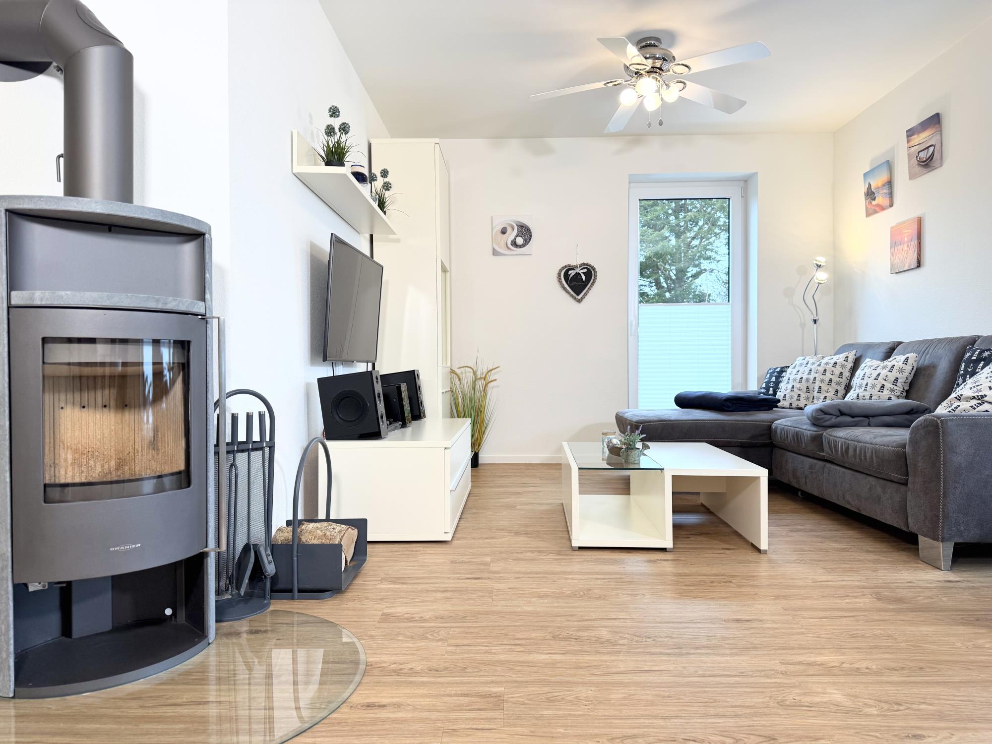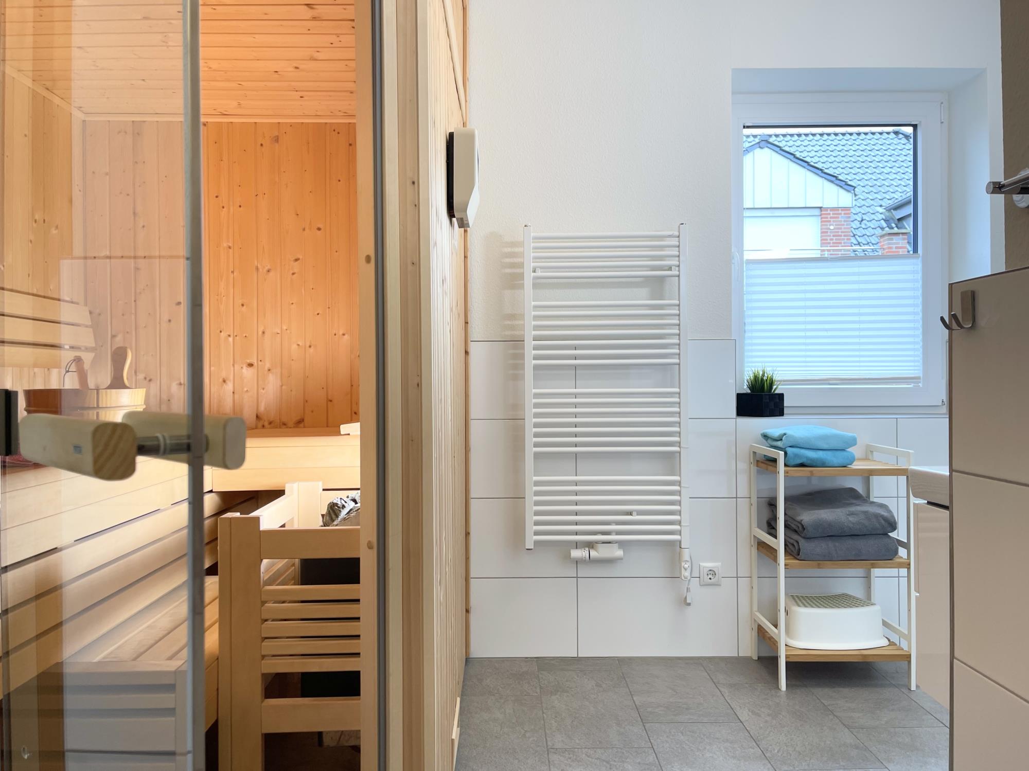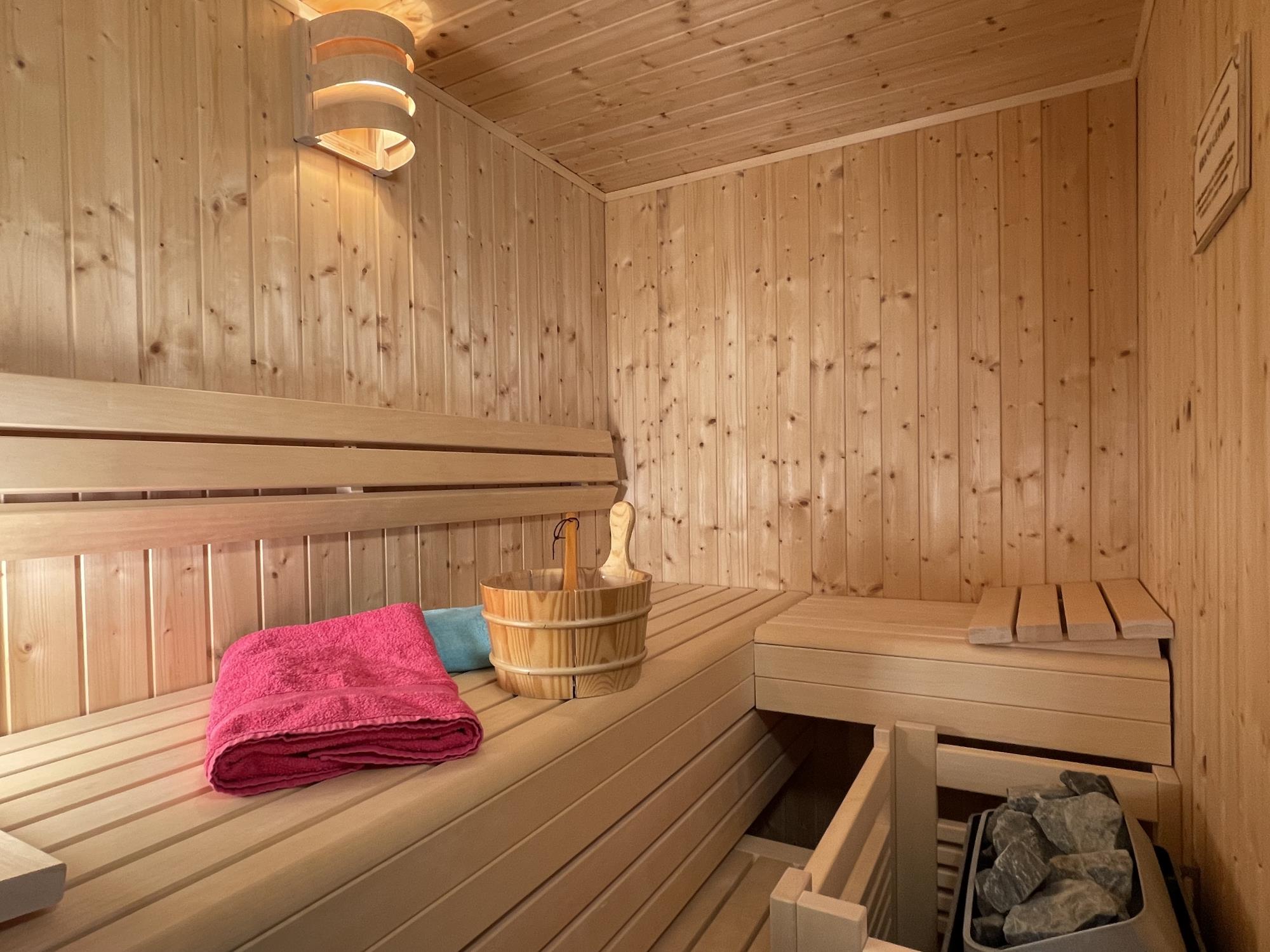 Zu den Highlights der Wohnung gehören die eigene Sauna für entspannte Wellnessmomente und ein gemütlicher Kaminofen, für den wir Ihnen kostenfreies Feuerholz bereitstellen.