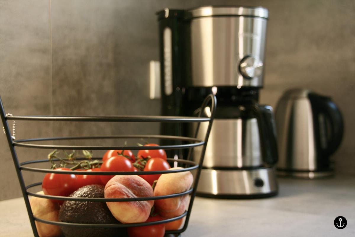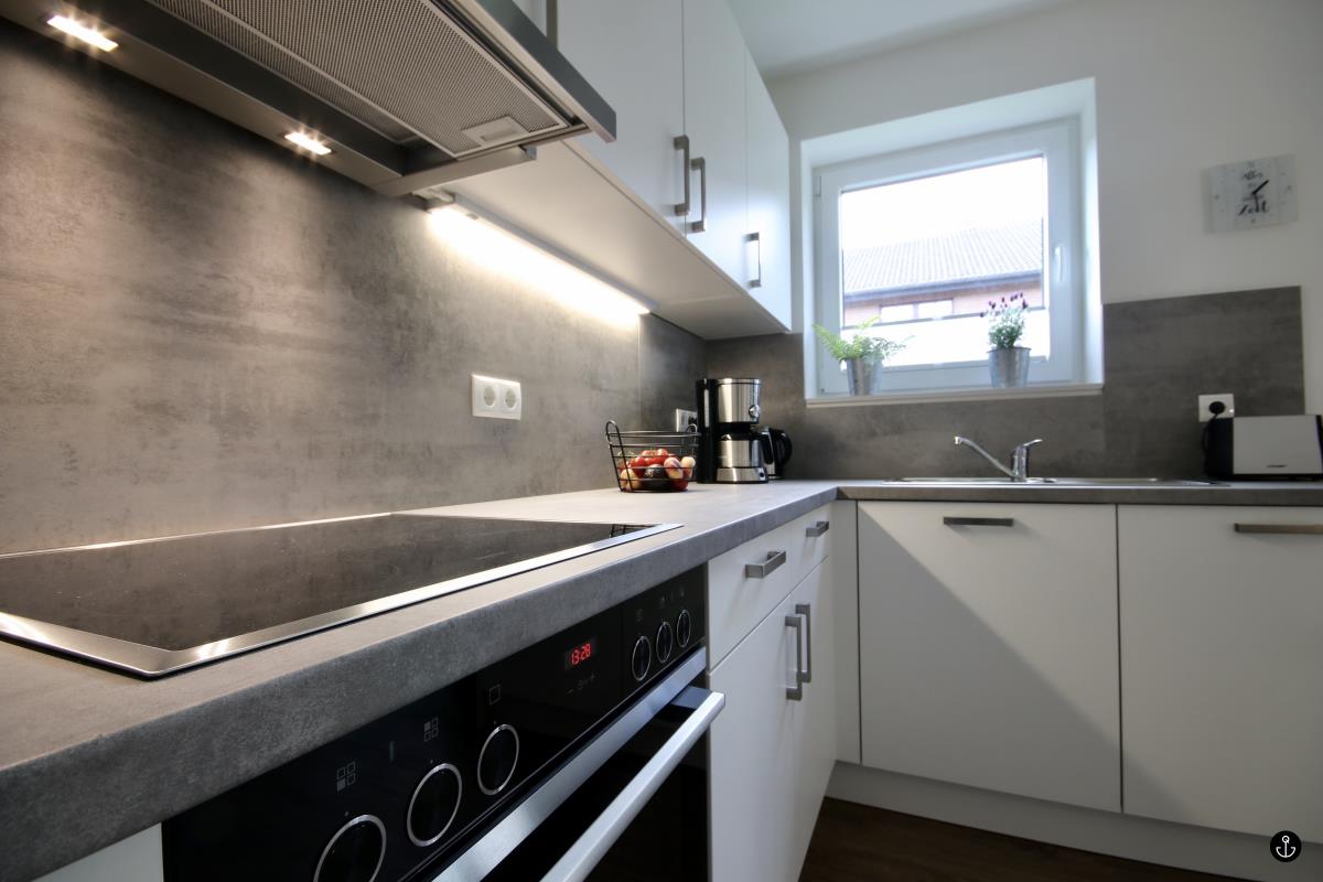 Die voll ausgestattete Küche mit Zugang zur Terrasse bietet eine Wohlfühl-Atmosphäre. Das luxeriöse Boxspringbett und Doppelbett sorgen für erholsamen Schlaf im Feriendomizil.