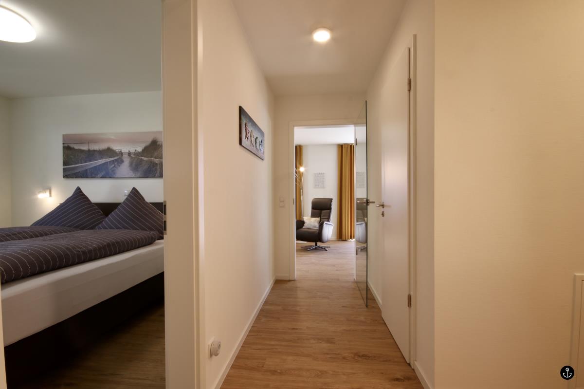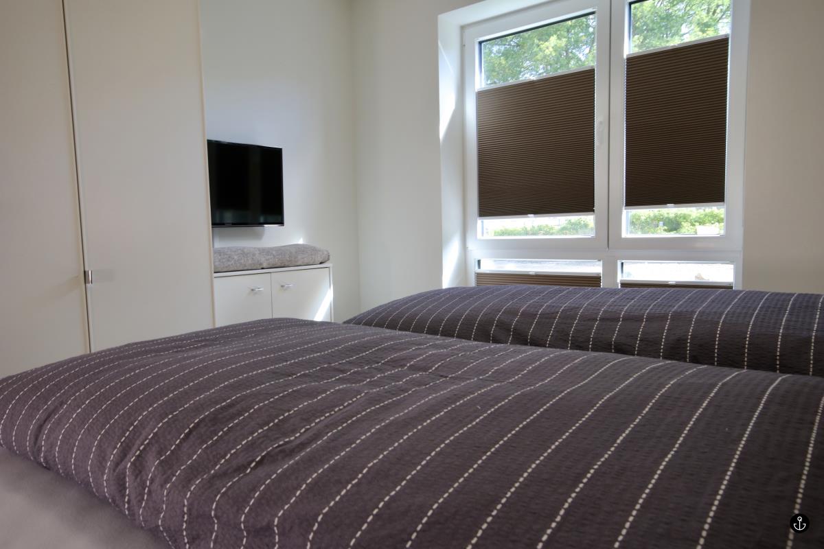 Von der Küche aus habt ihr einen direkten Zugang zur großzügigen und teilweise überdachten Terrasse. Dort könnt ihr in gemütlichen Gartenmöbeln (inkl. Auflagen) frühstücken und den Tag im Strandkorb entspannt genießen. Die Wohnung ist mit zwei Schlafzimmern (1,80 m breite Boxspringbetten sehr guter Qualität sowie jeweils einem Fernseher, Verdunklungsplissees, Insektenschutz) und zwei vollwertigen Bädern inkl. Wellnessdusche ausgestattet. Zudem könnt ihr in der Sauna nach einem Strandtag oder langen Spaziergängen relaxen.