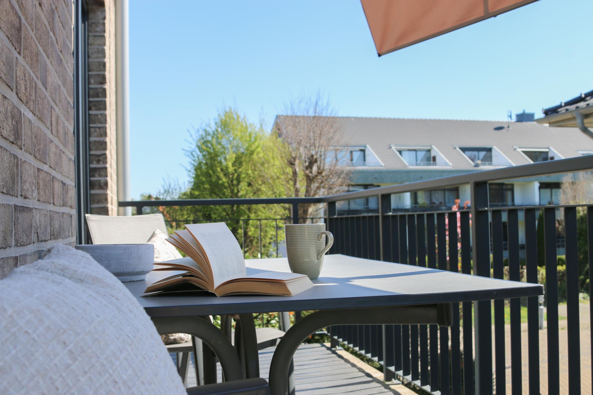 Auf dem Balkon können Sie in gemütlichen Gartenmöbeln frühstücken und schon in den Morgenstunden die Sonne genießen. Abends können Sie dort bei angenehmen Temperaturen ohne pralle Sonne verweilen.