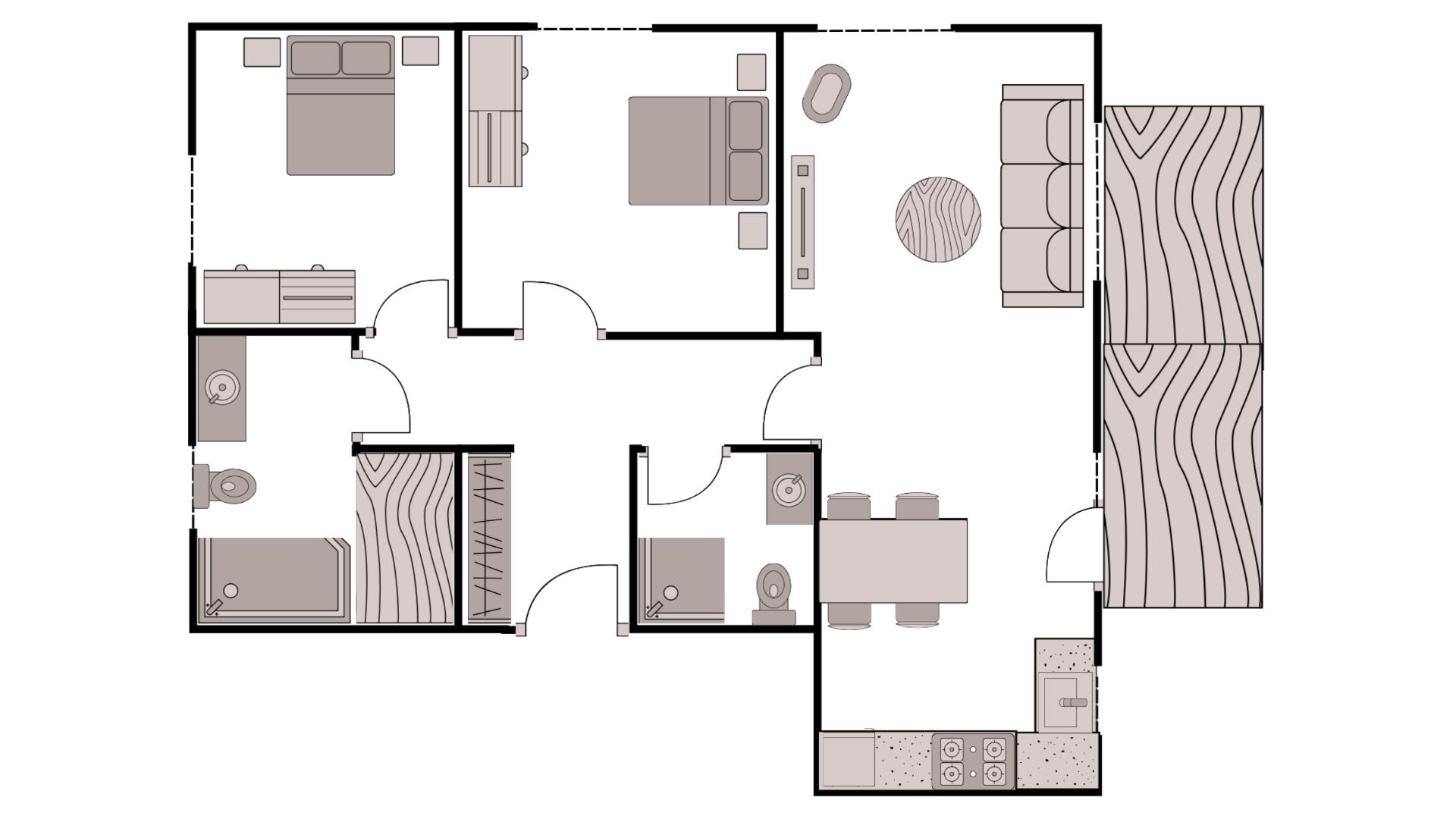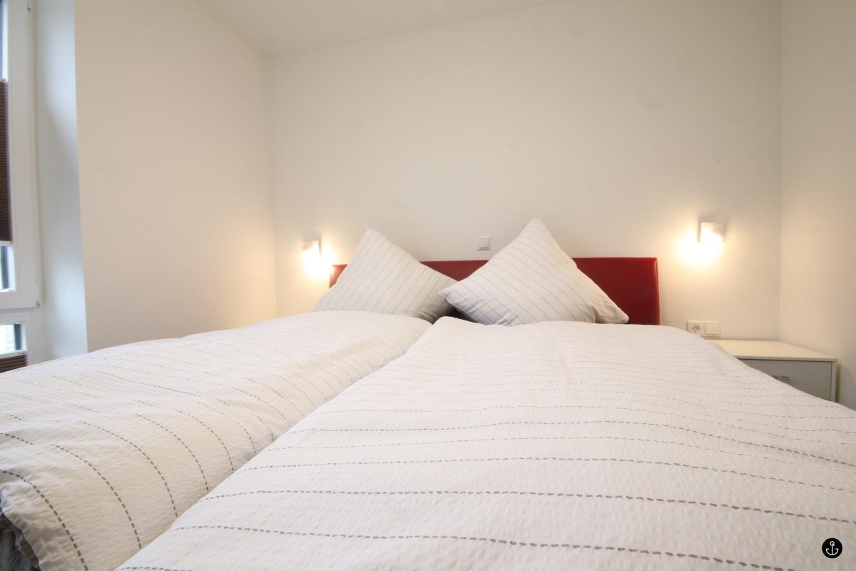 Die Wohnung ist mit zwei Schlafzimmern (Doppel-Boxspringbetten guter Qualität sowie jeweils einem Fernseher) und zwei vollwertigen Bädern mit Sauna und Wellnessdusche ausgestattet.