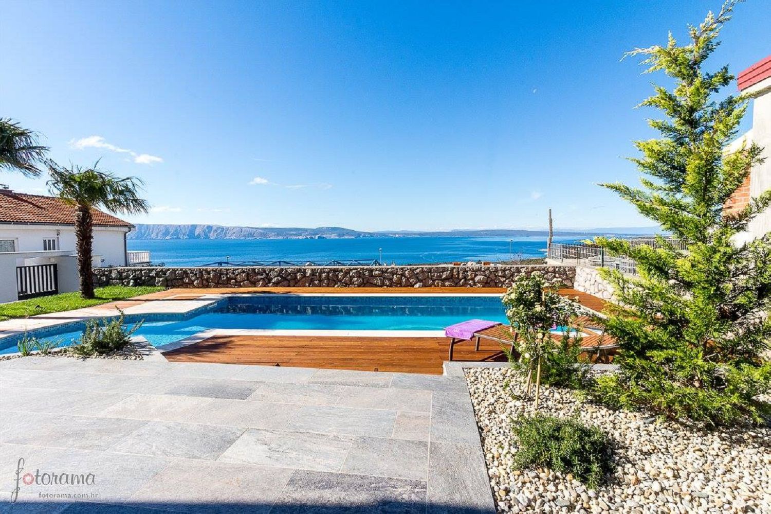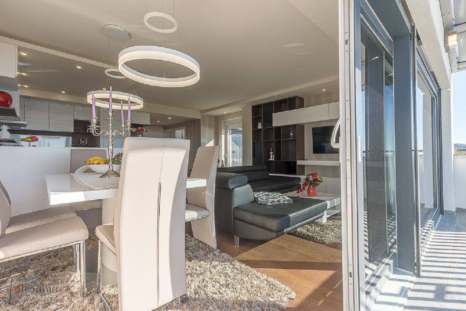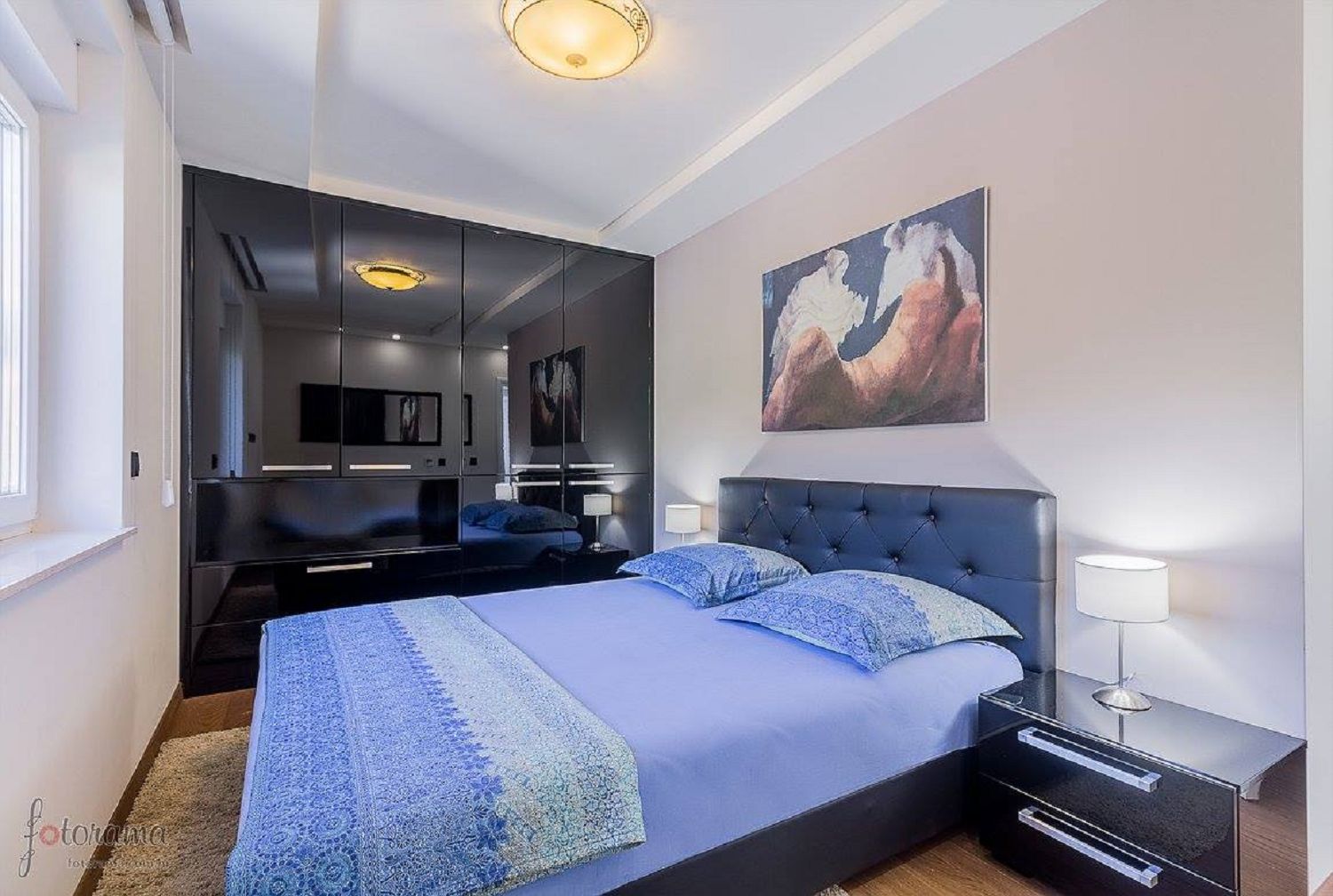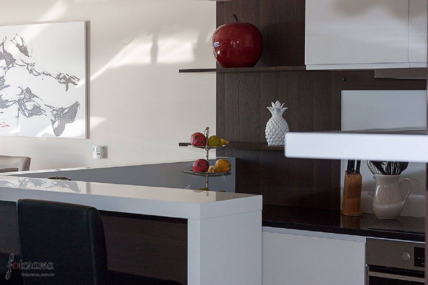 Vom Wohnbereich und einem Schlafzimmer aus hat man Zugang zum möblierten Balkon, der einen traumhaften Meerblick bietet. Im Erdgeschoss können die Gäste den Swimmingpool und die Sonnenliegen frei nutzen. Ein Parkplatz befindet sich in der Garage auf dem Grundstück.
