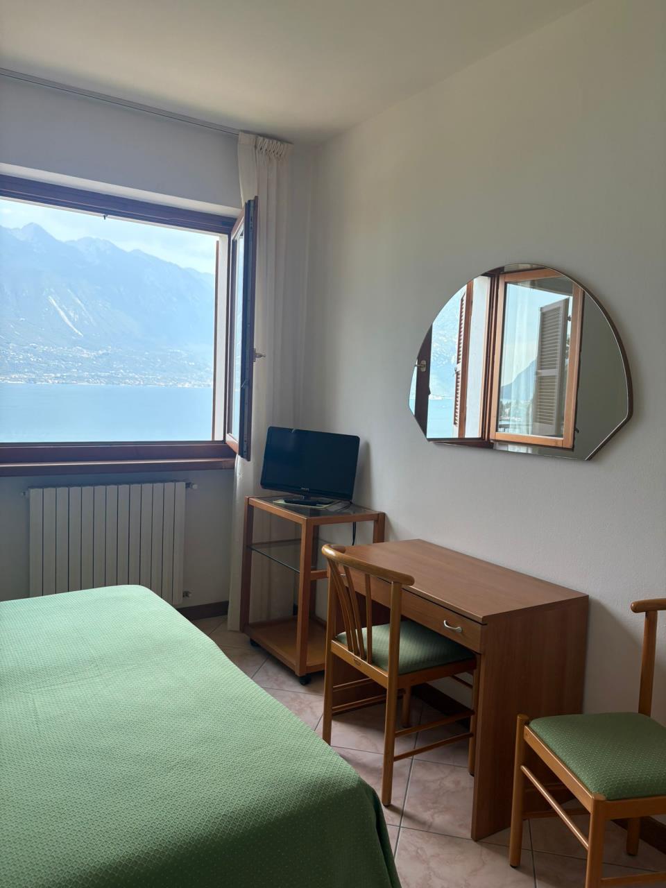 Die Zweizimmer-Wohnung bietet Platz für 2 Personen und befindet sich im ersten oder zweiten Stockwerk. Sie verfügt über ein Schlafzimmer mit einem komfortablen Doppelbett. Der Wohnbereich ist mit einer gut ausgestatteten Kochnische versehen, die unter anderem einen Induktionsherd, Geschirr, Besteck, Töpfe, eine Filterkaffeemaschine, einen Wasserkocher, einen Toaster, eine Spülmaschine sowie einen Kühlschrank mit Eisfach umfasst. Zusätzlich stehen ein SAT-TV und eine Klimaanlage zur Verfügung. Das Badezimmer ist modern eingerichtet und bietet eine Dusche, ein Waschbecken, einen Föhn und ein WC. Die Wohnung verfügt über einen Balkon mit Tisch und Stühlen, der einen wunderschönen Blick auf den See bietet und zum Entspannen einlädt. Die Fahrzeit ab der italienischen Grenze beträgt etwa 3 Stunden. Hinweis: Wenn Sie mehr als eine Unterkunft benötigen, ist dies bei uns in der Regel möglich, da wir über mehrere Objekte des gleichen Haustyps verfügen.