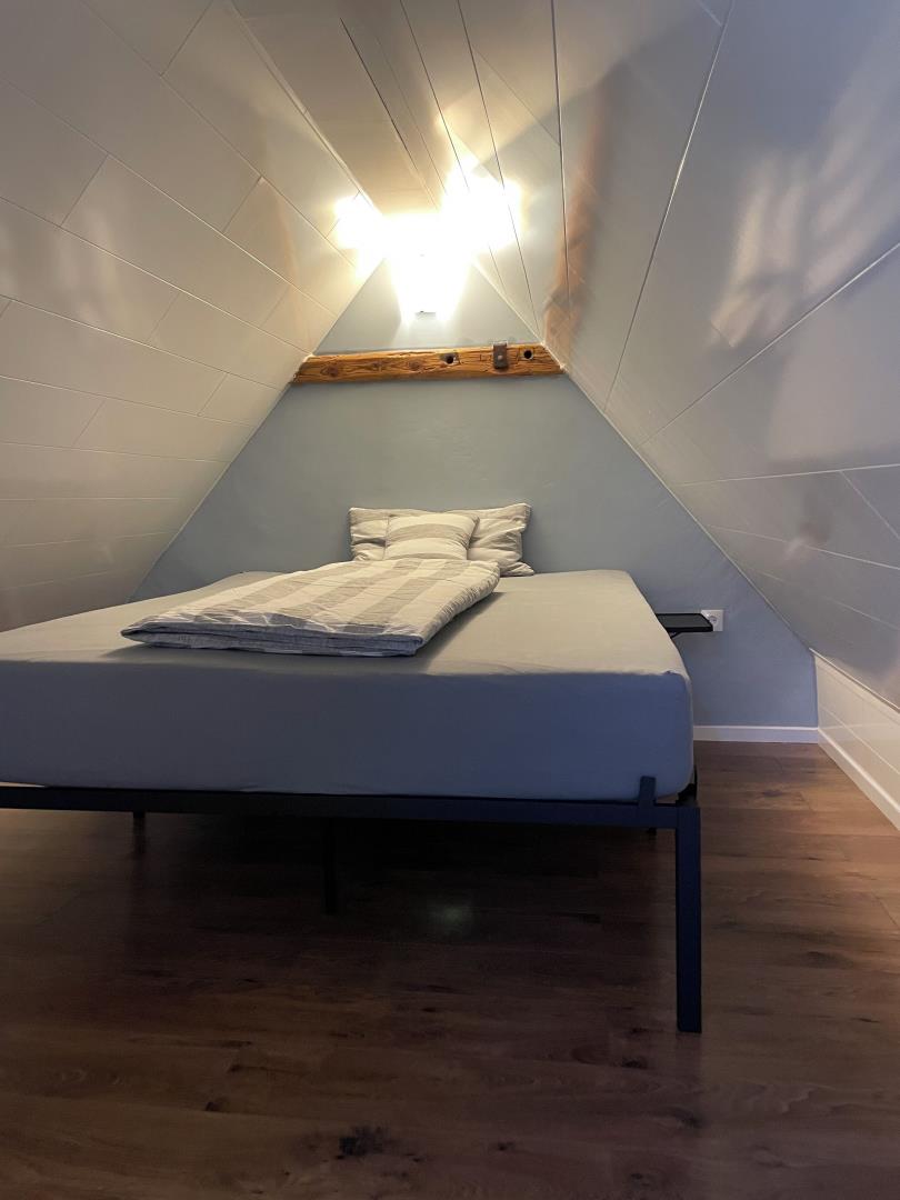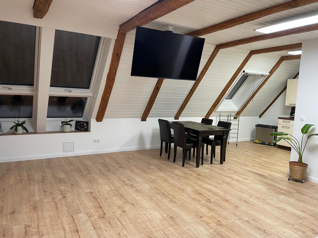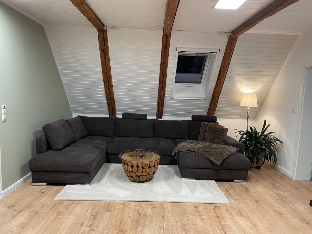 Lehne dich zurück und entspanne - in dieser ruhigen, stilvollen Unterkunft kannst du es dir mal richtig gemütlich machen und abschalten vom stressigen Alltag... Diese Wohnung verfügt über eine voll ausgestattete Küche, einem Duschbad und bietet Platz für bis zu 4 Personen. Wichtig zu wissen ist, dass das Doppelbett im Spitzboden über die auf dem Bild ersichtliche Treppe zu erreichen ist. Alle Dachfenster sind mit Solarrollläden ausgestattet, können dementsprechend Wärme, durch die starke Sonneneinstrahlung im Sommer, von außen abhalten und komplett verdunkeln. Auch deinen Vierbeiner kannst du auf Anfrage gerne mitbringen! Jedoch sind für die Dachgeschosswohnung aus Sicherheitsgründen nur Hunde, welche getragen werden können gestattet. Beachte diesen Hinweis bitte! Wir vermieten ganzjährig ab zwei Übernachtungen und immer inklusive Bettwäsche und Handtücher. Bei längeren Aufenthalten können auf Wunsch auch ein zusätzliches Wäschepaket bereitgestellt oder eine Zwischenreinigung durchgeführt werden. Du hast noch andere Wünsche, dann komme auf uns zu und wir werden sicher eine Möglichkeit finden…