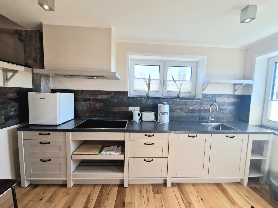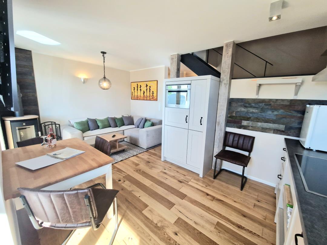 Die moderne Küche ist komplett ausgestattet und ermöglicht Ihnen, Ihre Lieblingsgerichte auch im Urlaub zuzubereiten. Genießen Sie Ihre Mahlzeiten im stilvollen Essbereich oder lassen Sie den Tag bei einem Glas Wein ausklingen.