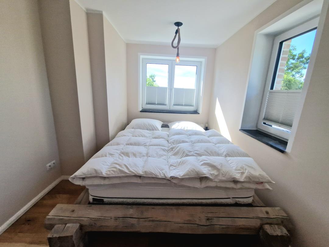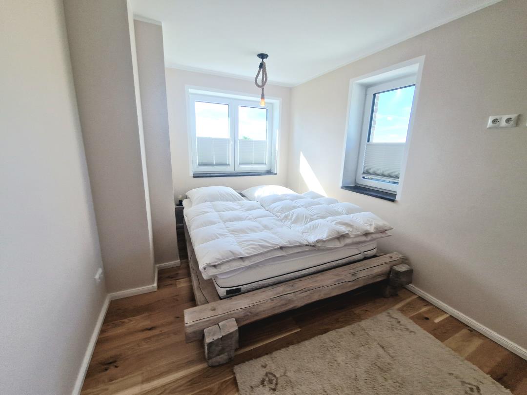 Die Ferienwohnung besticht durch ihr zeitgemäßes Design und hochwertige Ausstattung. Sie verfügt über zwei gemütliche Schlafzimmer, eines mit einem Doppelbett (180 x 200 cm - es wird ein großes Bettlaken benötigt!) und das andere mit einem Doppelbett (160 x 200 cm), die für erholsame Nächte sorgen.