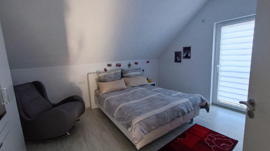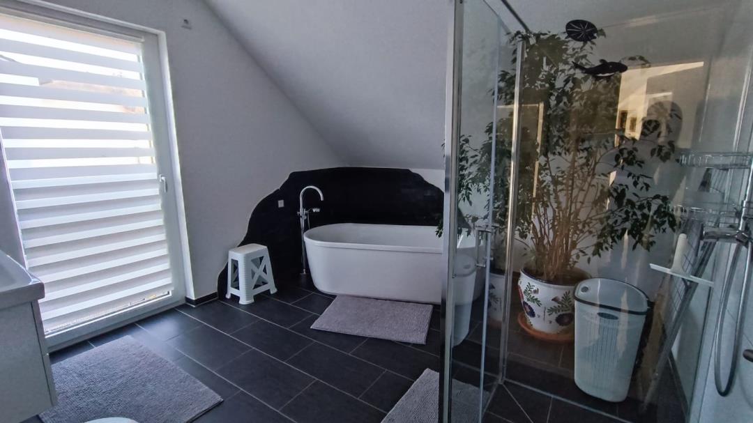 Die Ferienwohnung befindet sich im Obergeschoss. Alle Zimmer sind hell und Modern eingerichtet. Auf 60 qm bieten wir ausreichend Platz für bis zu drei Personen. Schlafzimmer mit Boxspringbett (180 cm x 200cm) und TV, Wohnzimmer mit Schlafsofa und großem Smart TV und Balkon. Wohnküche mit Esstisch und gemütlicher Sitzecke, TV und Zugang zum Balkon. Großzügiges modernes Badezimmer mit freistehender Wanne und begehbarer Dusche. Alle Zimmer besitzen Fußbodenheizung und natürlich eine Internetverbindung über WLAN. Raus ins Grüne Im Garten lädt der gemütliche Pavillon zum grillen und entspannen ein. Unsere Ferienwohnung Maria Buch heißt Sie herzlich willkommen. Planen Sie Ihren nächsten Urlaub in unserer Ferienwohnung und erleben Sie die Schönheit des Härtsfelds. Der Kurbeitrag ist bei Anreise in bar zu entrichten. Die Bettwäsche und Handtücher sind bereits im MIetpreis enthalten. Ihren Hund dürfen Sie gegen Gebühr gerne mitbringen.