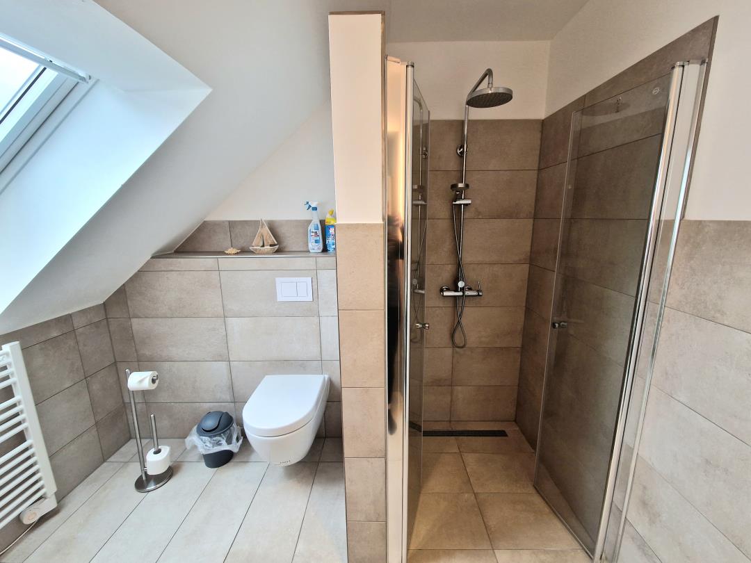 Direkt am Haus befindet sich Ihr PKW-Stellplatz und ein abschließbarer Fahrrad- und Geräteschuppen (3,20 x 2,40 m) mit Lademöglichkeiten für E-Bikes.