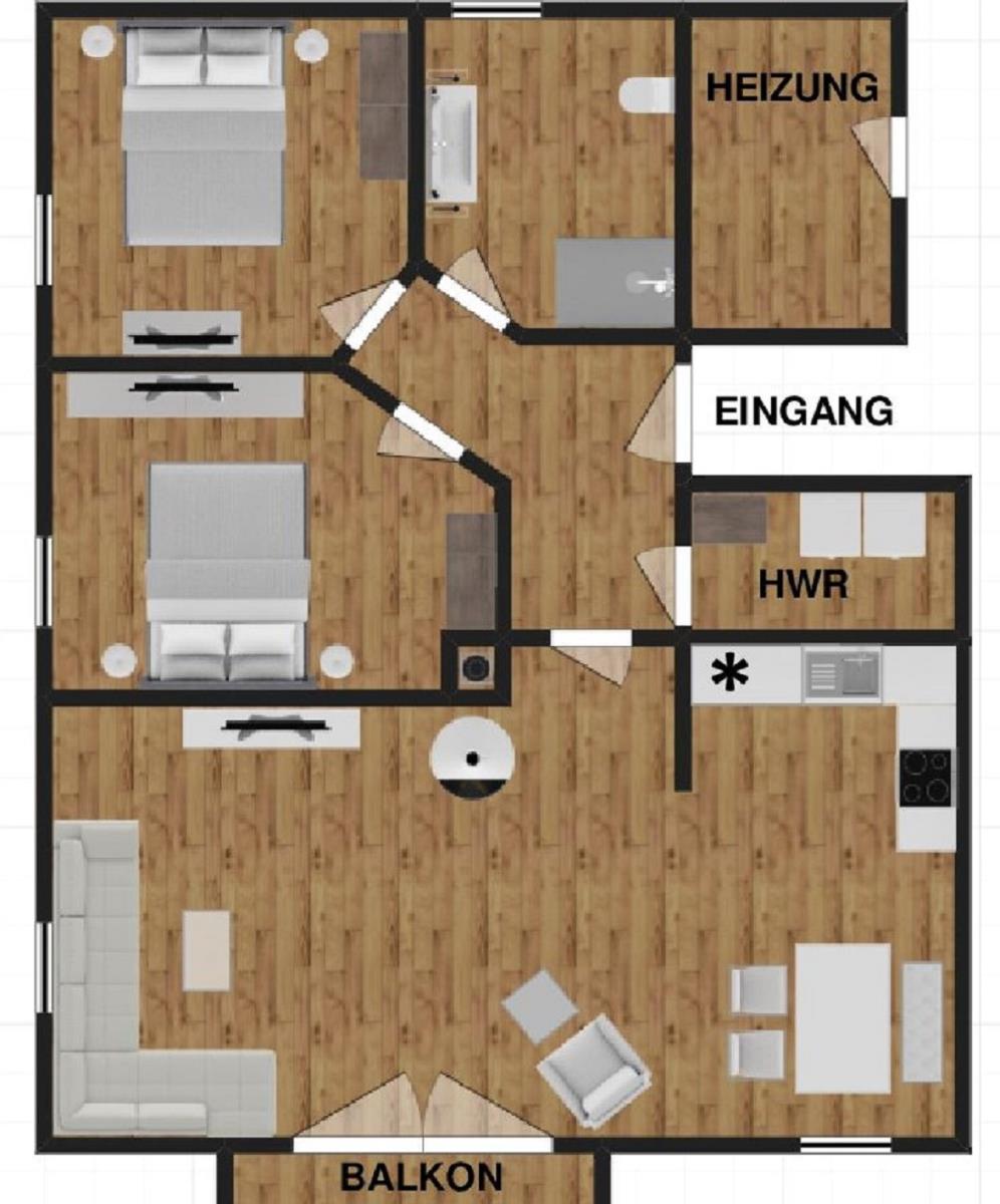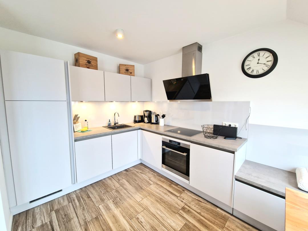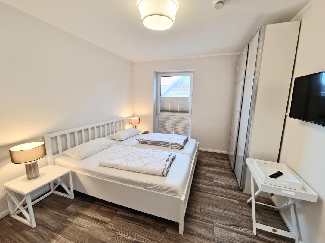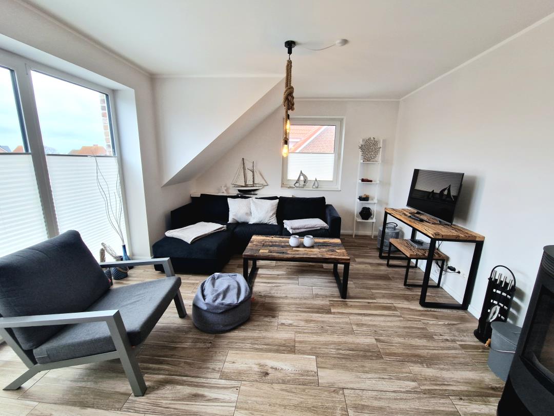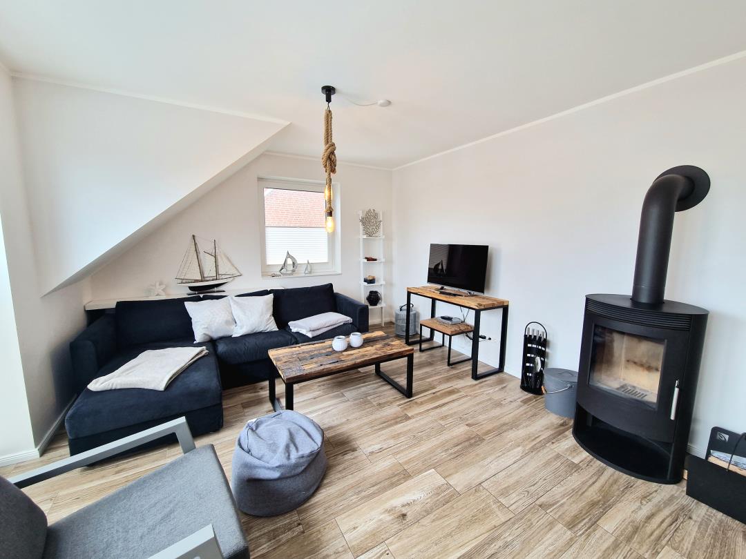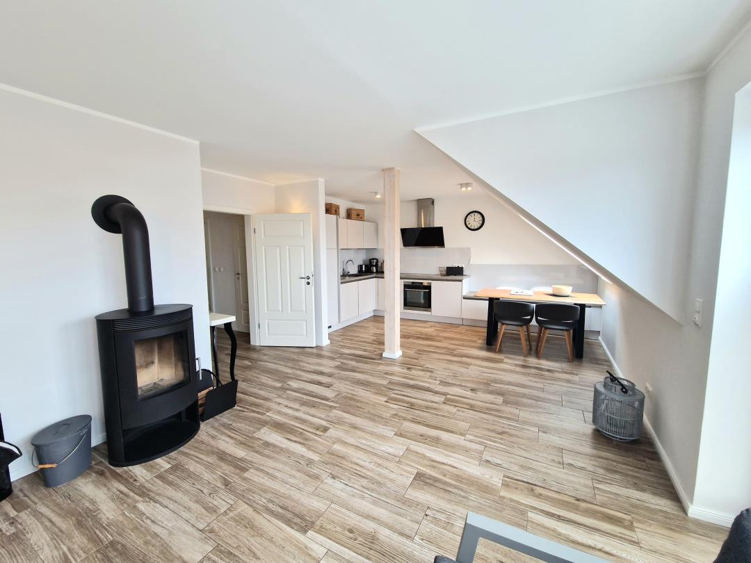 Die Ferienwohnung ist ca. 70 qm groß und für max. 4 Personen ausgestattet, Haustiere sind nicht erlaubt. Das Ferienobjekt verfügt über eine Küche, zwei Schlafräume (beide mit einem Doppelbett ausgestattet), ein Badezimmer mit Dusche, einen kleinen Abstellraum mit Waschmaschine und Trockner und einen großen Wohn- und Essbereich mit Kamin-Ofen.